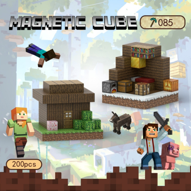 乡野小屋创建世界周边积木砖方块磁块动物自然益智男女童动脑玩具
