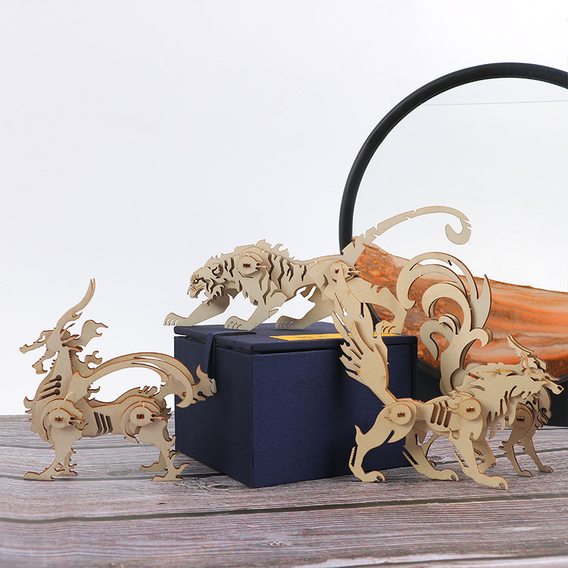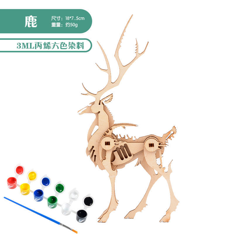 儿童木质立体拼图3ddiy手工动物拼装益智玩具小学生毕业礼物批发