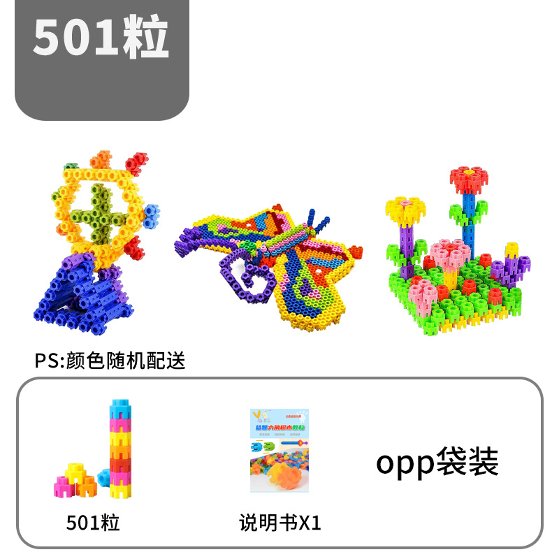 大号六角积木钻石颗粒积木幼儿园拼插搭建塑料积木男女孩益智玩具