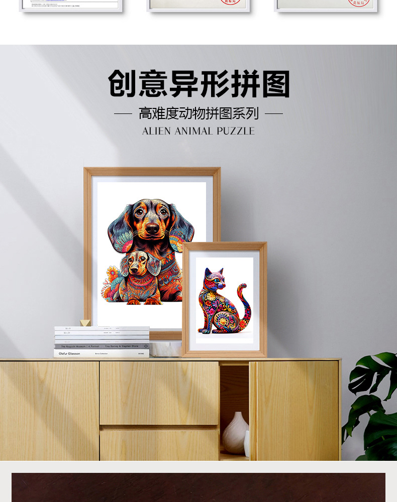跨境货源厂家批发异形动物木制拼图不规则3D立体亚马逊猫咪玩具