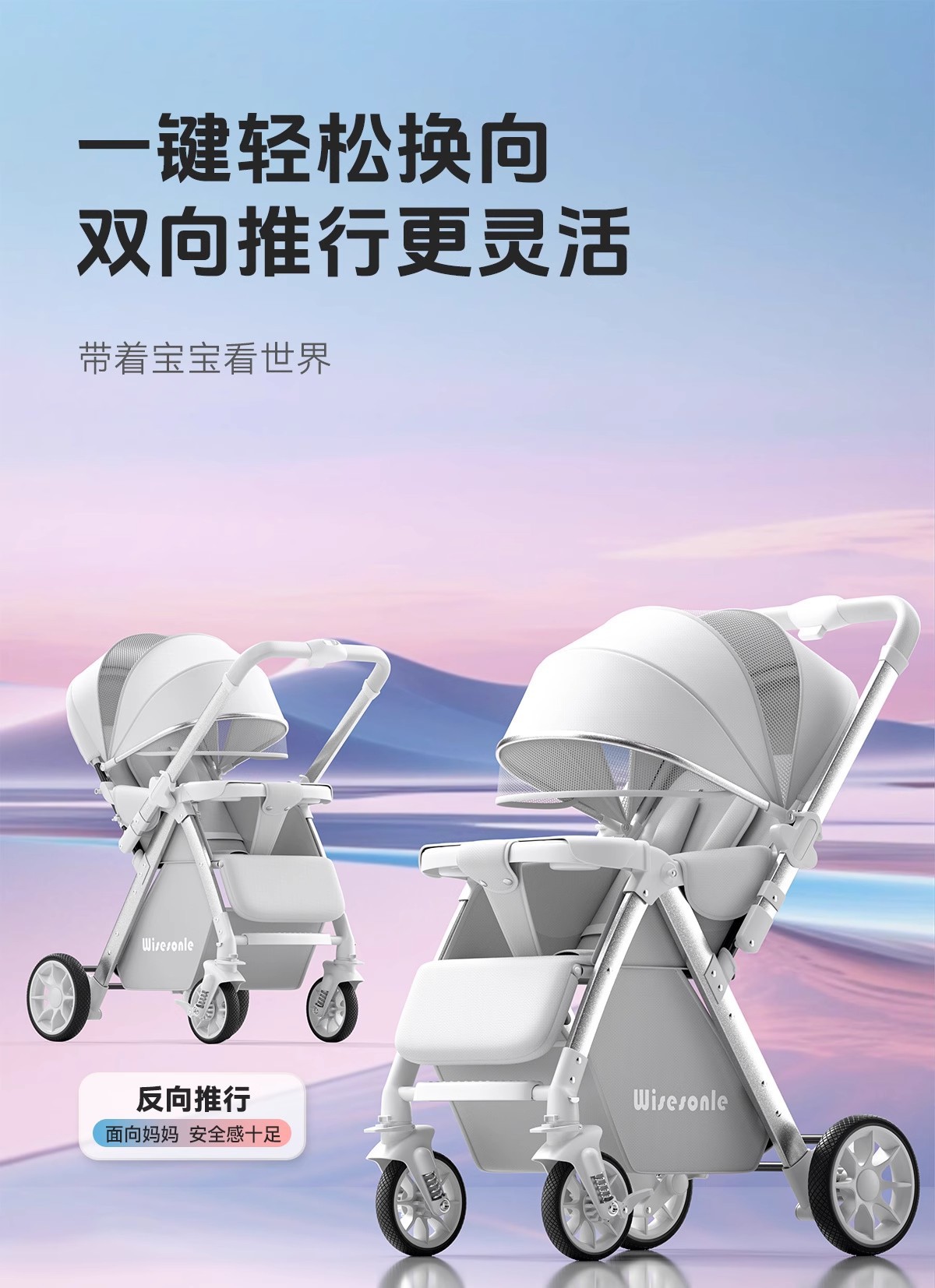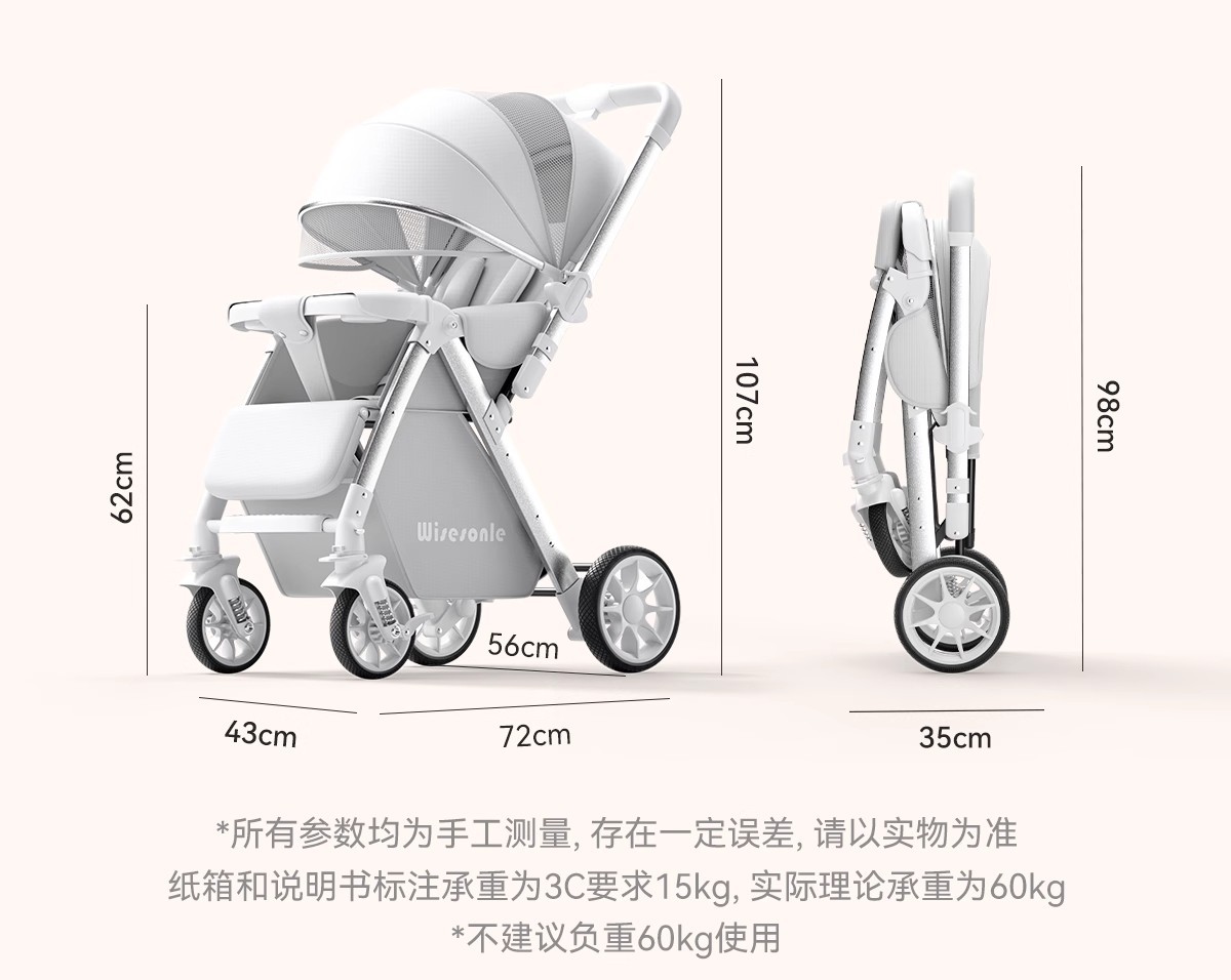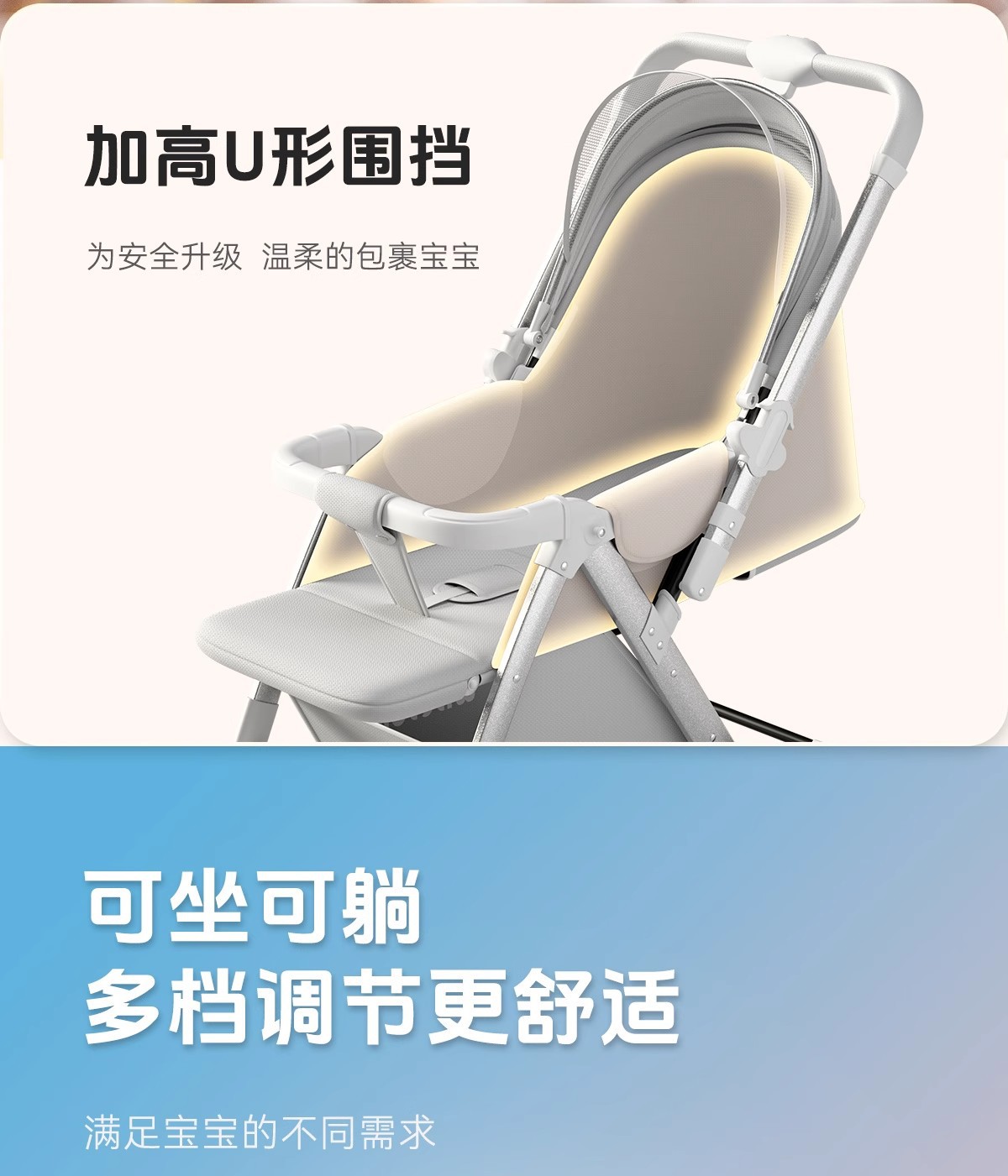 婴儿车双向高景观婴儿手推车可坐可躺轻便折叠儿童便携式遛娃神器