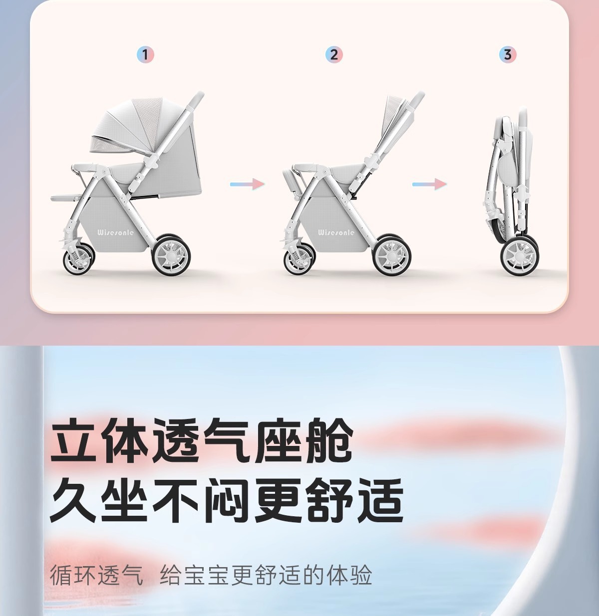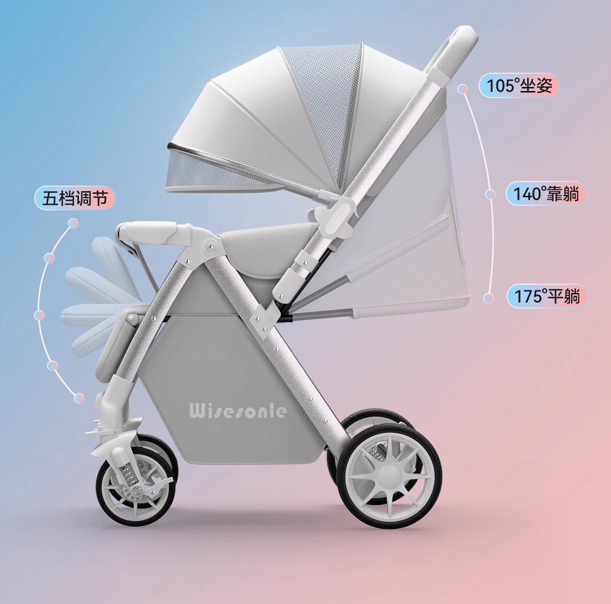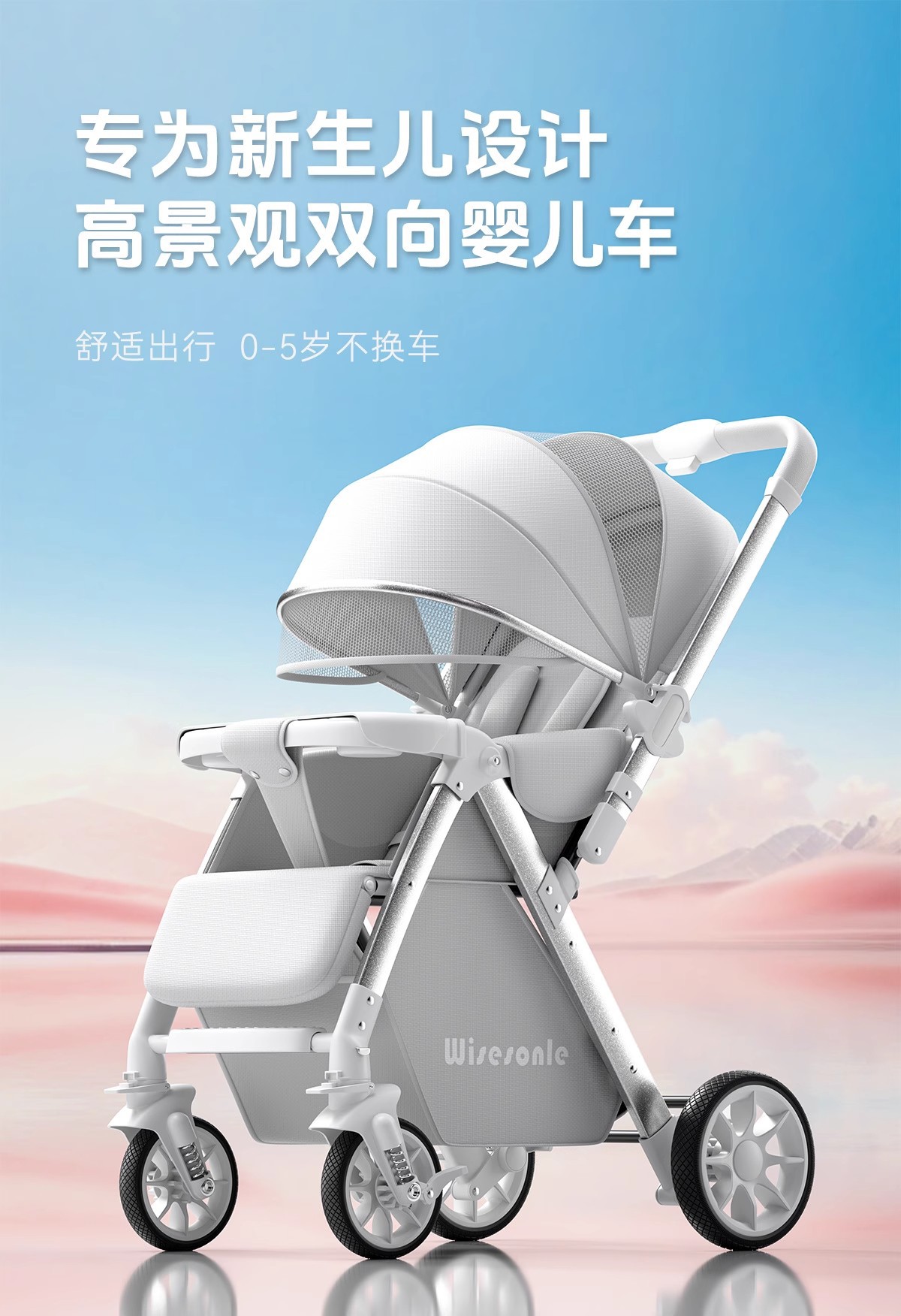 婴儿车双向高景观婴儿手推车可坐可躺轻便折叠儿童便携式遛娃神器
