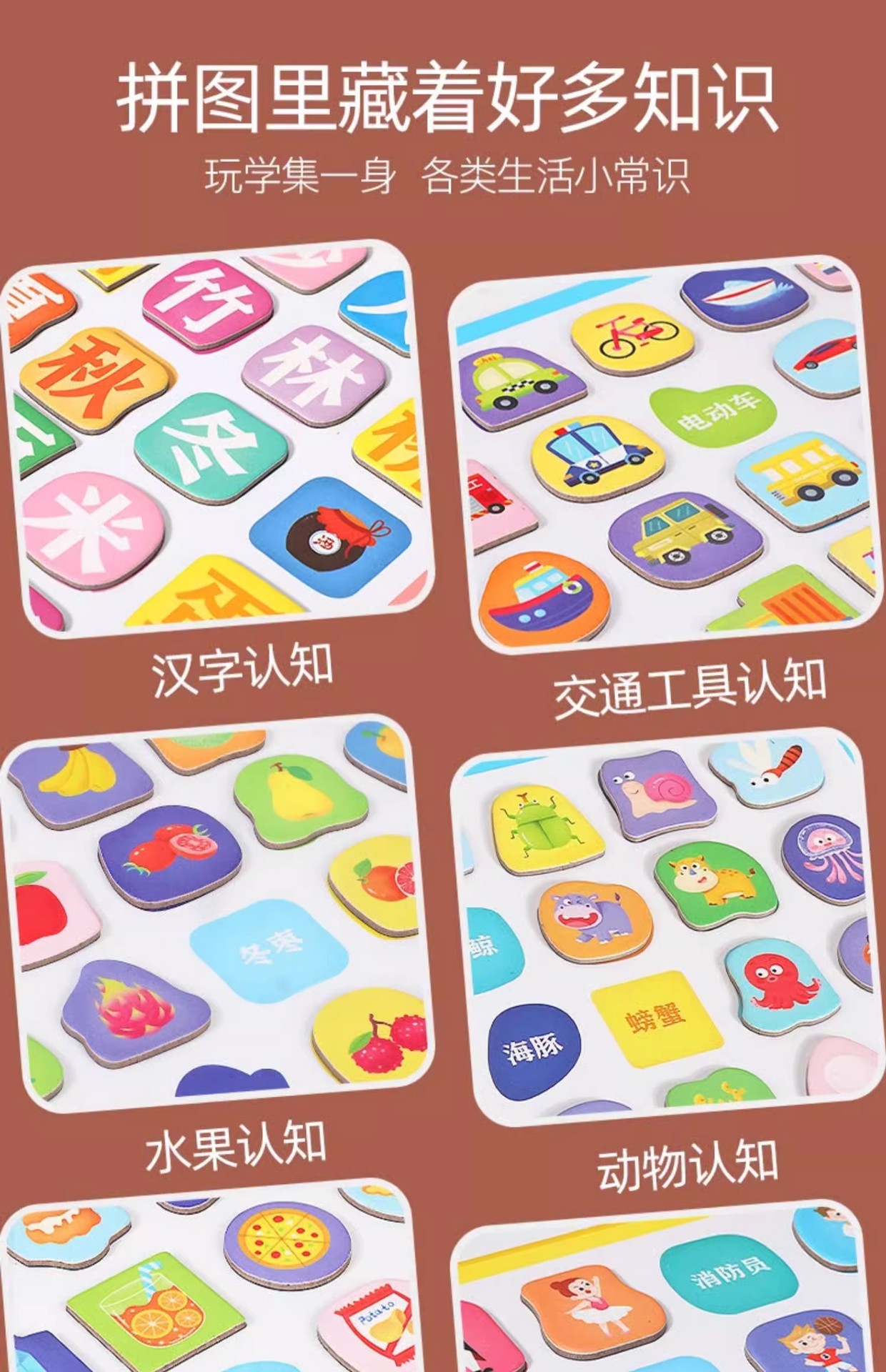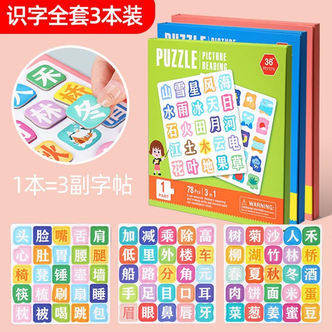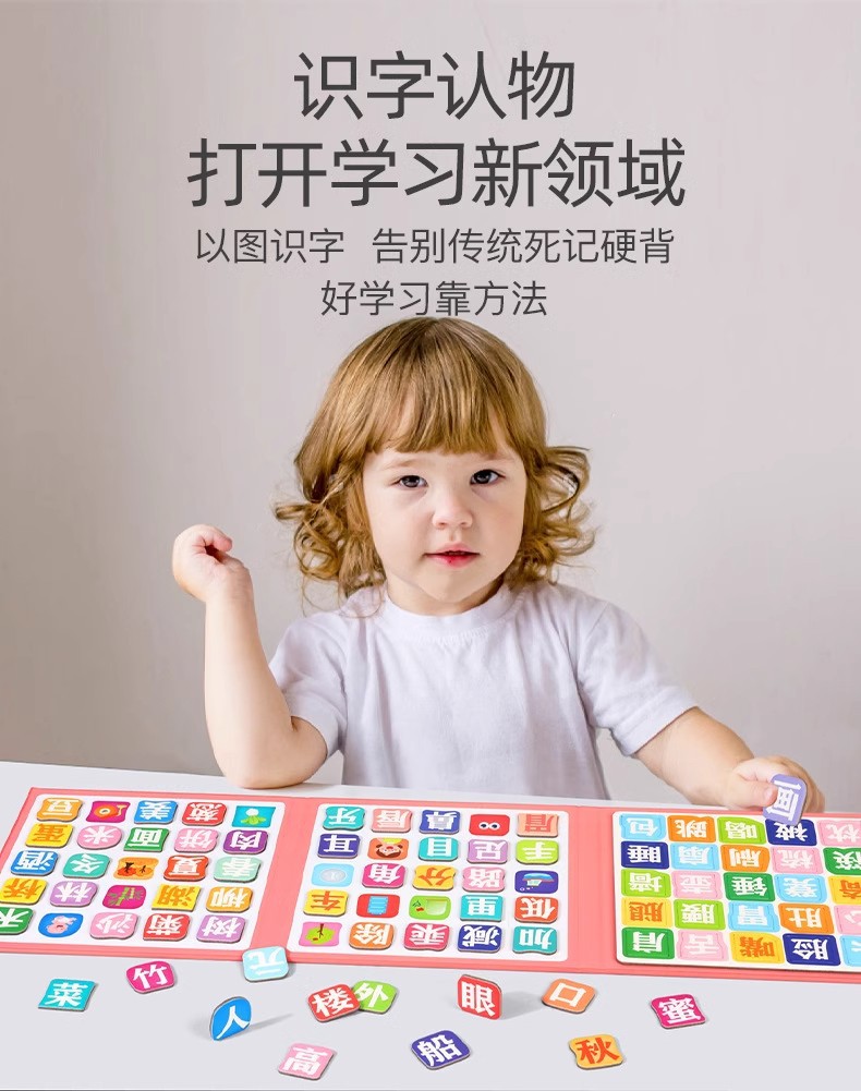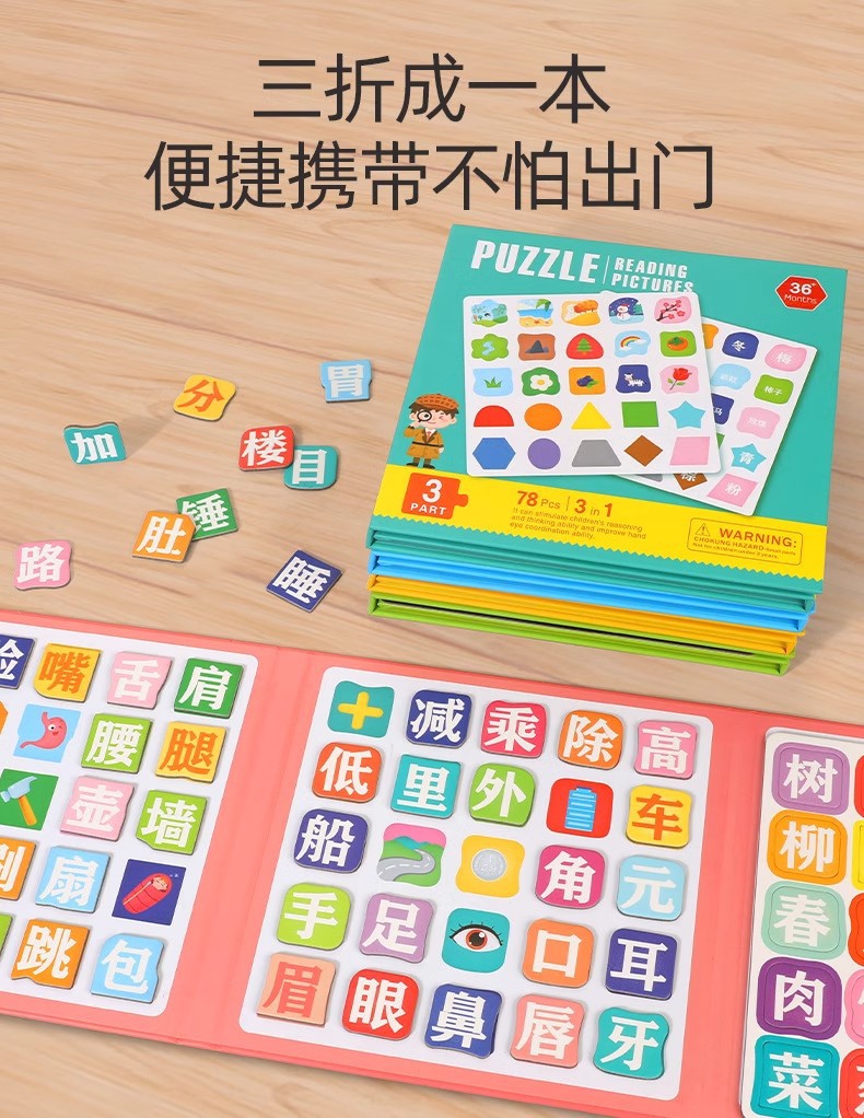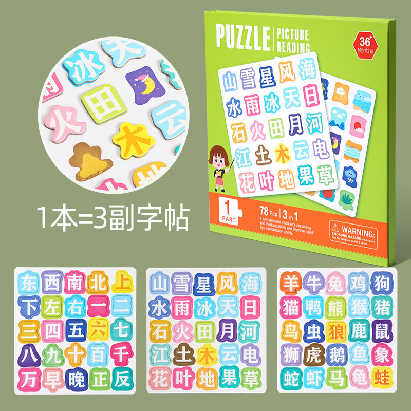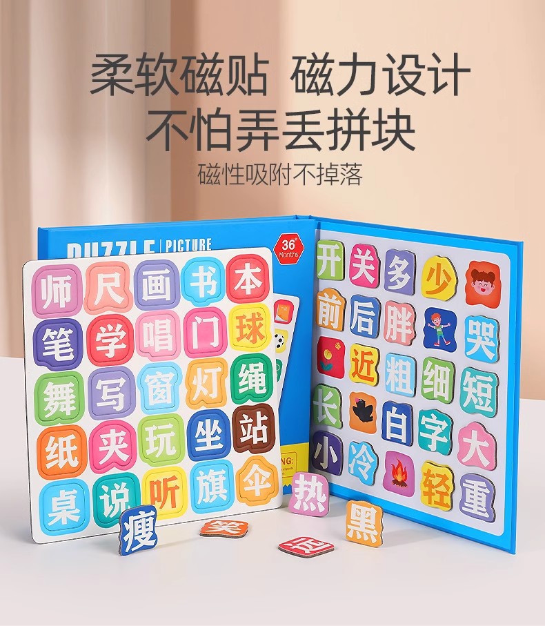 儿童磁力识字拼图3-6岁宝宝磁性早教认字板象形汉字卡片益智玩具