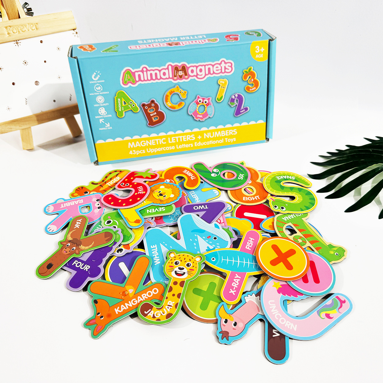 跨境软磁冰箱贴拼图数字符号幼儿园早教启蒙英文拼贴磁性字母贴