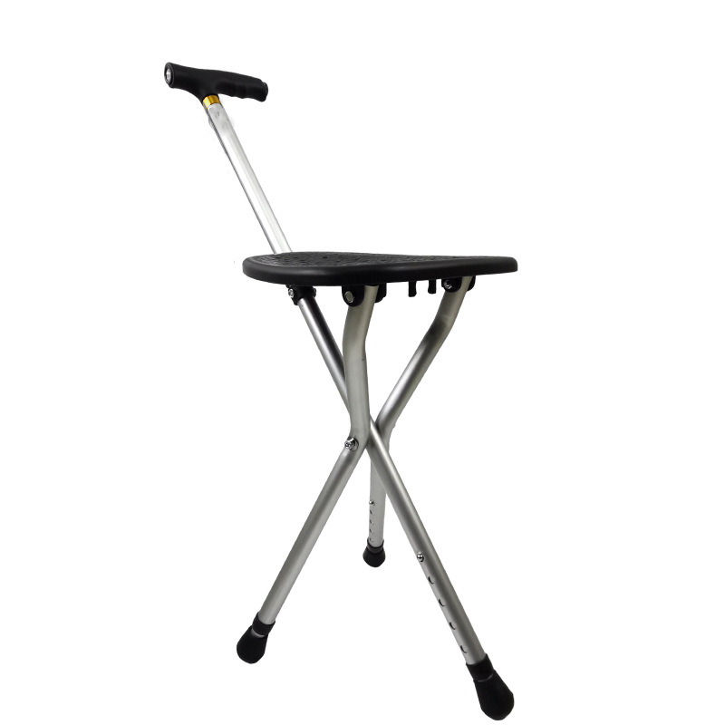 手杖折叠椅老人多动能三角形可坐手杖凳折叠便携两用拐杖手杖椅
