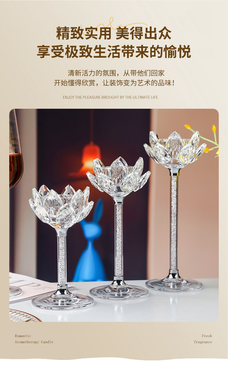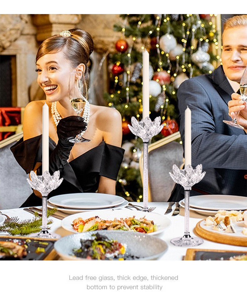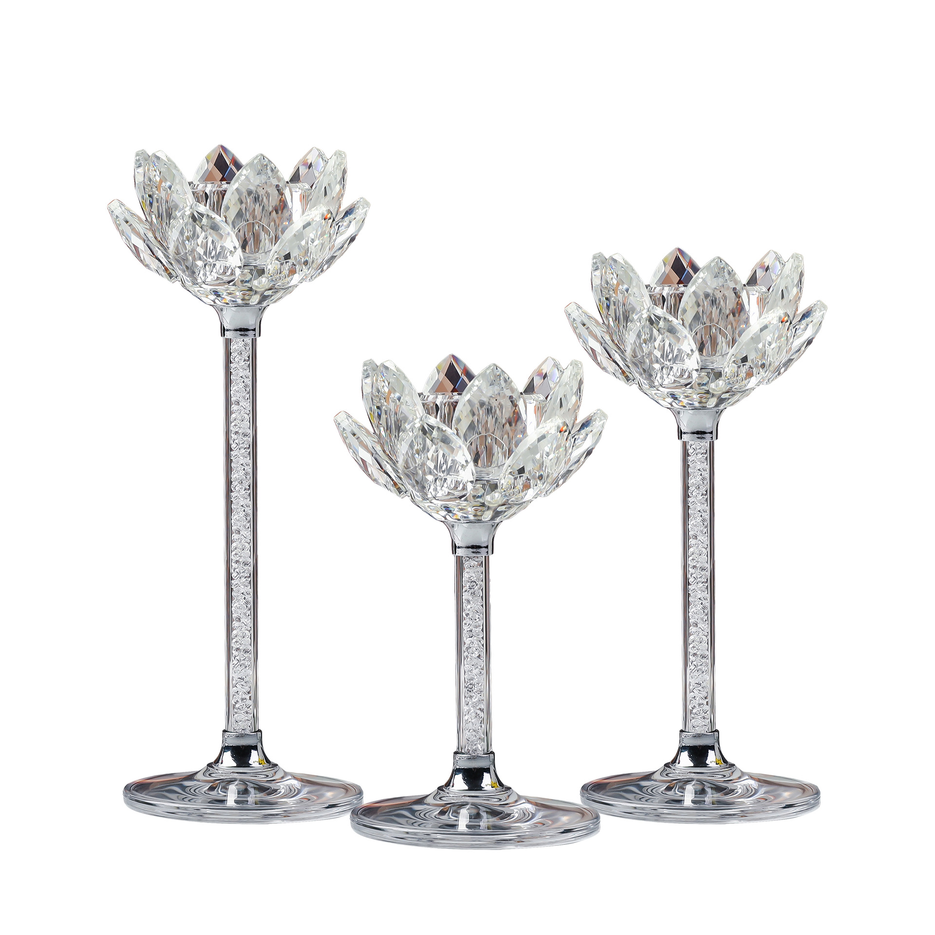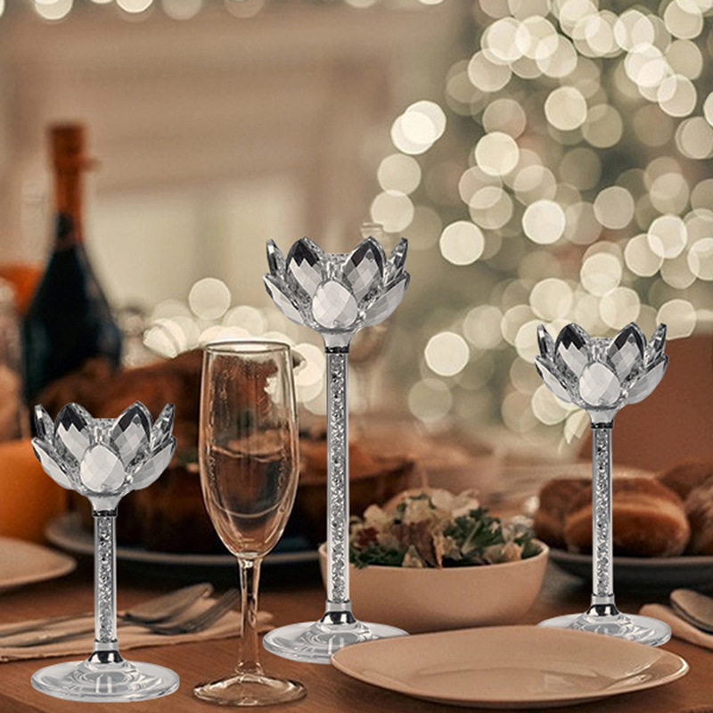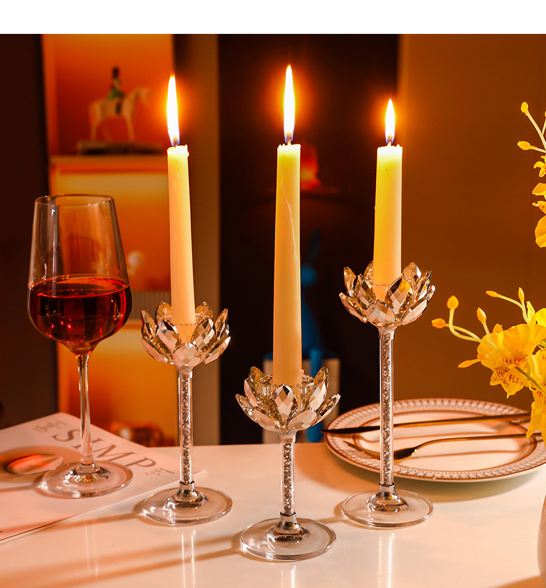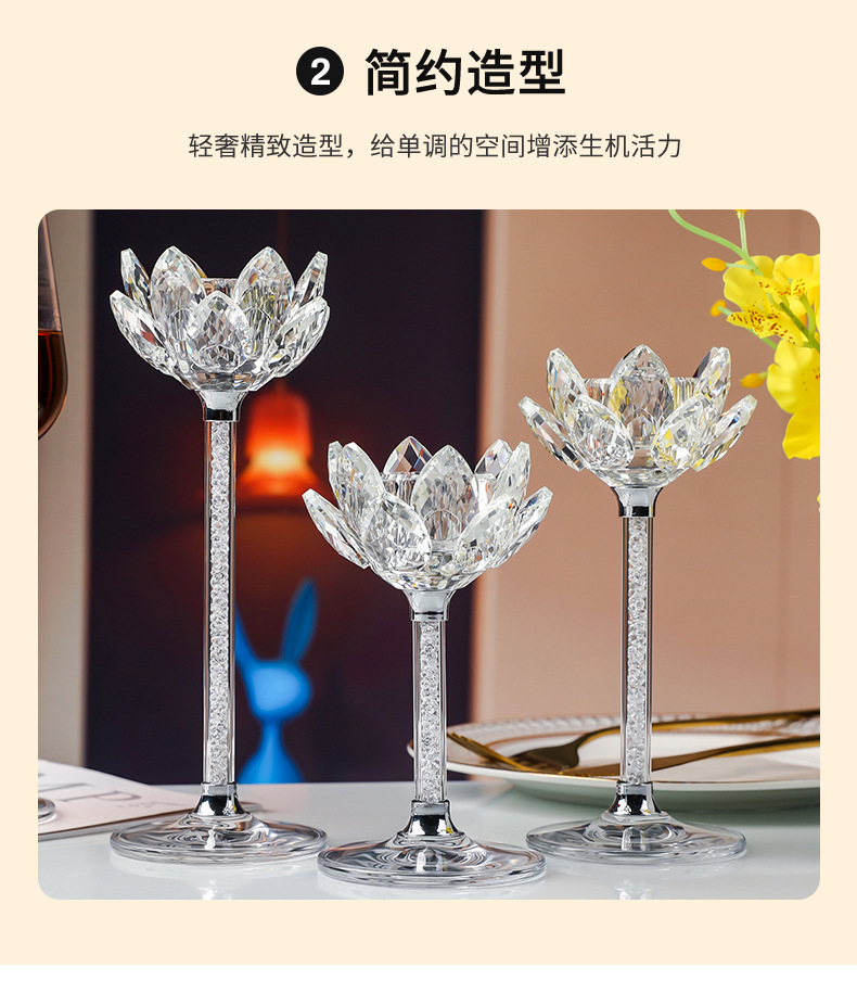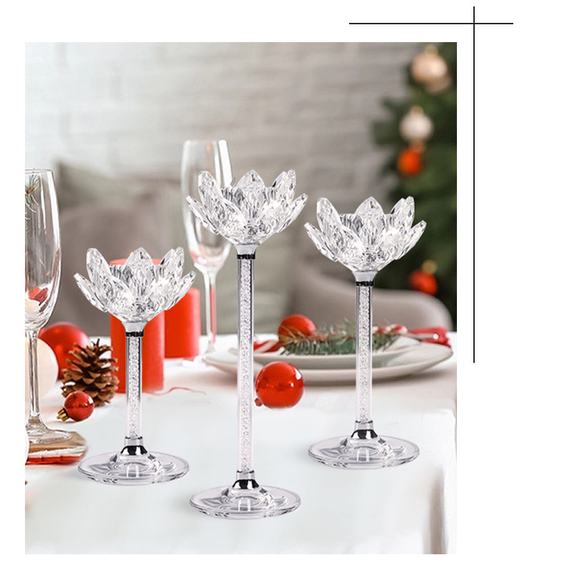 跨境莲花水晶烛台摆件三件套烛光晚餐摆件欧式婚礼宴会蜡烛台摆件
