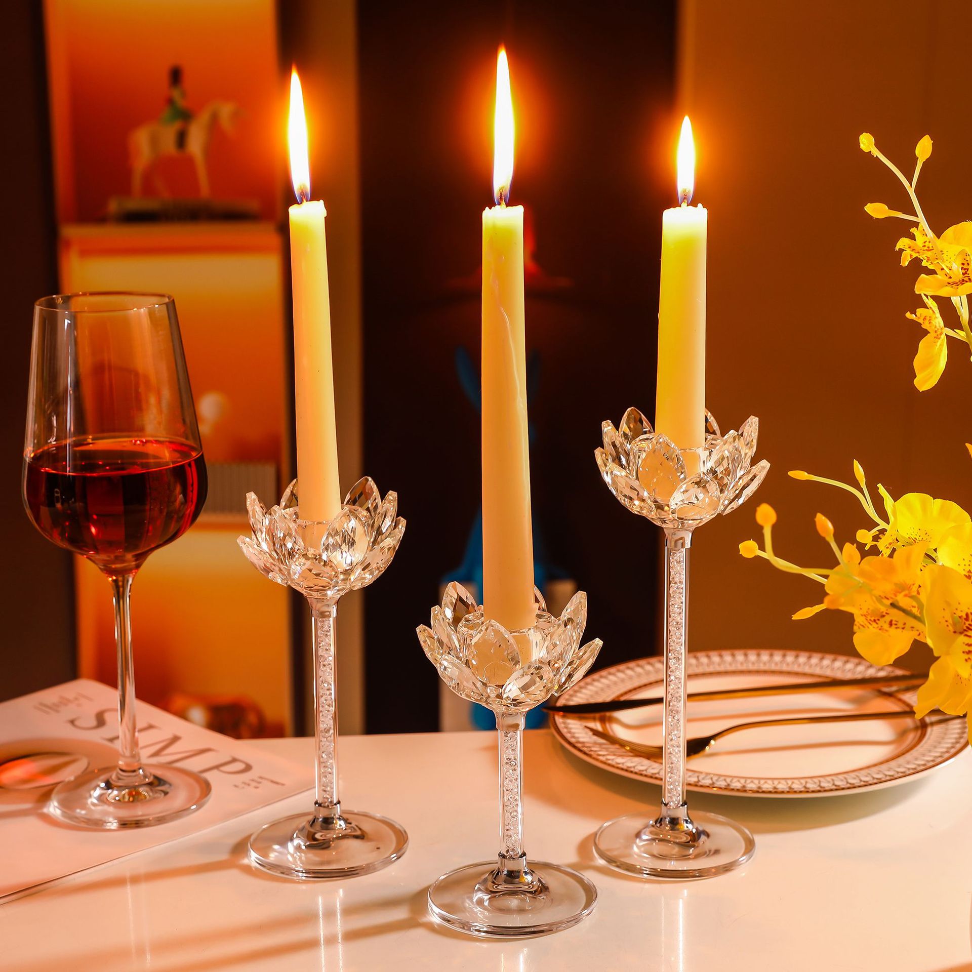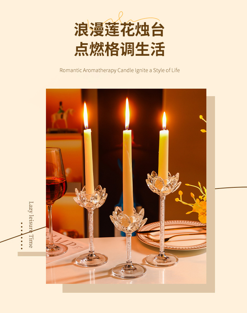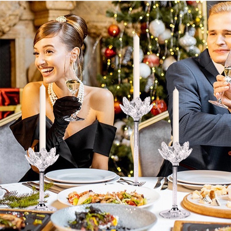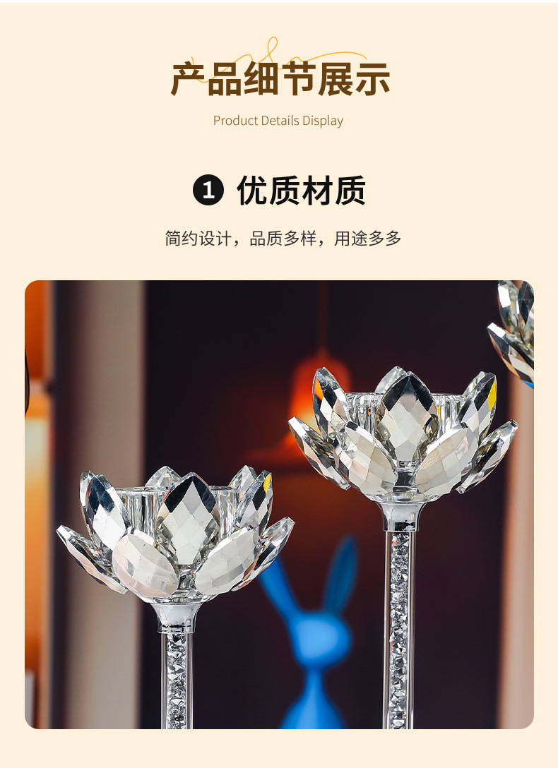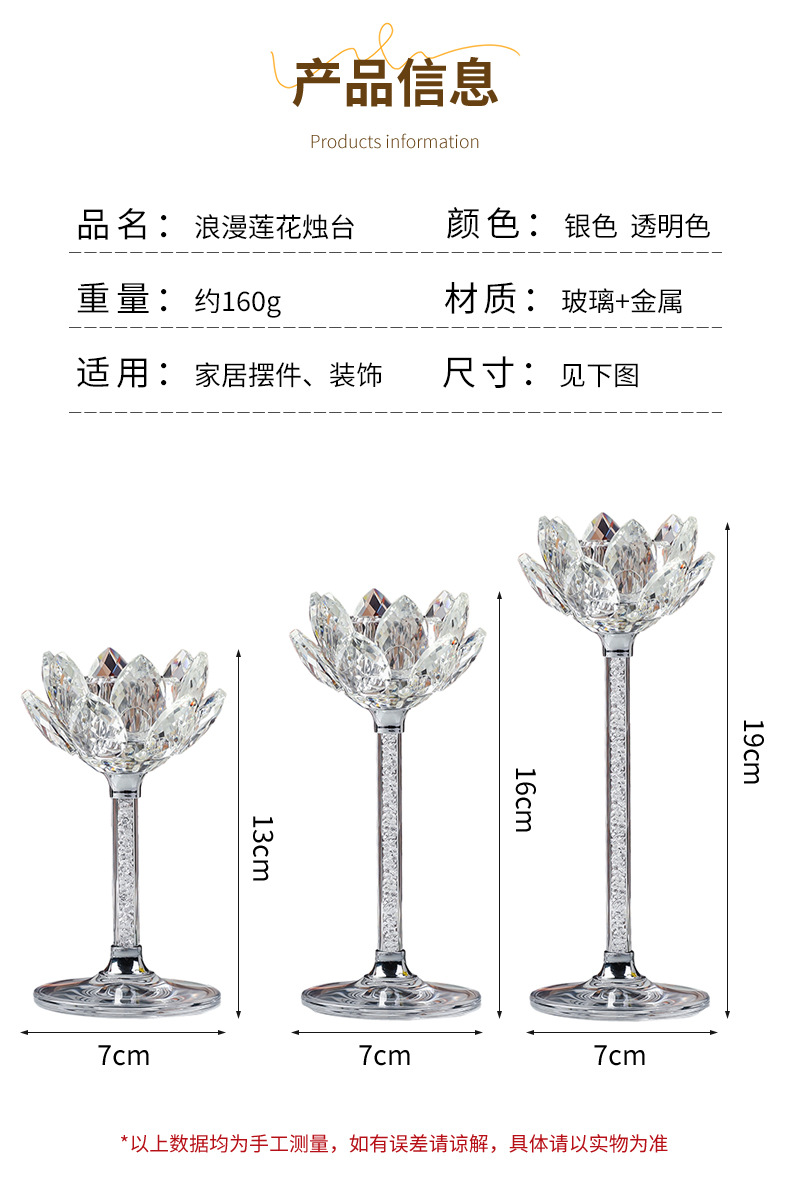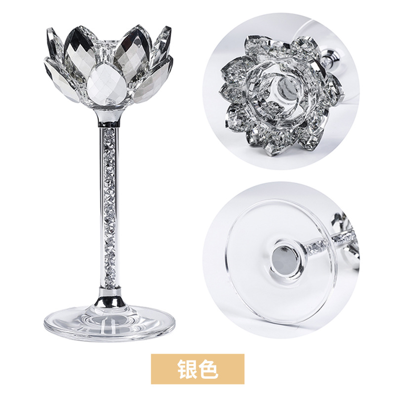 跨境莲花水晶烛台摆件三件套烛光晚餐摆件欧式婚礼宴会蜡烛台摆件
