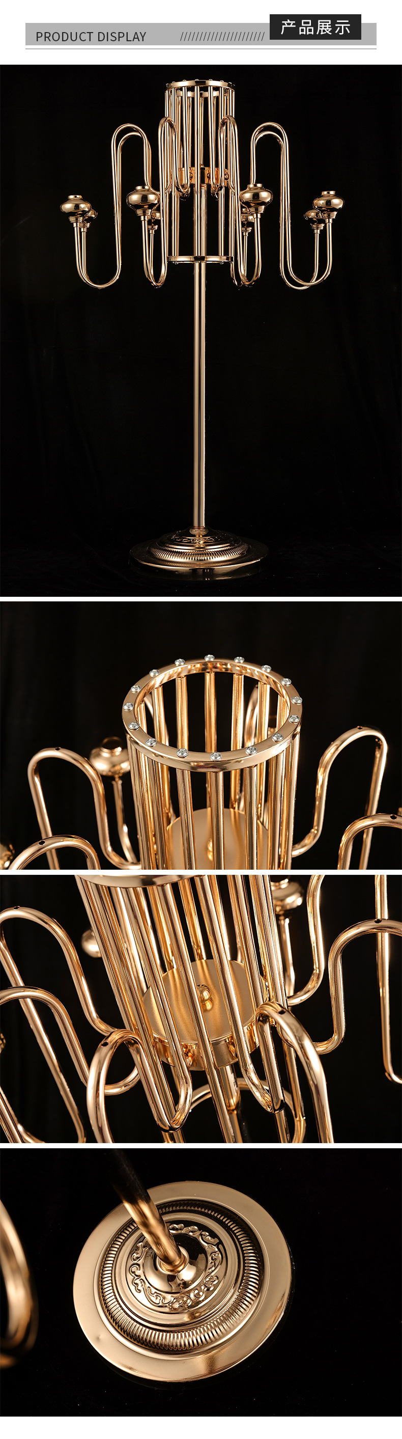321厂家新款婚庆桌花器烛台水晶装饰摆件婚礼堂酒店桌花铁艺