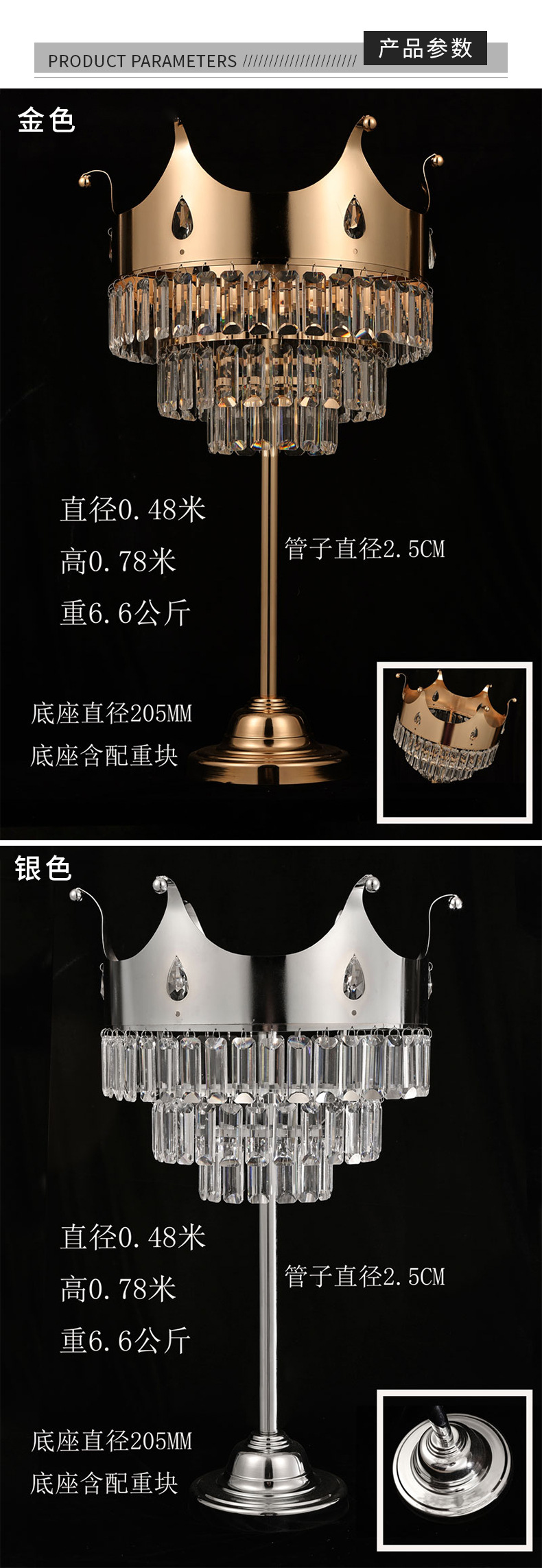 皇冠桌花器婚庆桌花器烛台水晶装饰摆件婚礼堂酒店大厅桌花铁艺架
