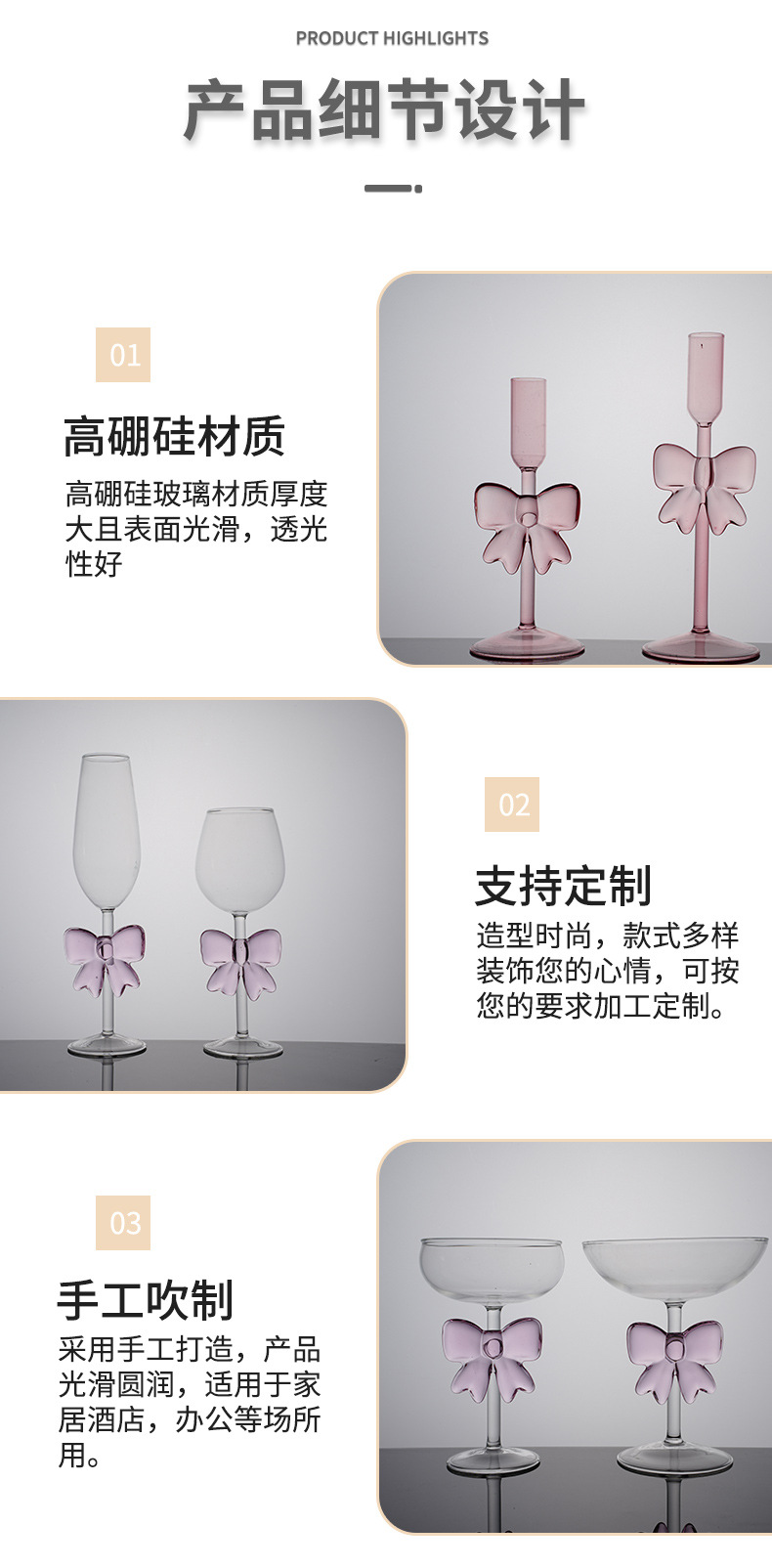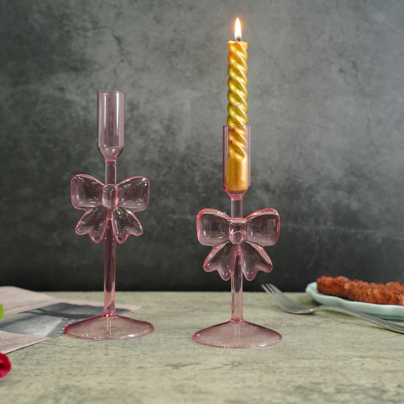 蝴蝶烛台玻璃烛台摆件高杆玻璃烛台家居餐厅蜡烛台装饰品蜡烛器皿