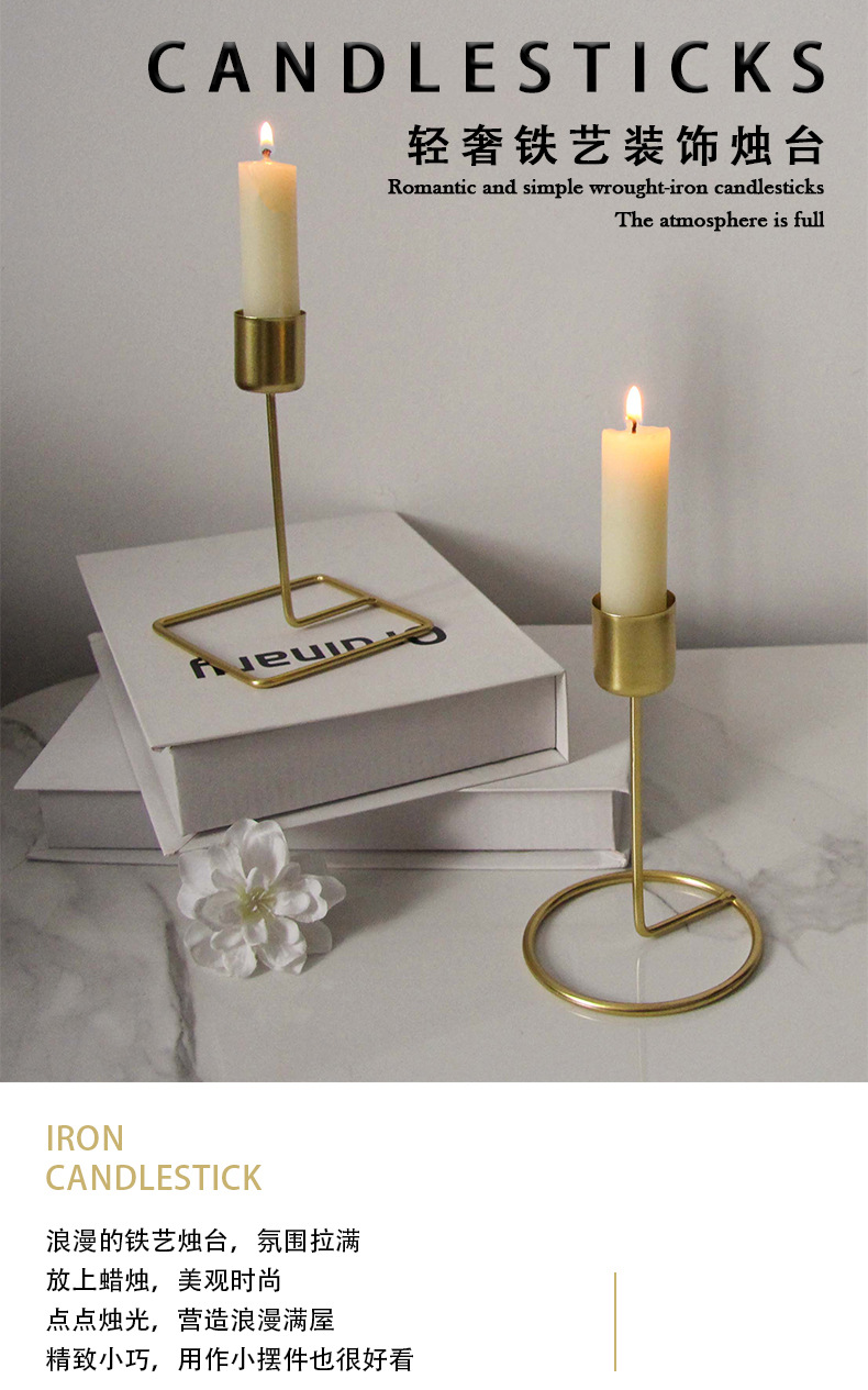 轻奢铁艺金属烛台摆件创意简约浪漫烛光晚餐道具蜡烛台工厂批发