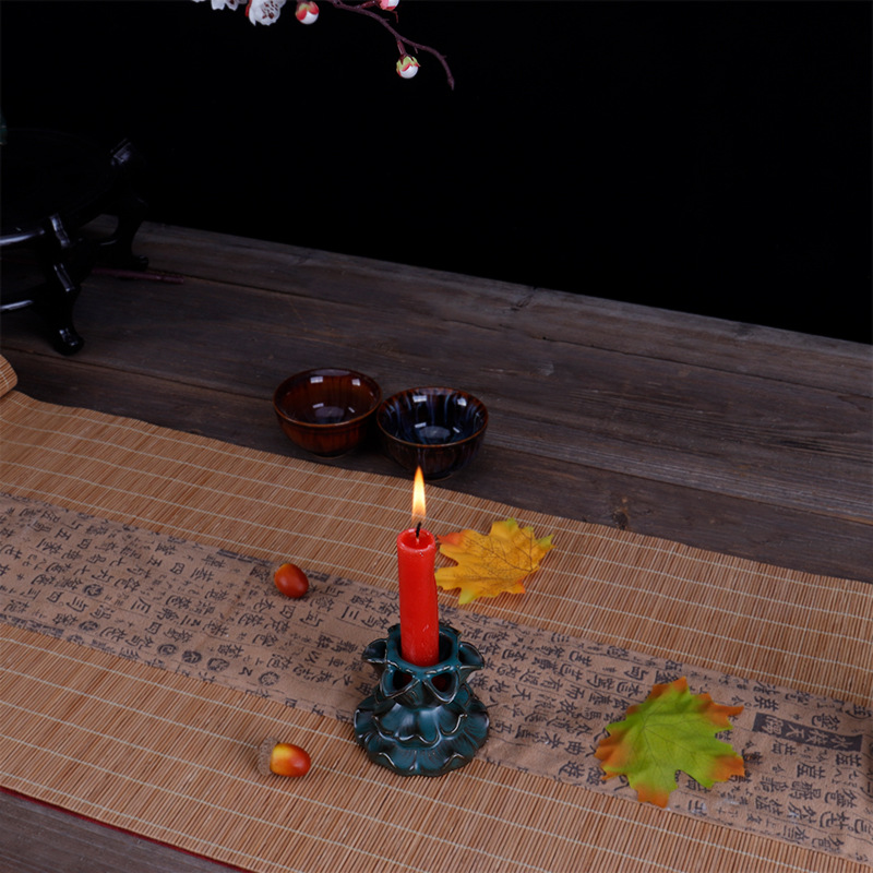 陶瓷烛台蜡烛器皿复古摆件家用卧室供奉佛堂 仿古典中式烛台跨境