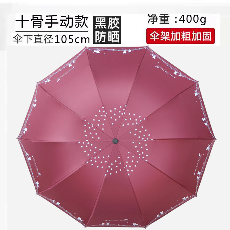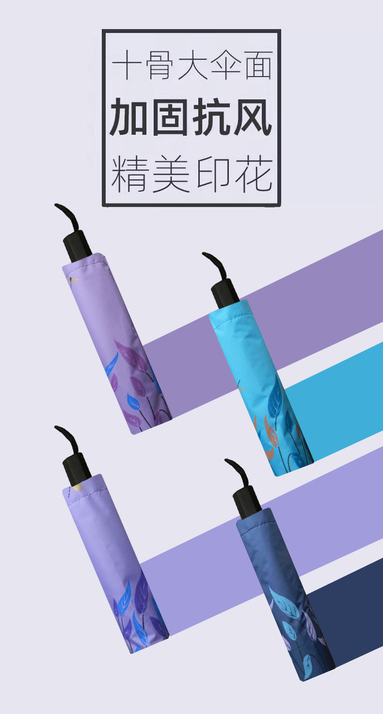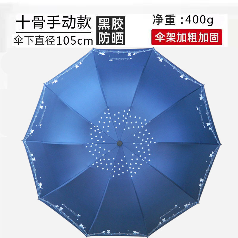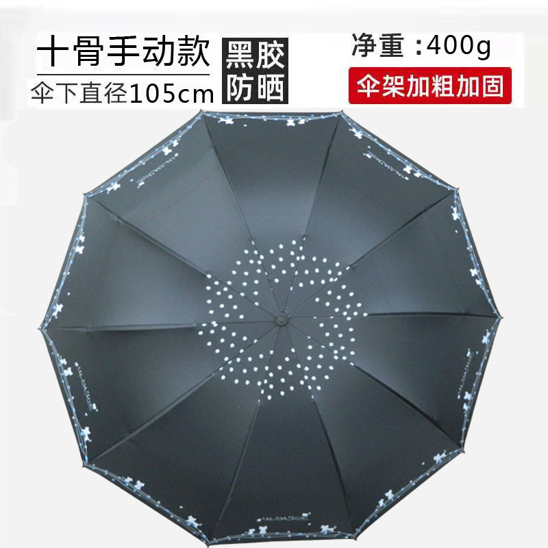 十骨大号雨伞印花小清新太阳伞黑胶防晒防紫外线遮阳晴雨两用伞女