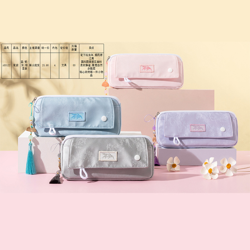 中国风简约美文具盒铅笔袋子文具袋大容量笔袋学生三层笔袋批发