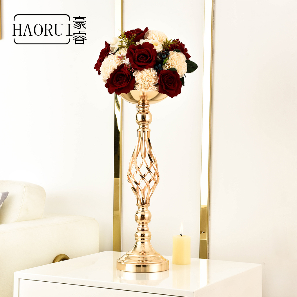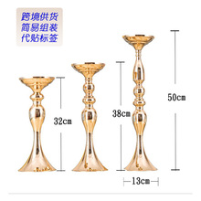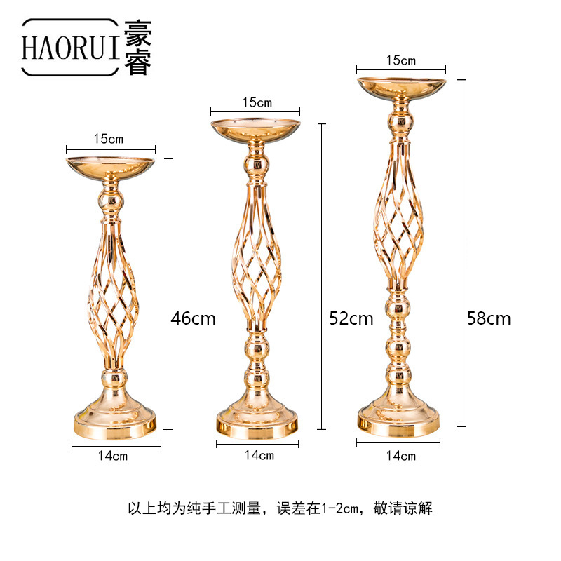跨境餐桌烛台摆件金色铁艺花瓶麻花路引蜡烛台婚礼花器婚庆道具