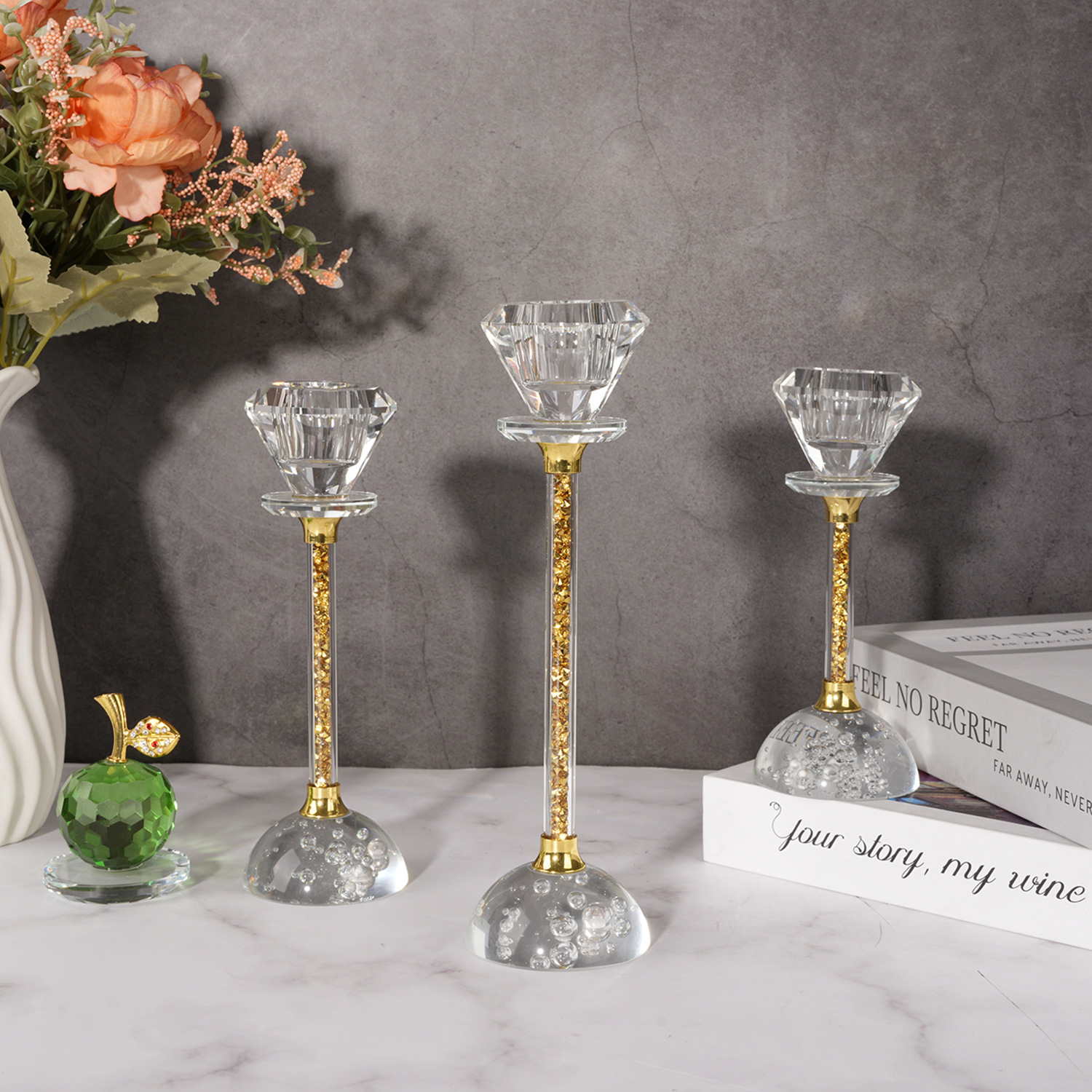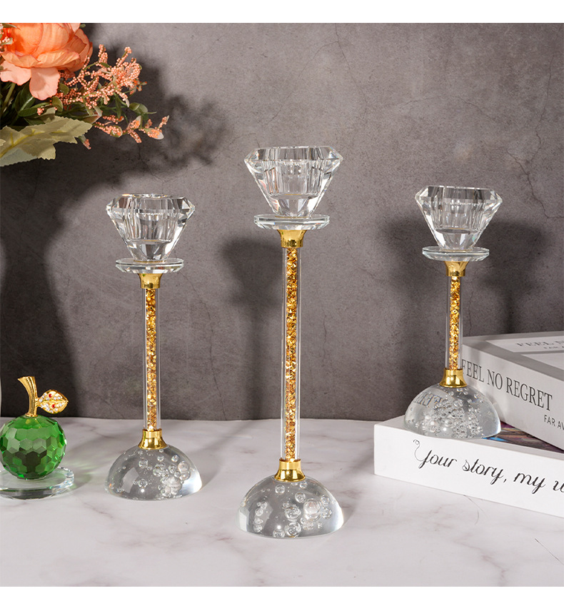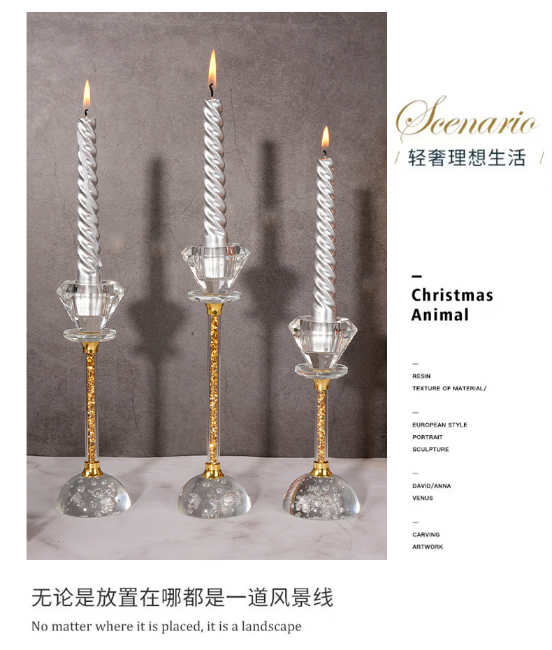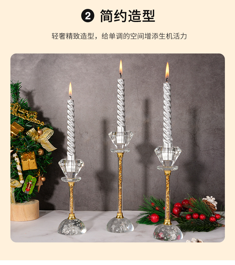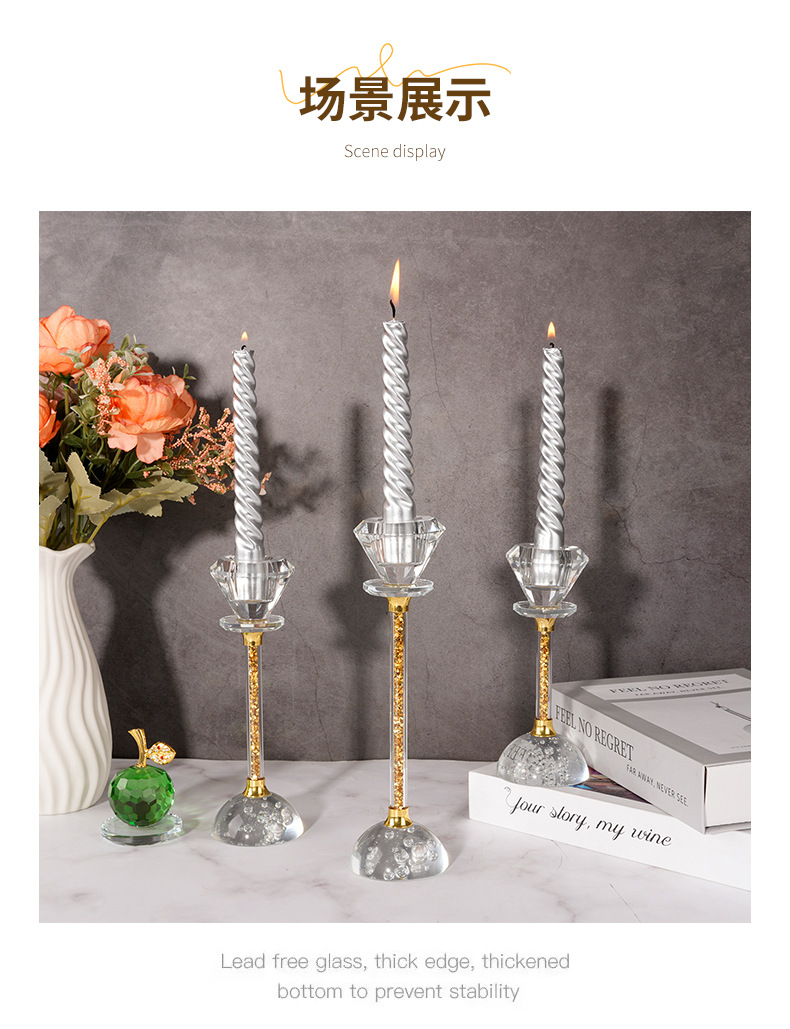 跨境水晶玻璃钻石杆烛台轻奢烛光晚餐婚庆道具简约婚礼餐桌摆件