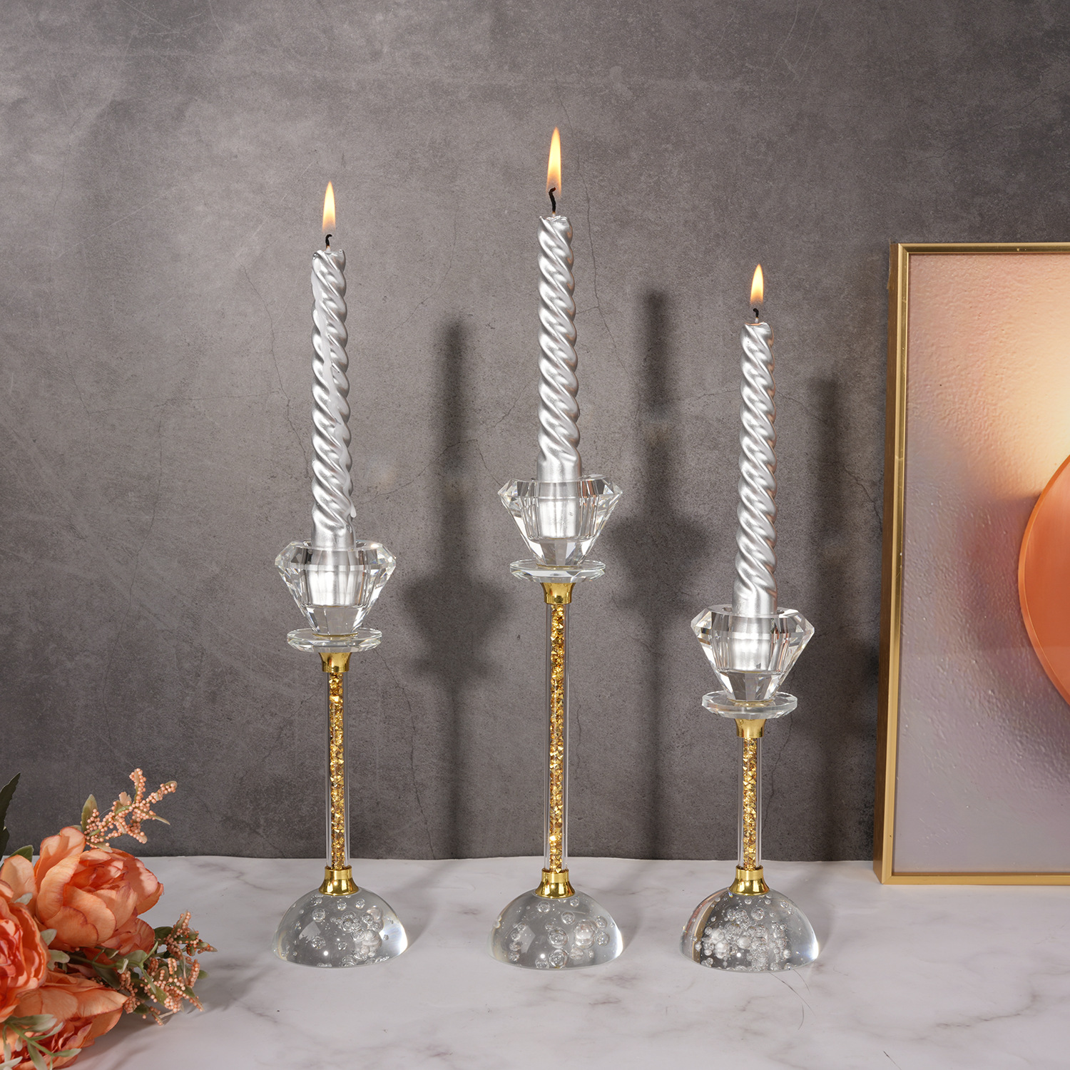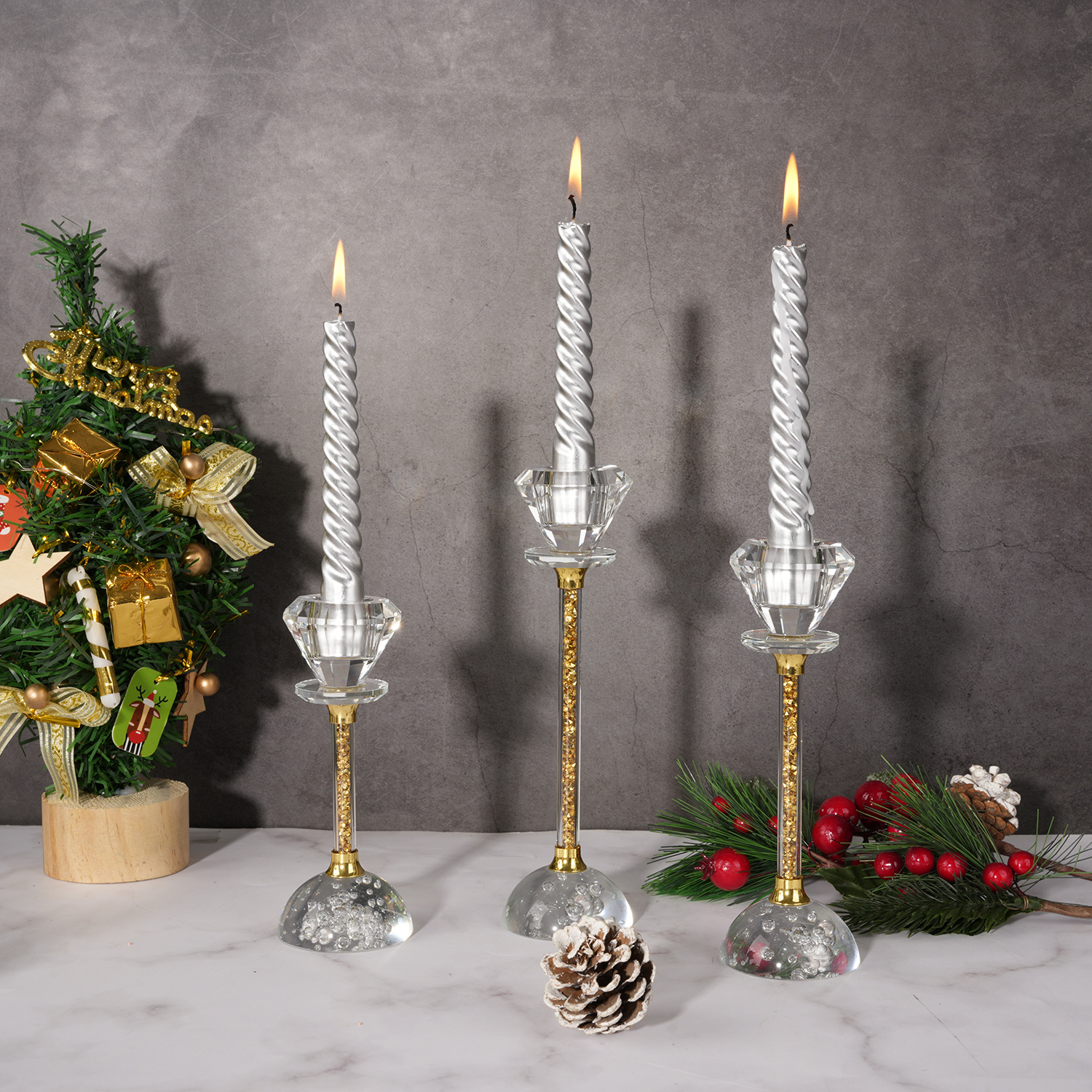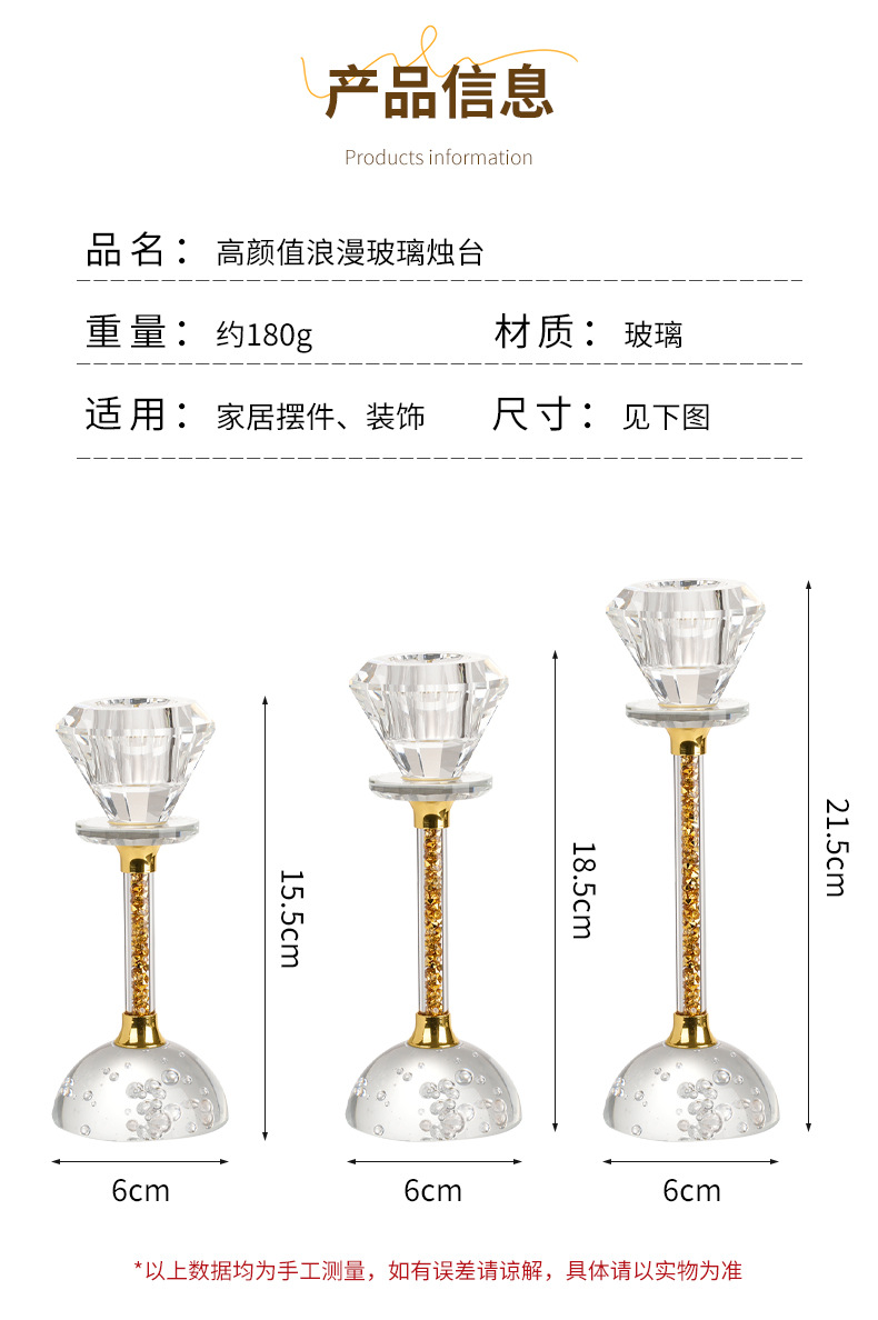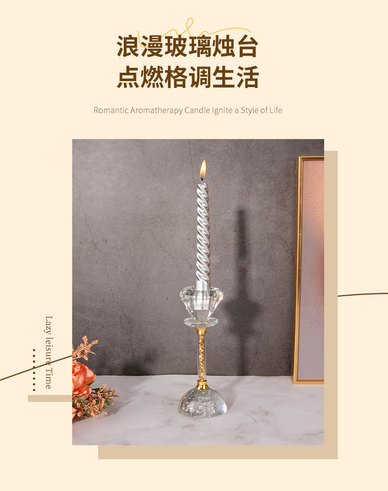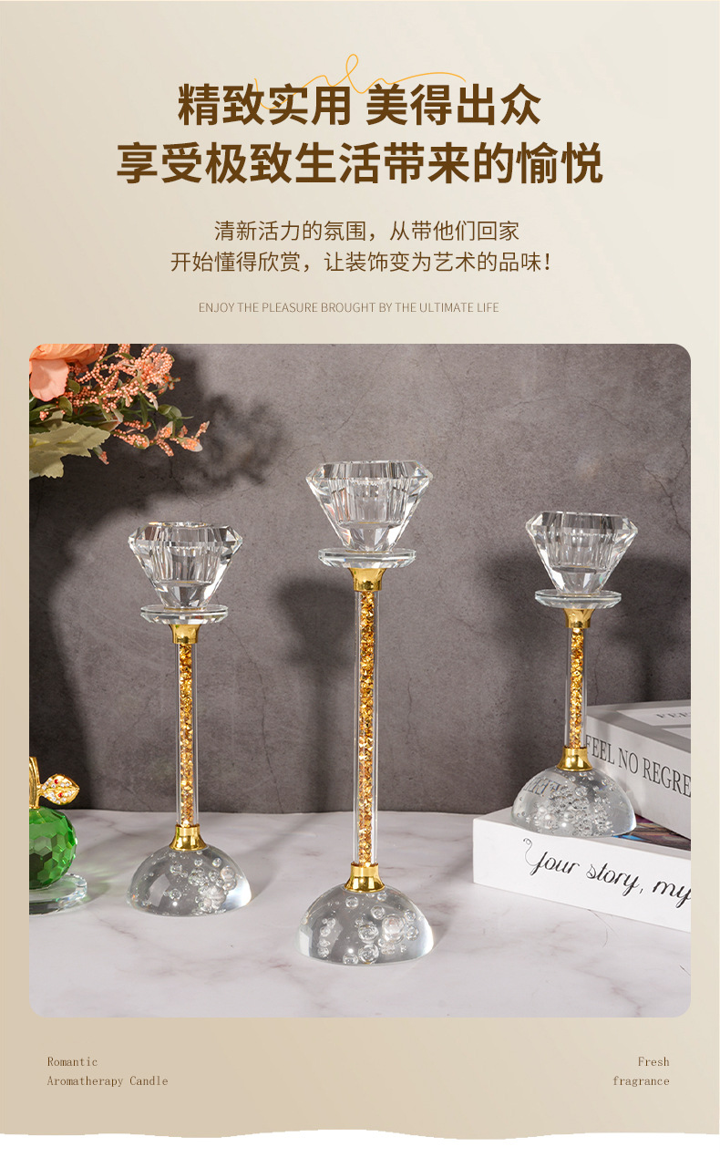 跨境水晶玻璃钻石杆烛台轻奢烛光晚餐婚庆道具简约婚礼餐桌摆件