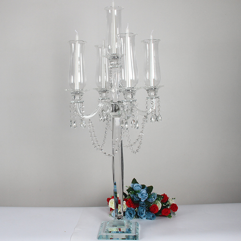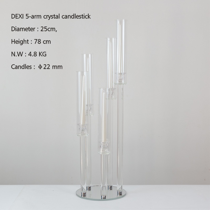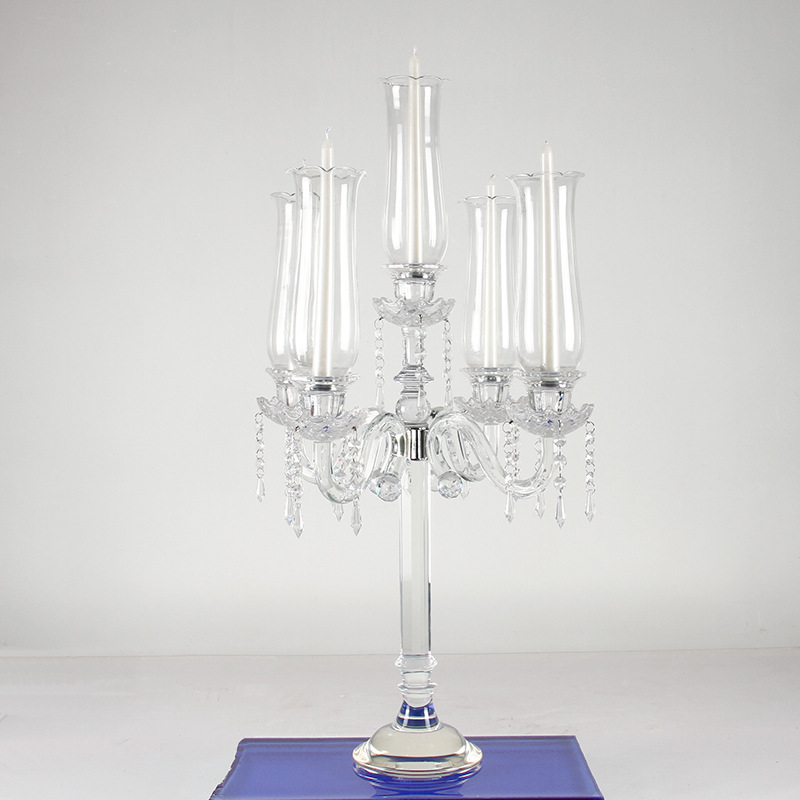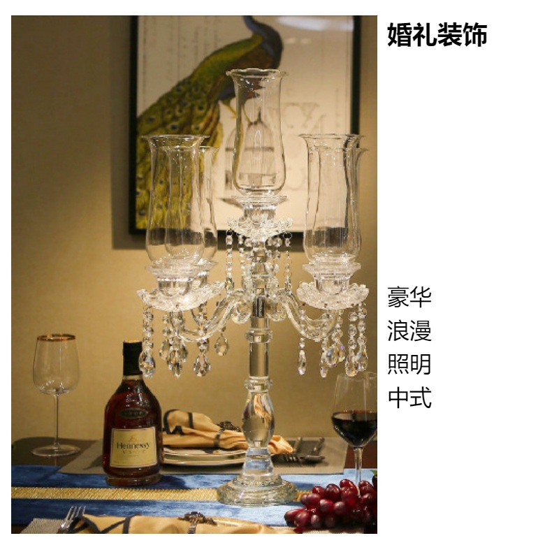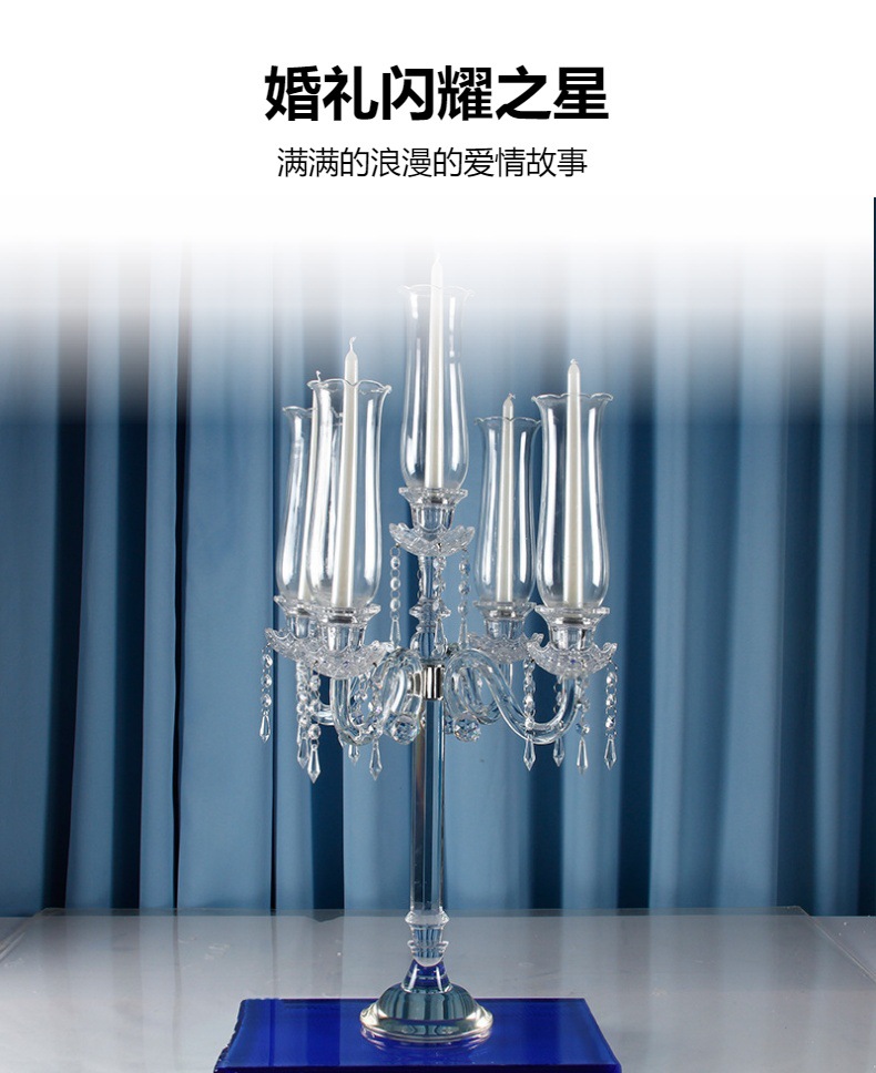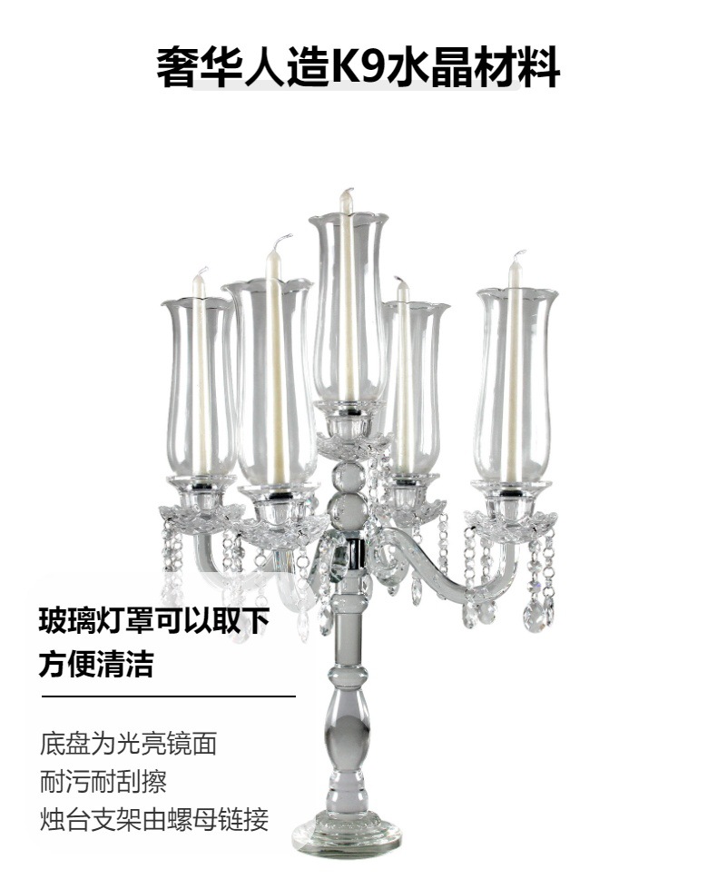 创意水晶烛台工厂批发婚庆婚礼餐桌装饰烛台欧式复古5头烛台玻璃