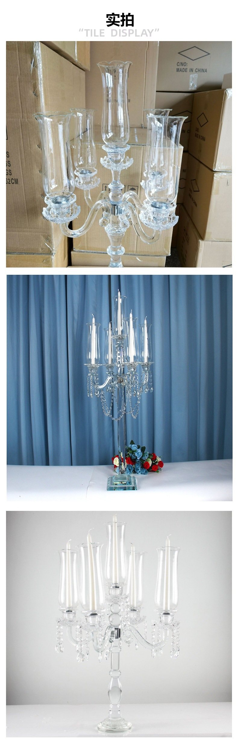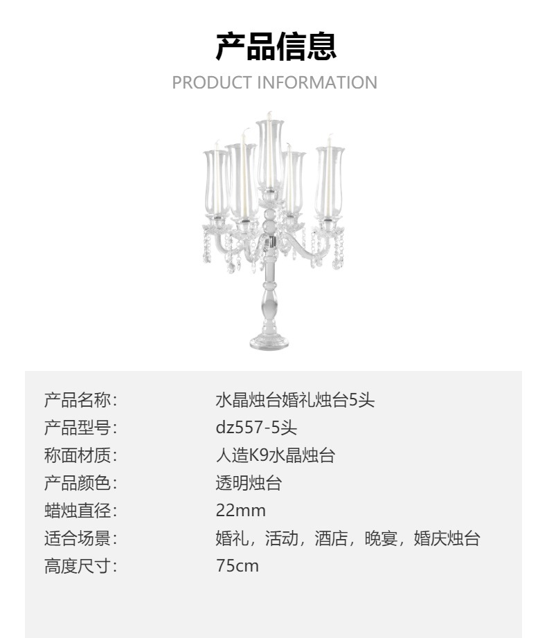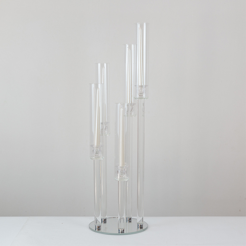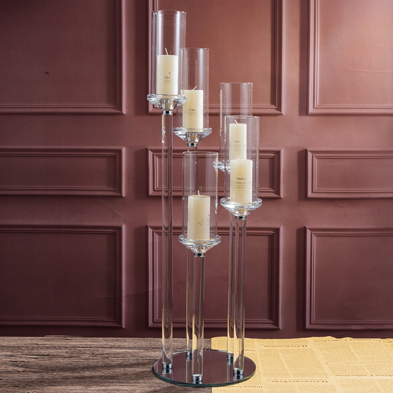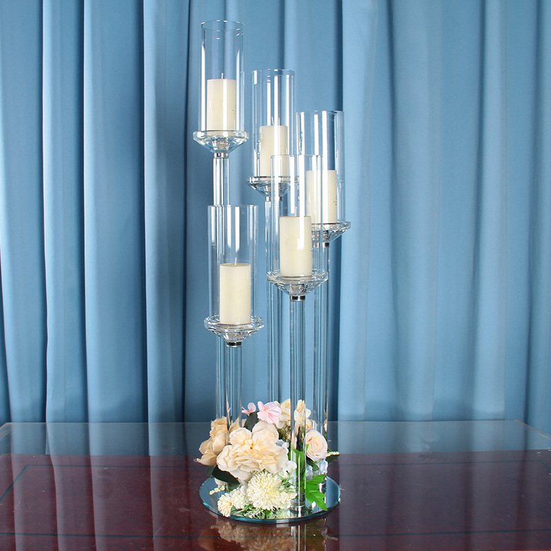 创意水晶烛台工厂批发婚庆婚礼餐桌装饰烛台欧式复古5头烛台玻璃