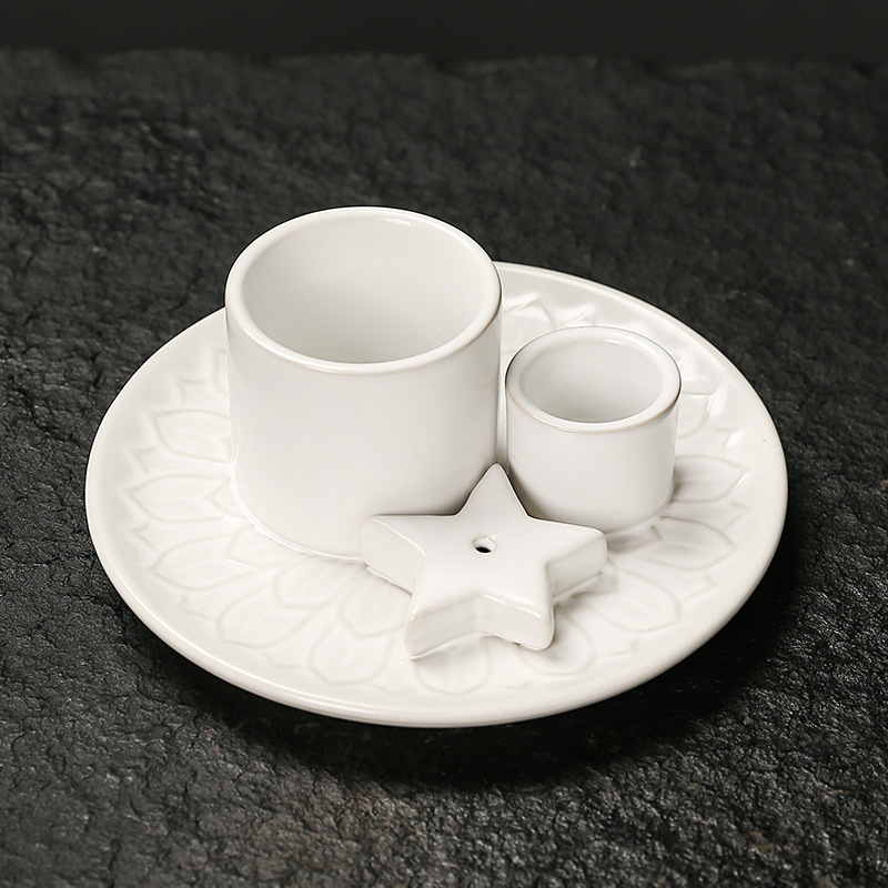 陶瓷香薰烛台香薰炉 简约风格北欧风蜡烛杯氛围装饰鼠尾草圣木盘