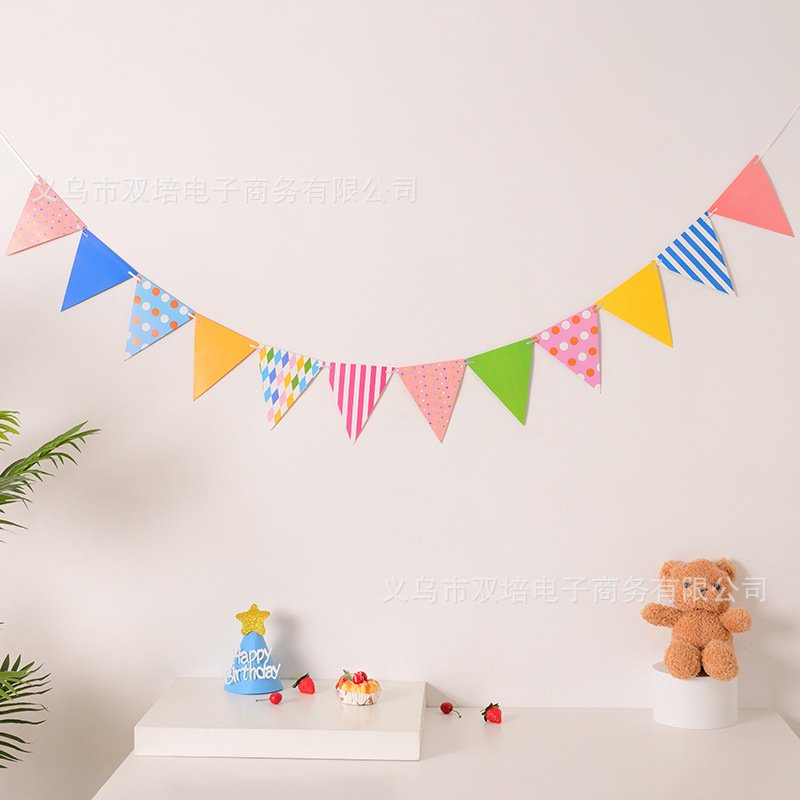节庆派对装扮用品生日拉旗横幅三角旗装饰布置彩旗吊旗道具拉花