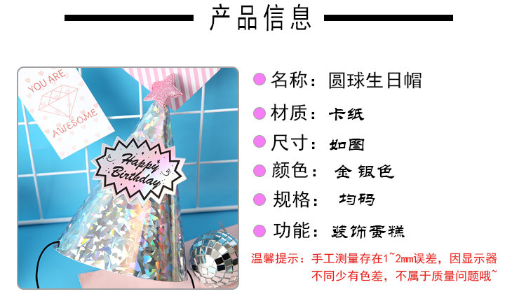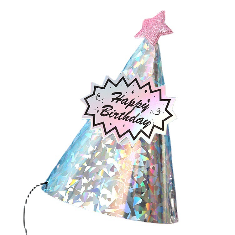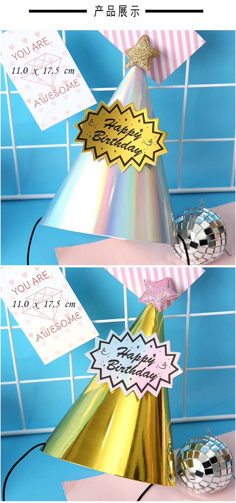 生日儿童帽生日头饰节庆用品男女派对可爱闪粉小星星镭射生日帽