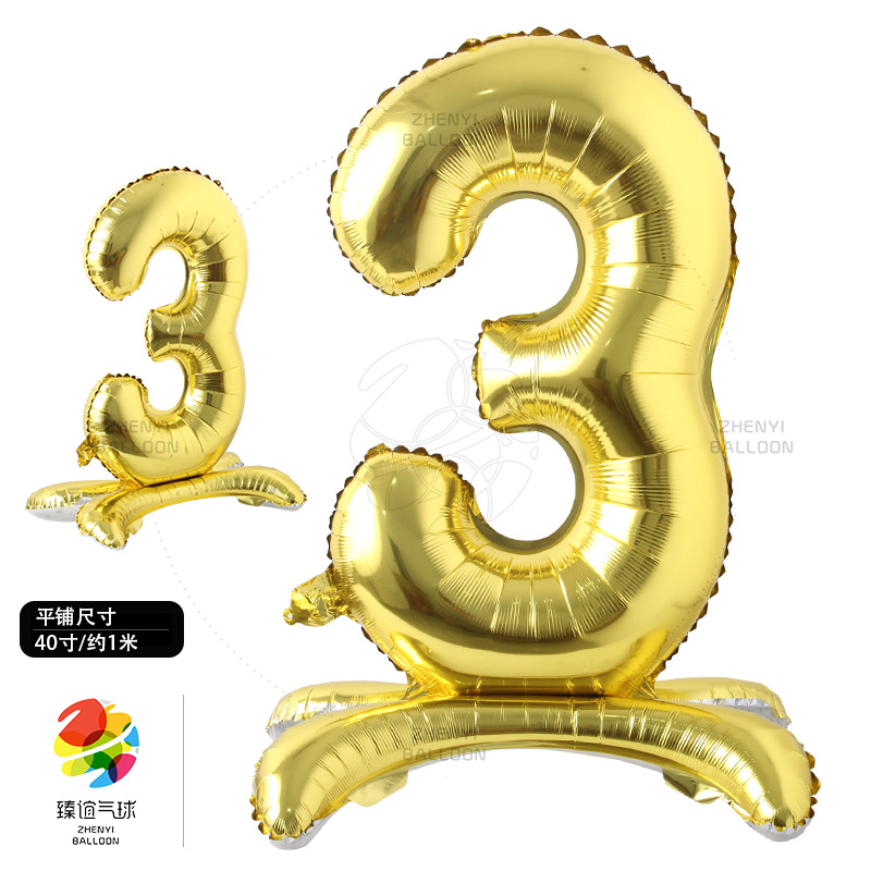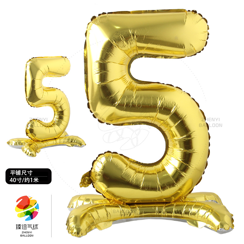 40寸金色数字站立气球节庆生日派对装饰立体气球婚庆用品婚礼装饰
