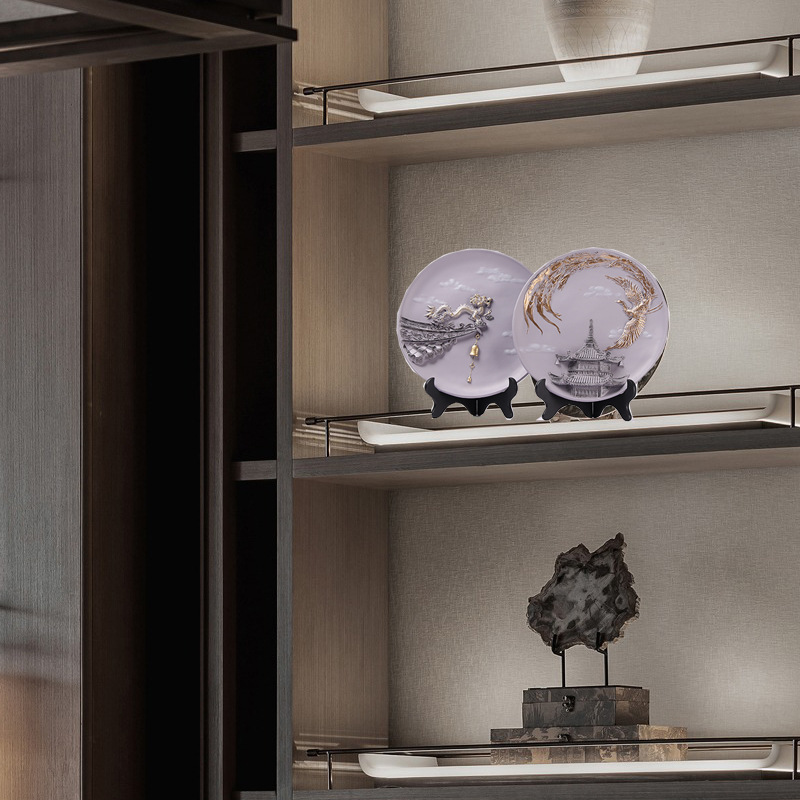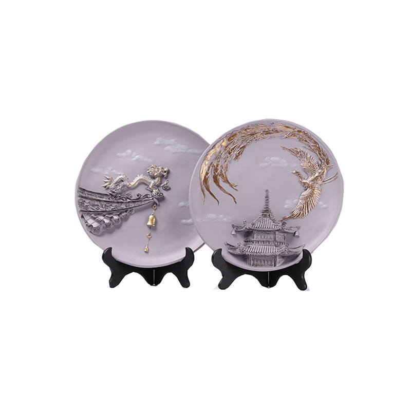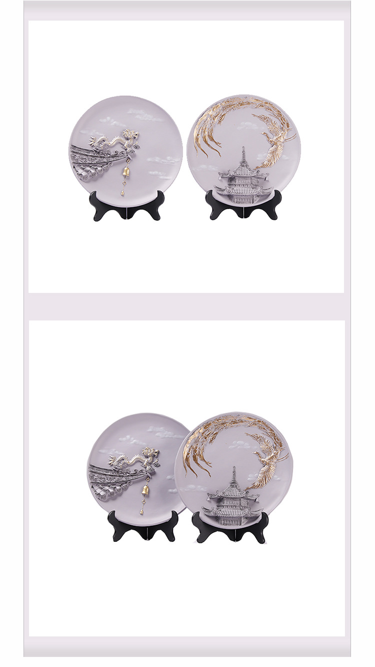 创意新中式现代龙凤立盘摆件客厅博古架茶几书桌玄关家居饰品摆件