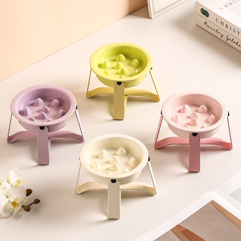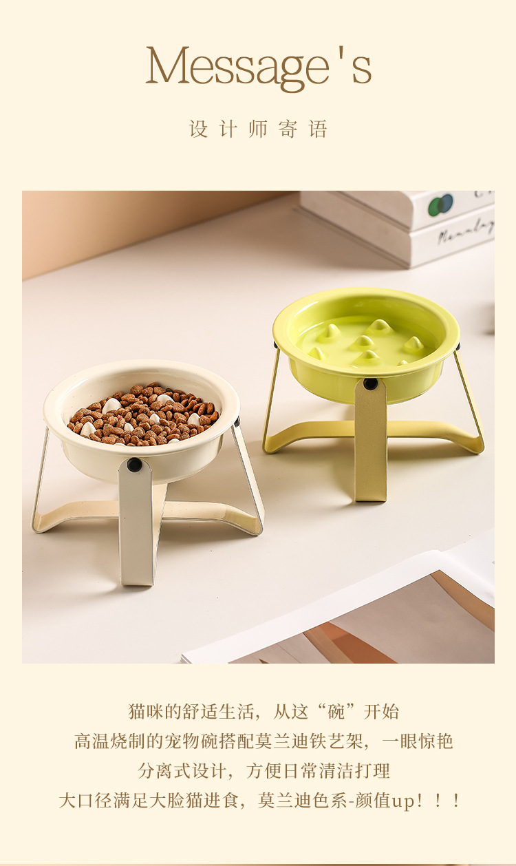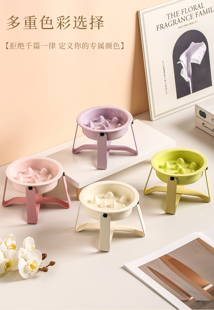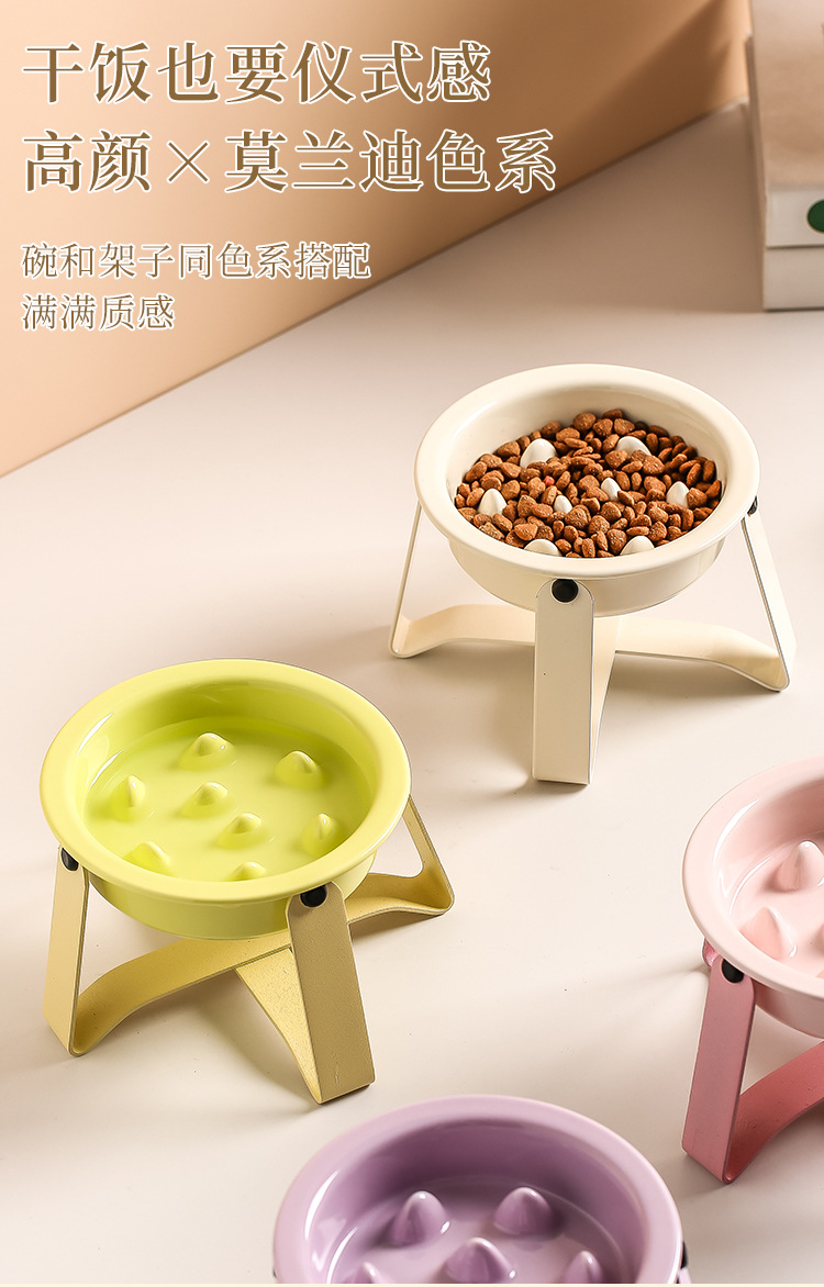 宠物慢食碗带铁架家用猫狗用品食盆护颈椎猫粮碗防打翻碗架宠物碗
