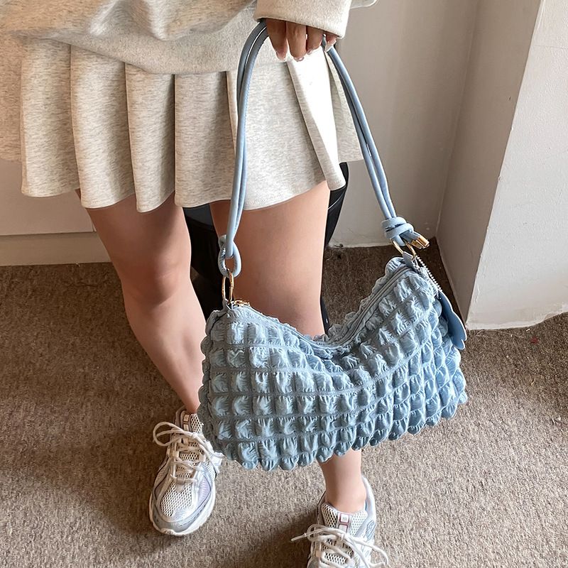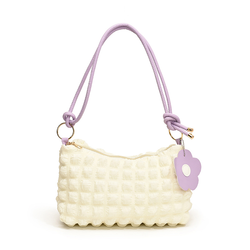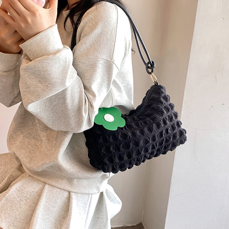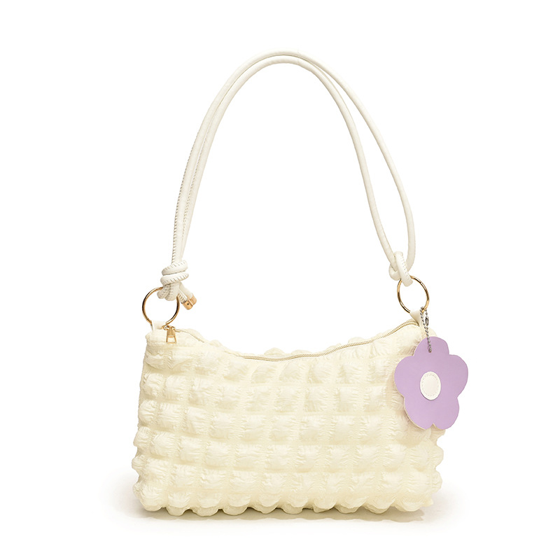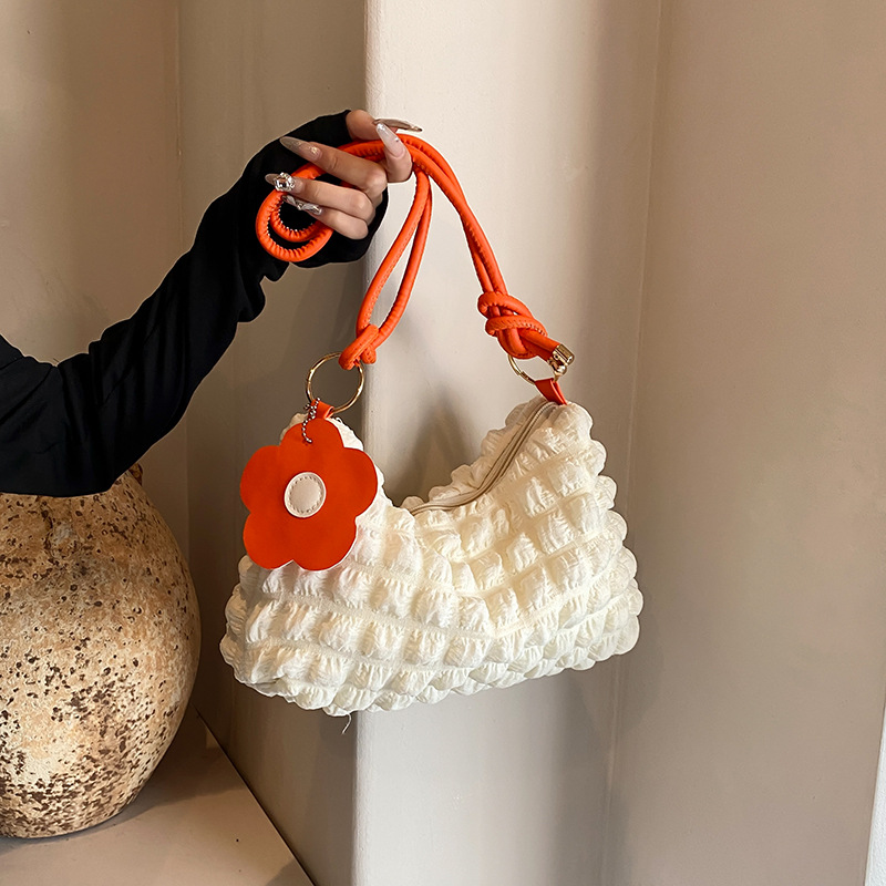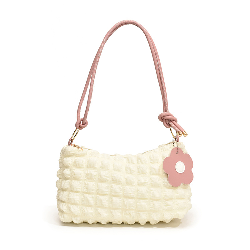 韩版奶油泡泡包新款小众单肩腋下百搭包时尚花朵手拎包多颜色女包