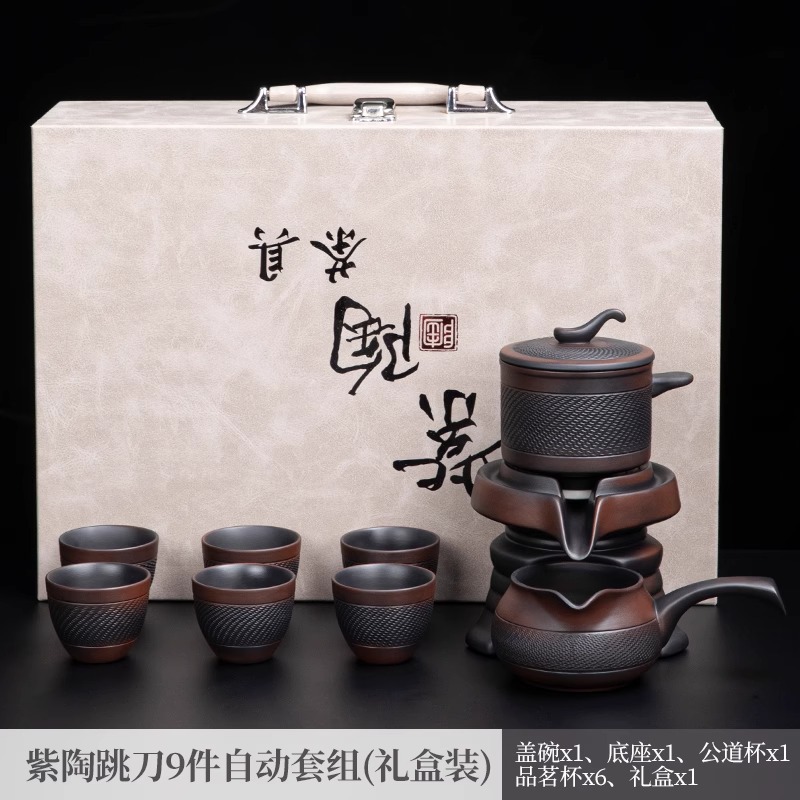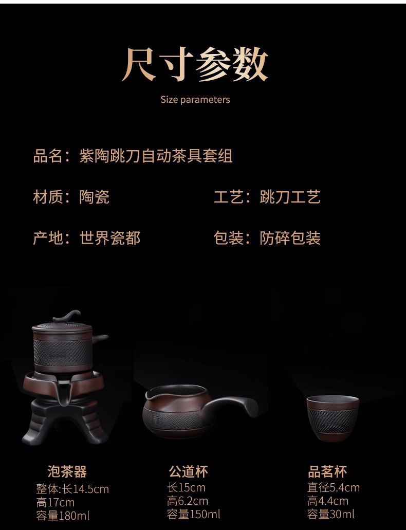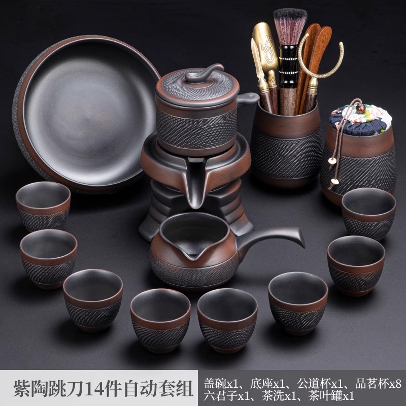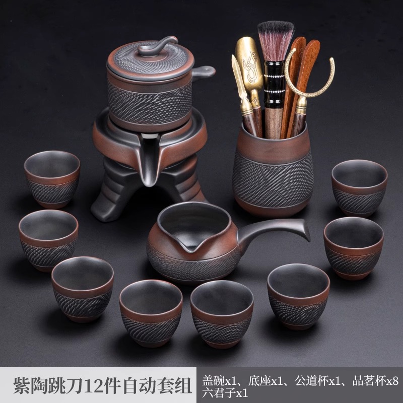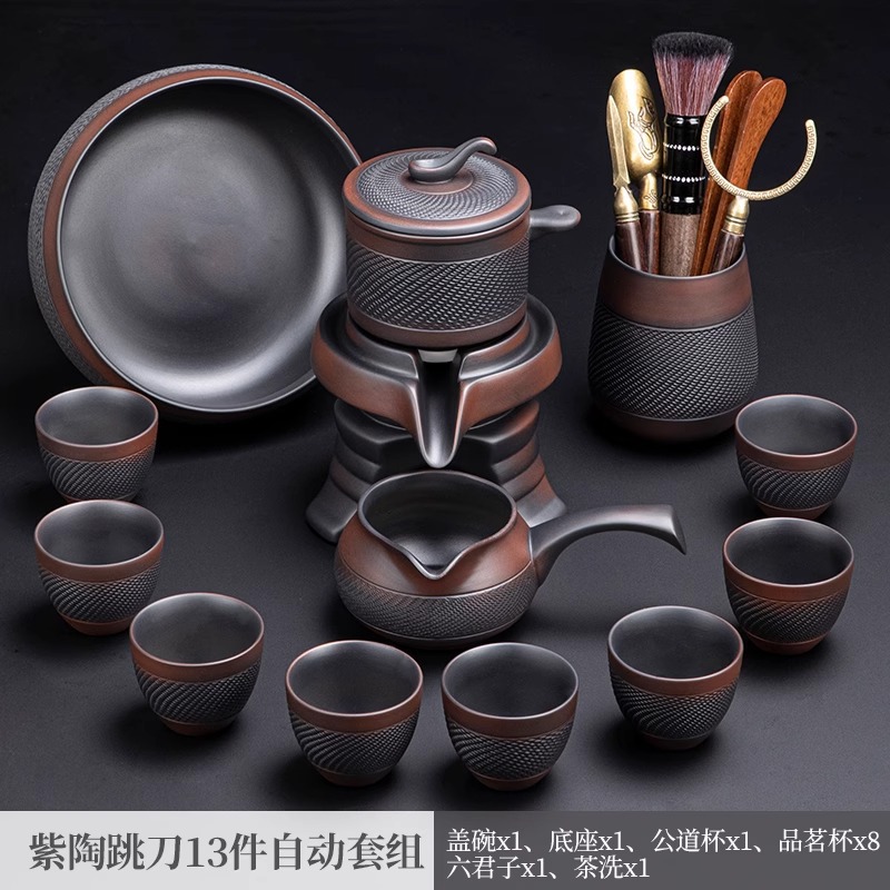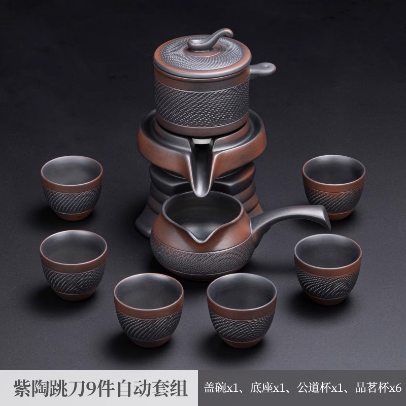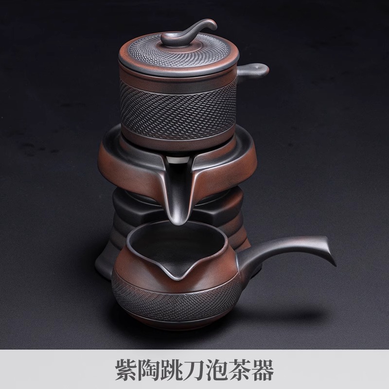 紫陶跳刀懒人功夫茶具套装家用陶瓷石磨自动泡茶器茶壶茶杯泡茶器