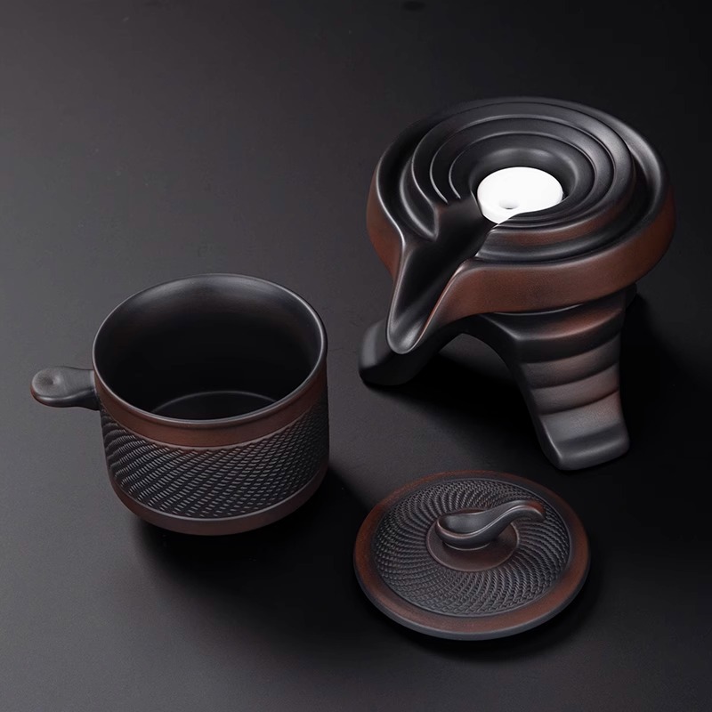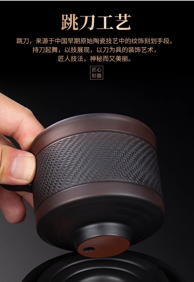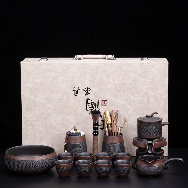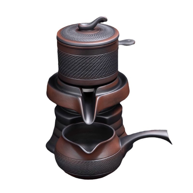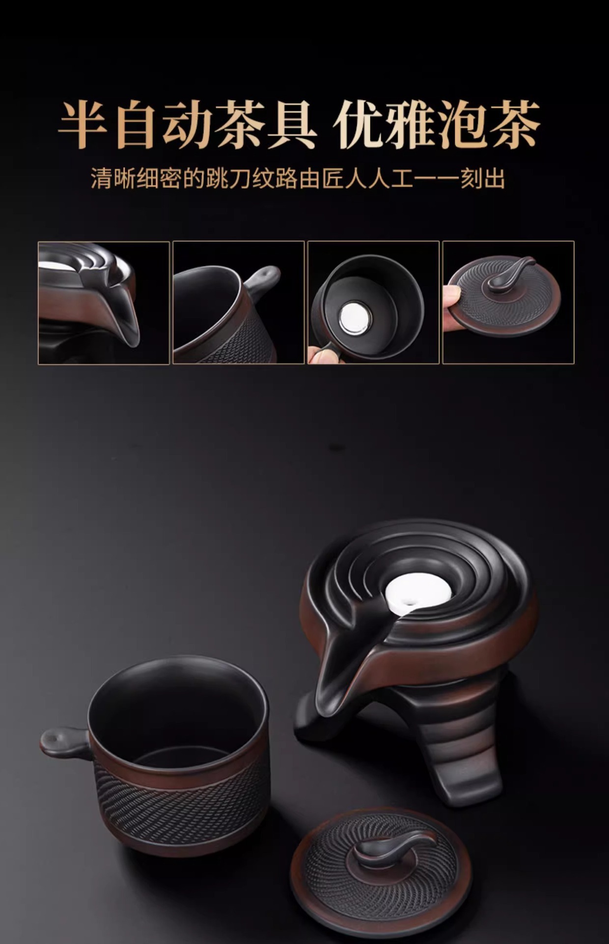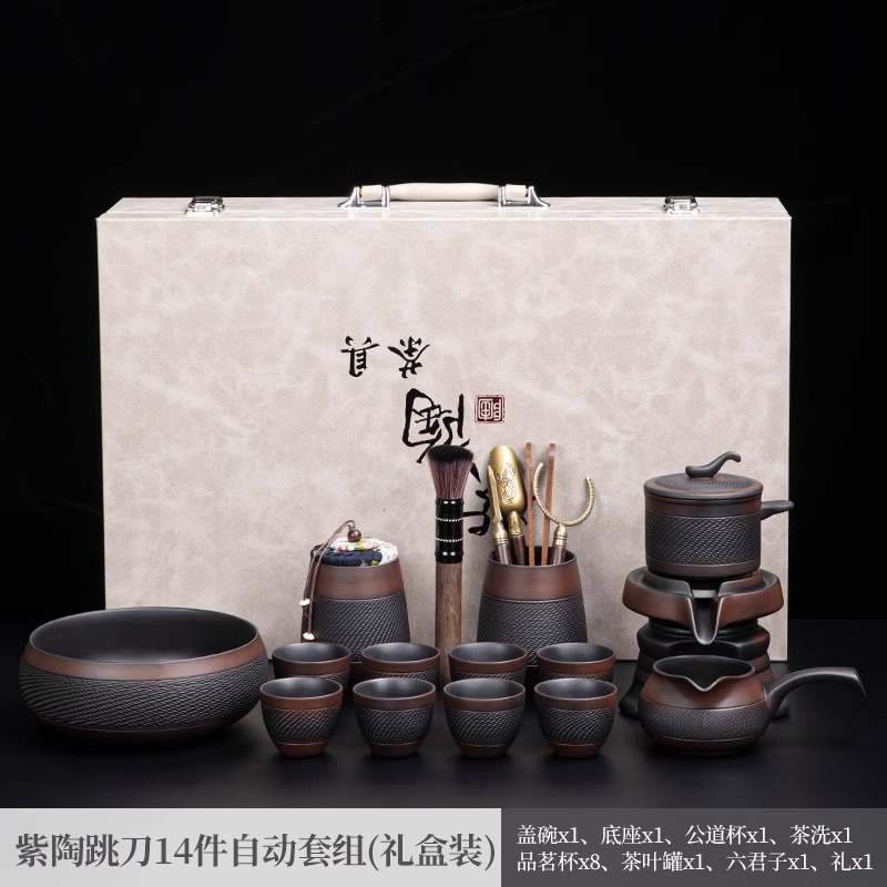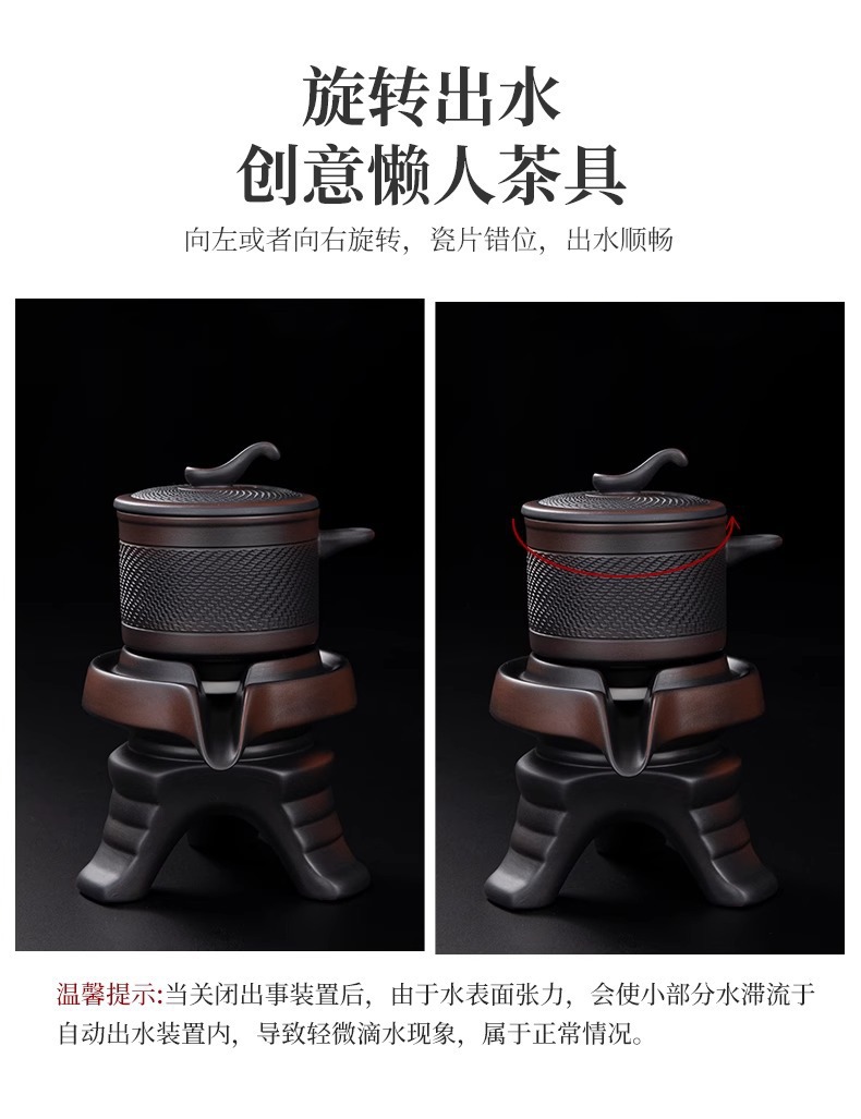 紫陶跳刀懒人功夫茶具套装家用陶瓷石磨自动泡茶器茶壶茶杯泡茶器
