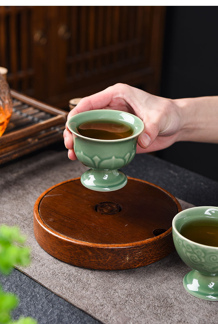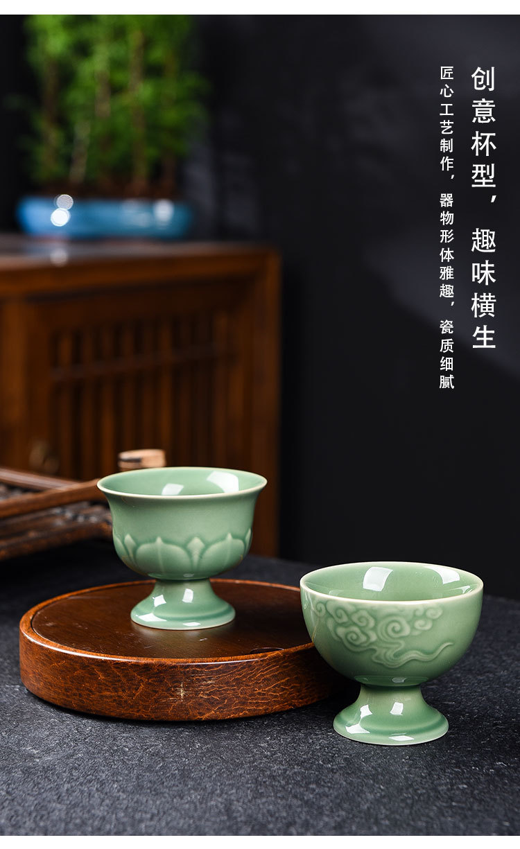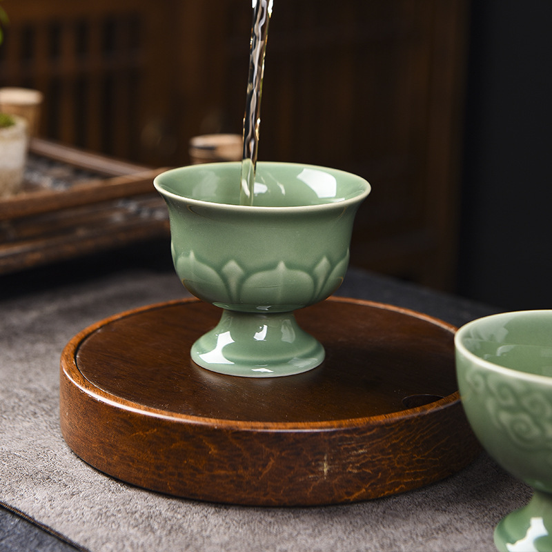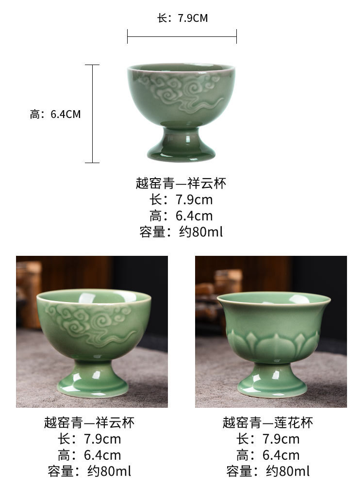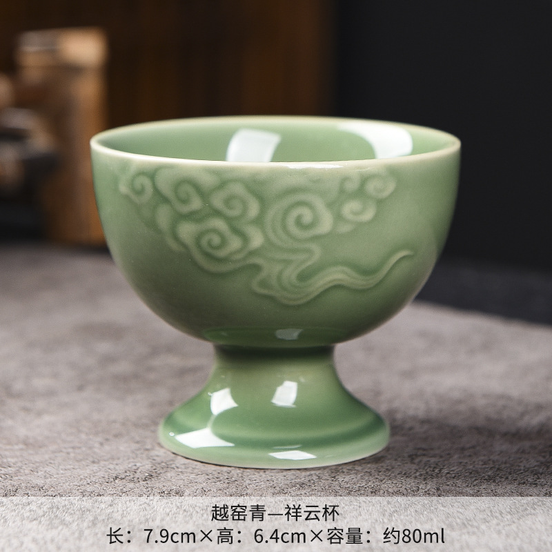 越窑青瓷茶杯仿古高足杯品茗杯陶瓷主人杯单杯功夫大茶杯高端家用