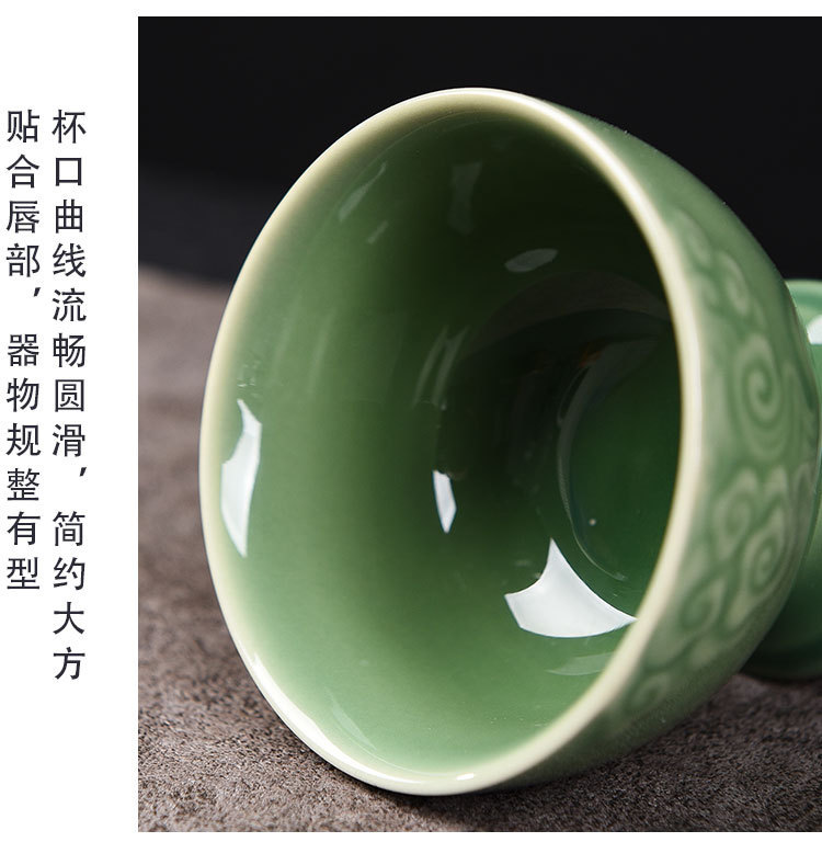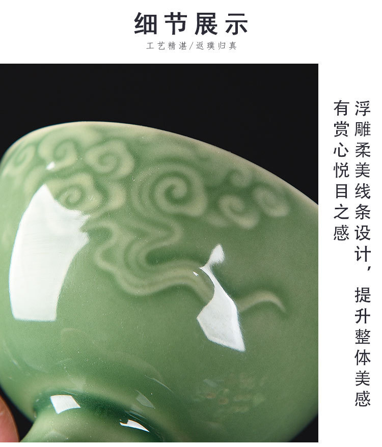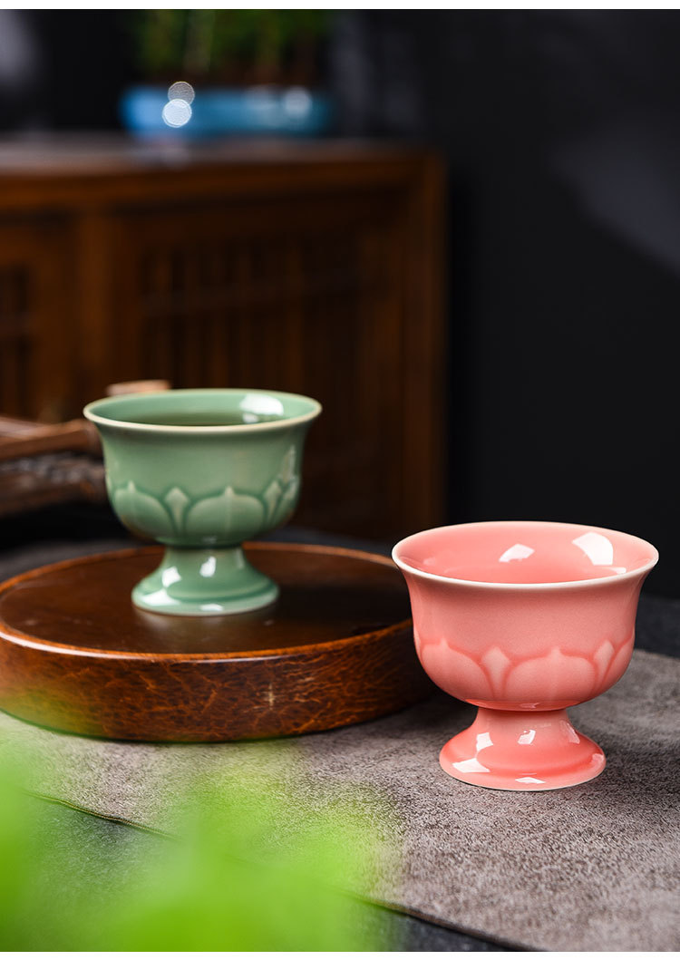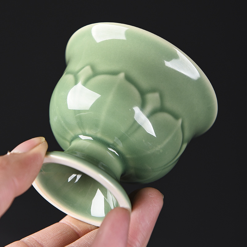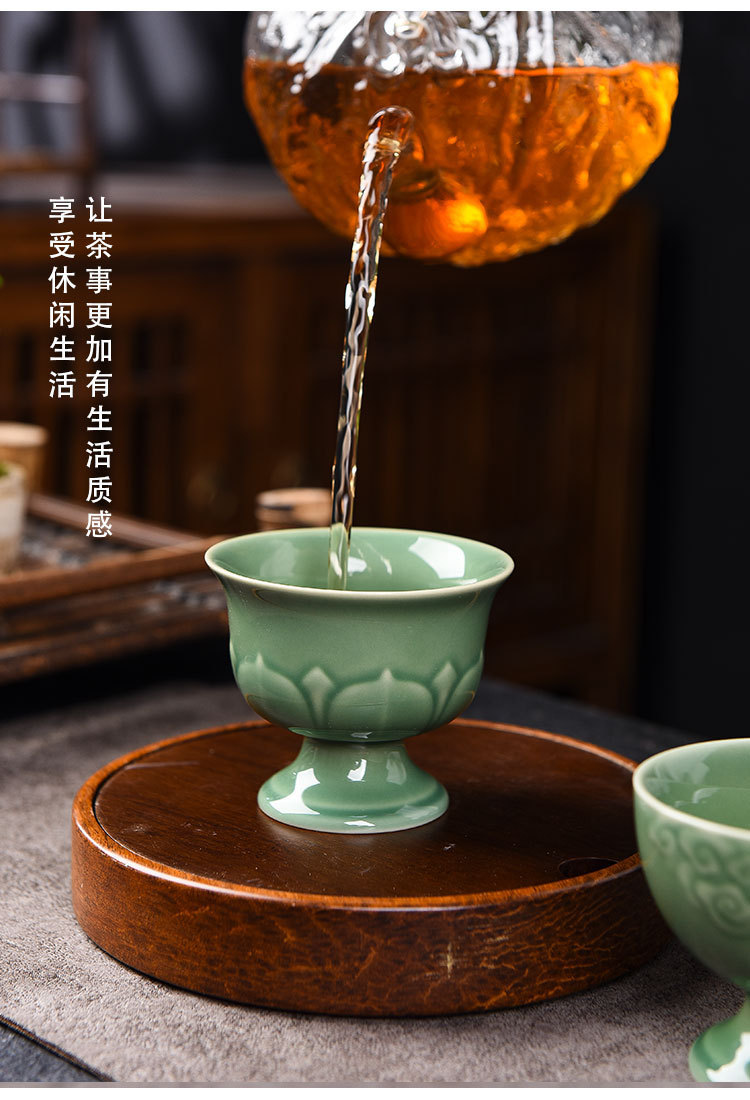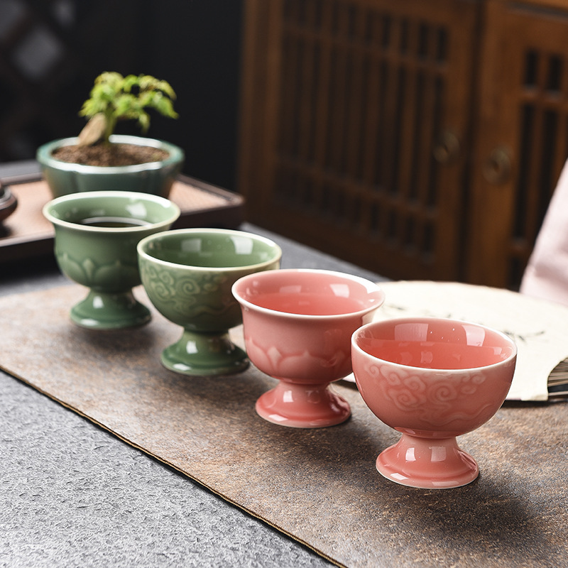 越窑青瓷茶杯仿古高足杯品茗杯陶瓷主人杯单杯功夫大茶杯高端家用