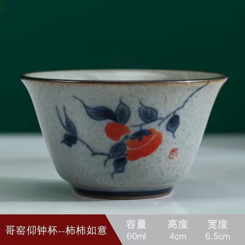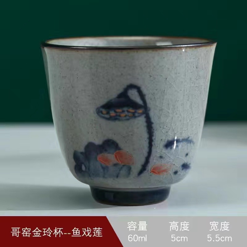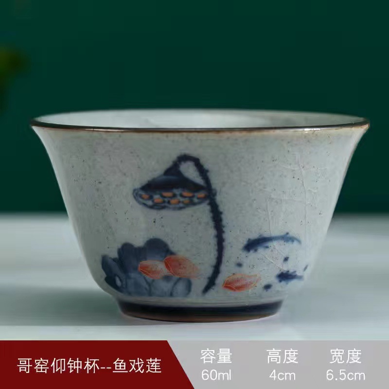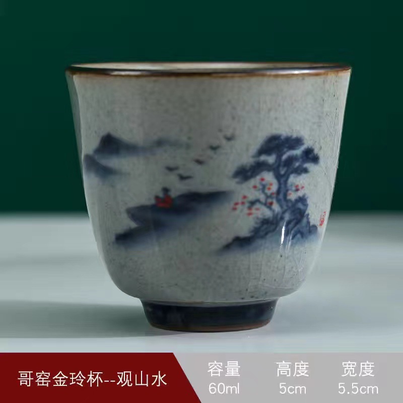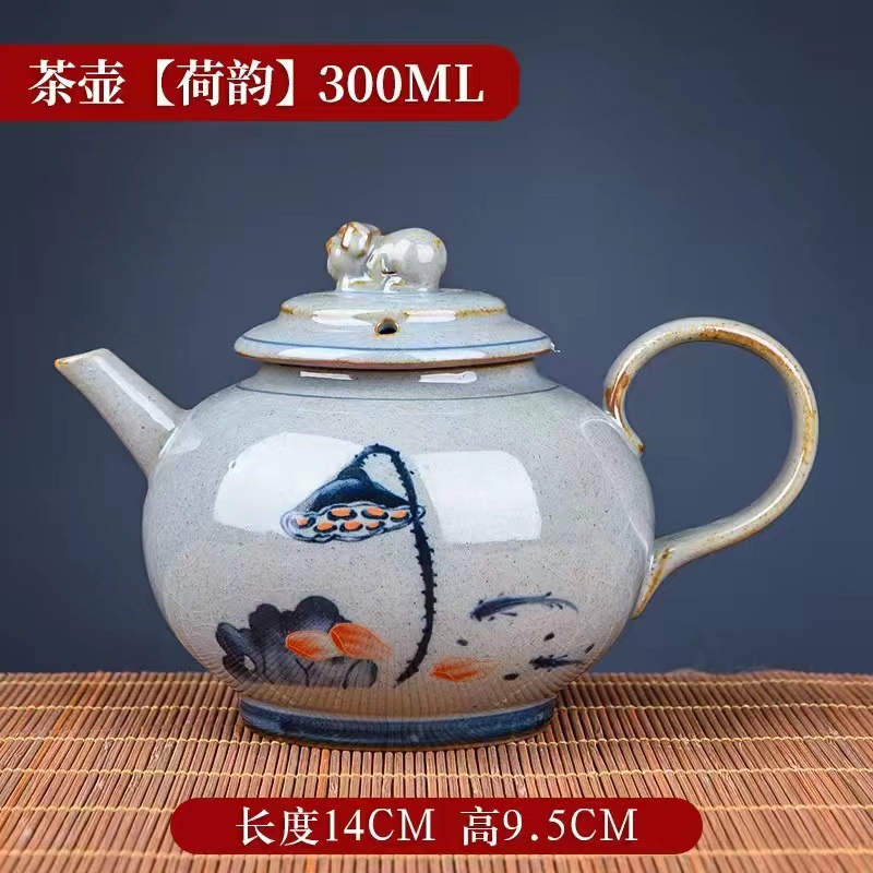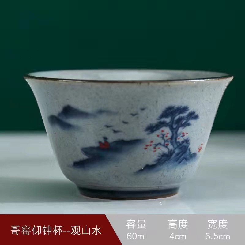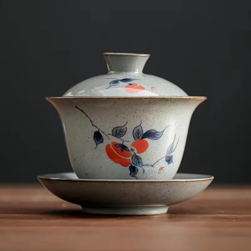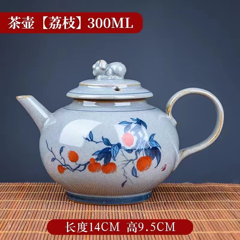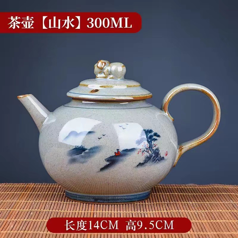 哥窑家用复古盖碗茶杯创意釉上彩青花三才带盖泡茶壶仿宋茶具