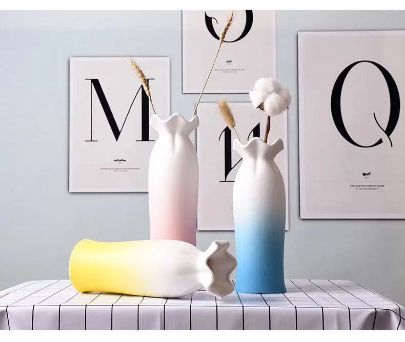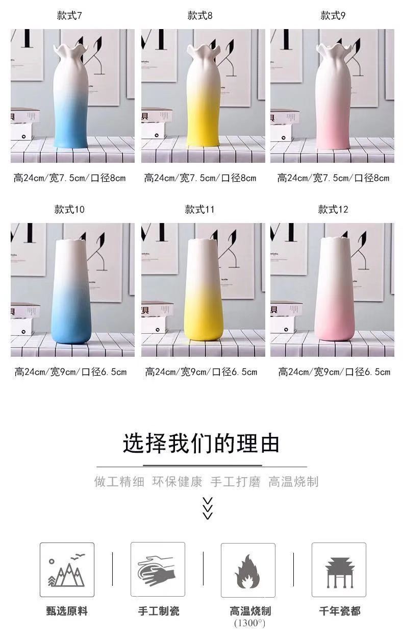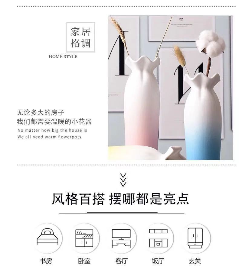 陶瓷花瓶彩色干花满天星创意水培绿萝花瓶摆件客厅插花家居装饰品
