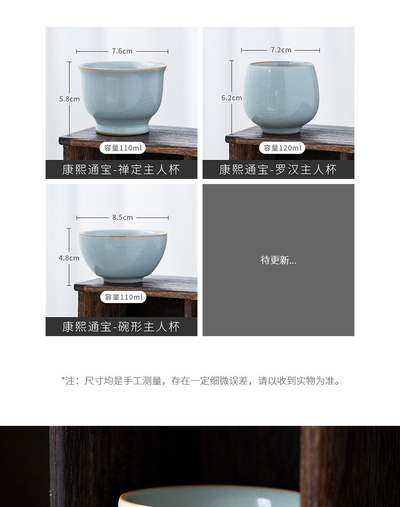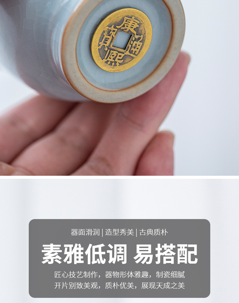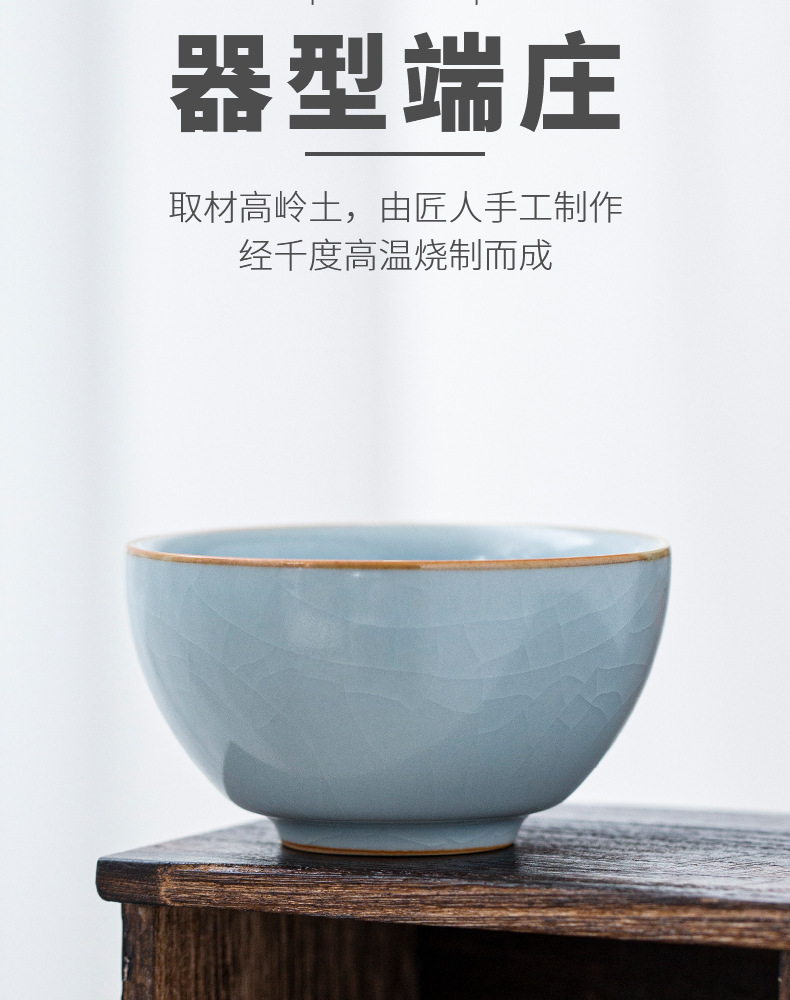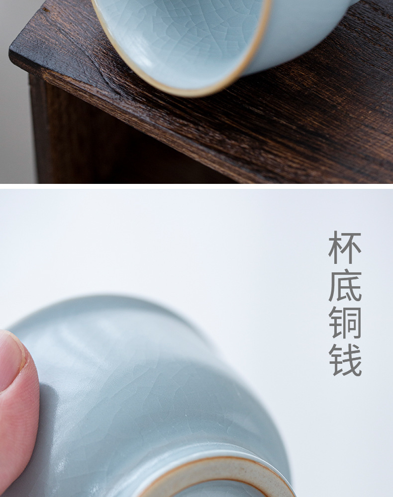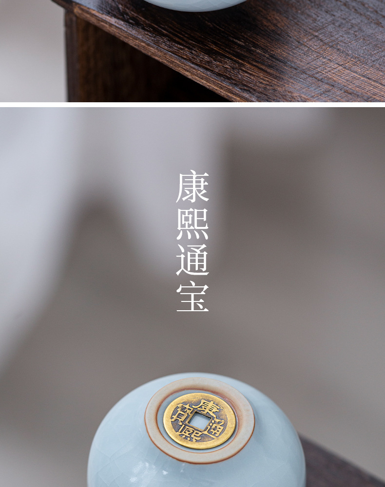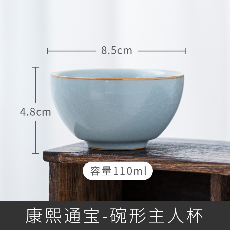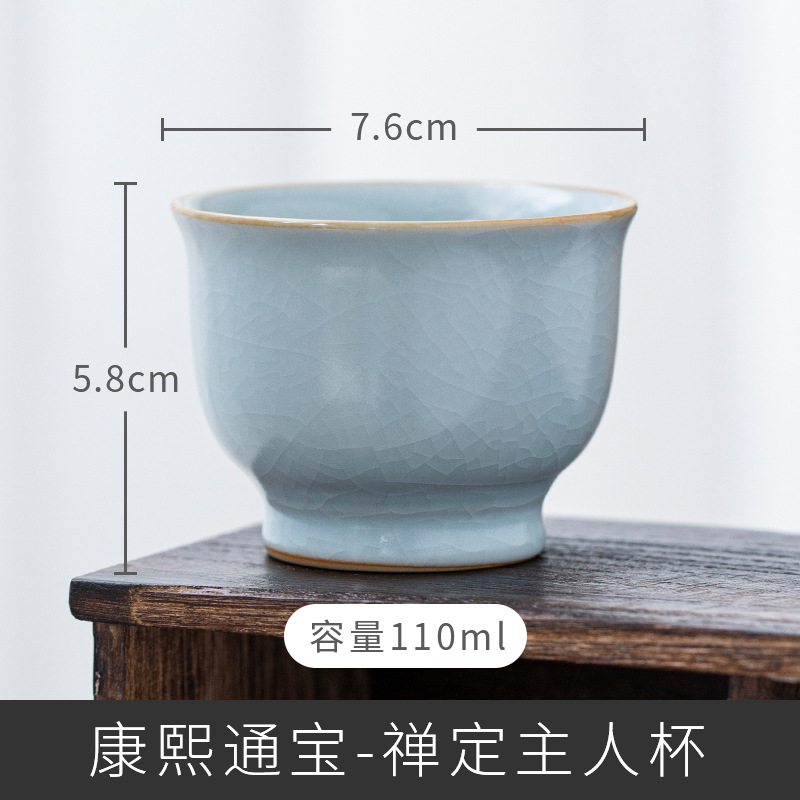 汝窑主人杯康熙通宝底款铜钱功夫茶具茶杯开片可养茶杯陶瓷品茗杯