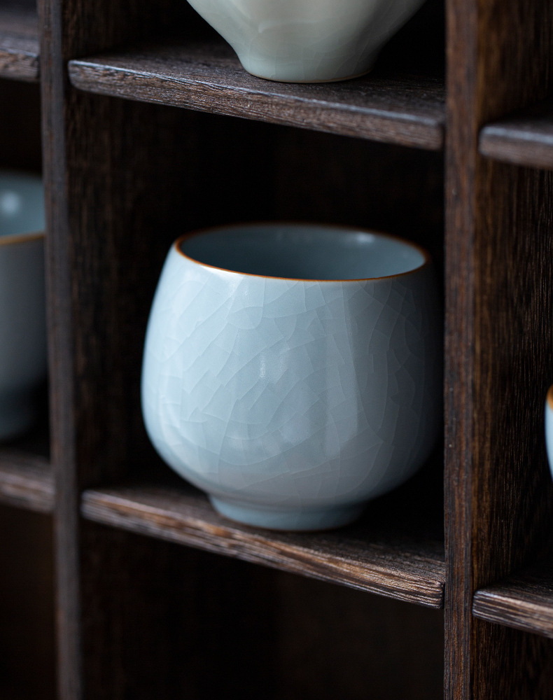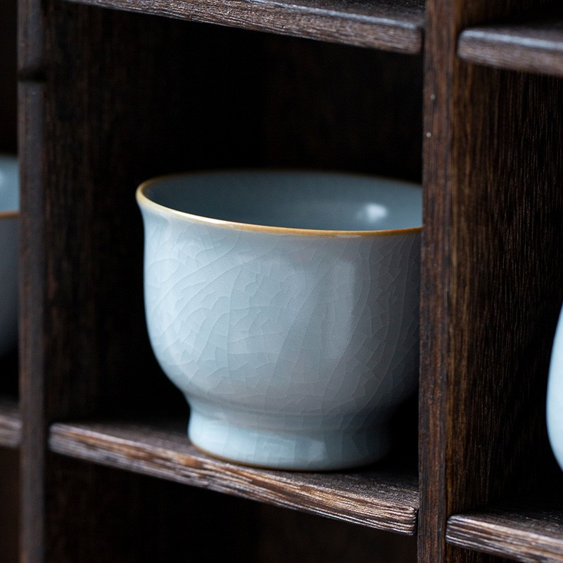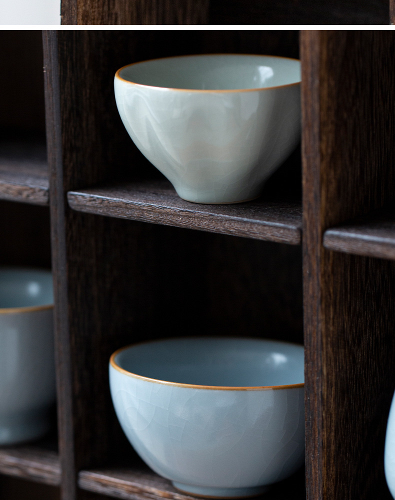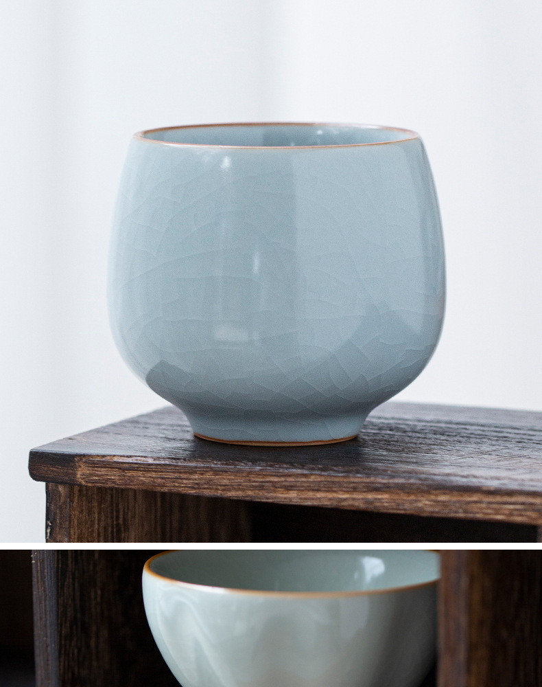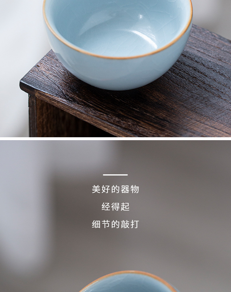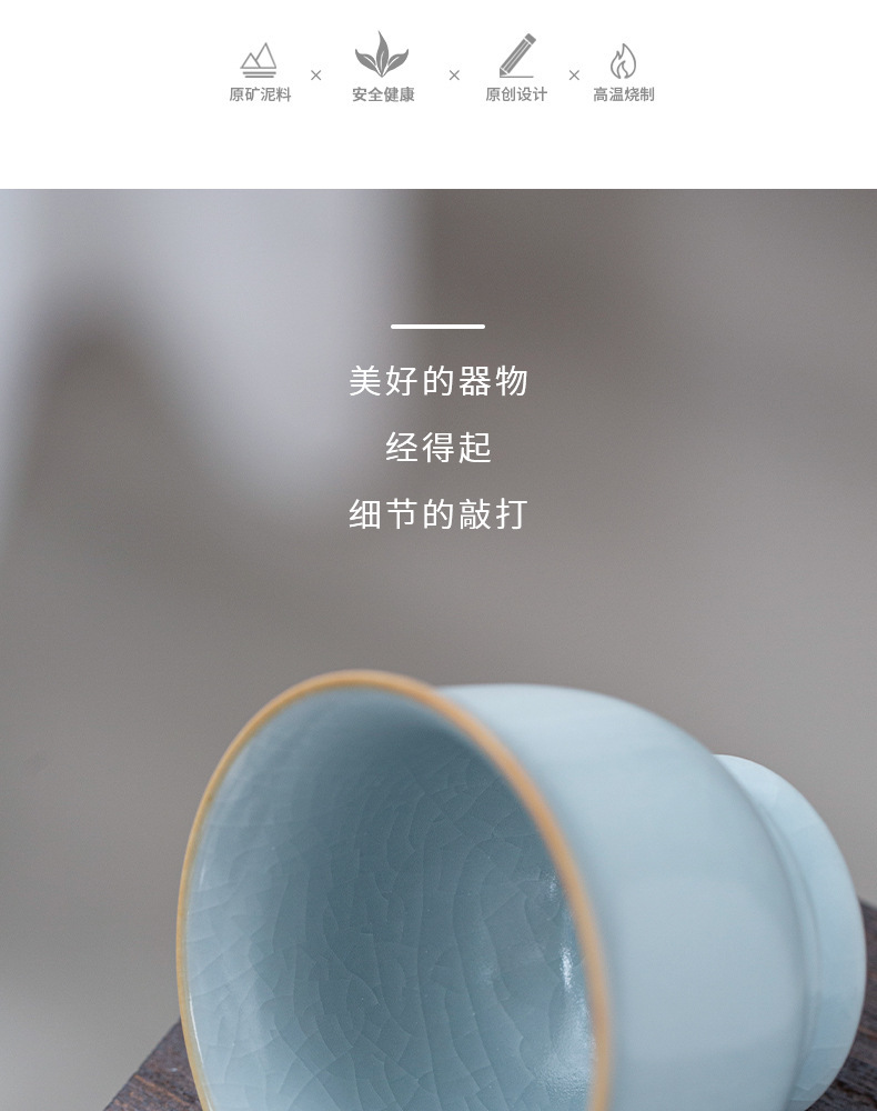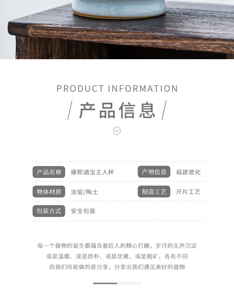 汝窑主人杯康熙通宝底款铜钱功夫茶具茶杯开片可养茶杯陶瓷品茗杯