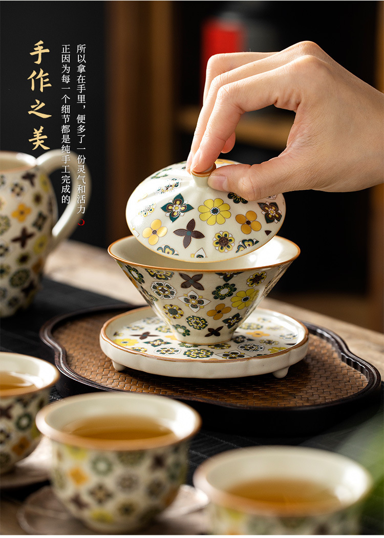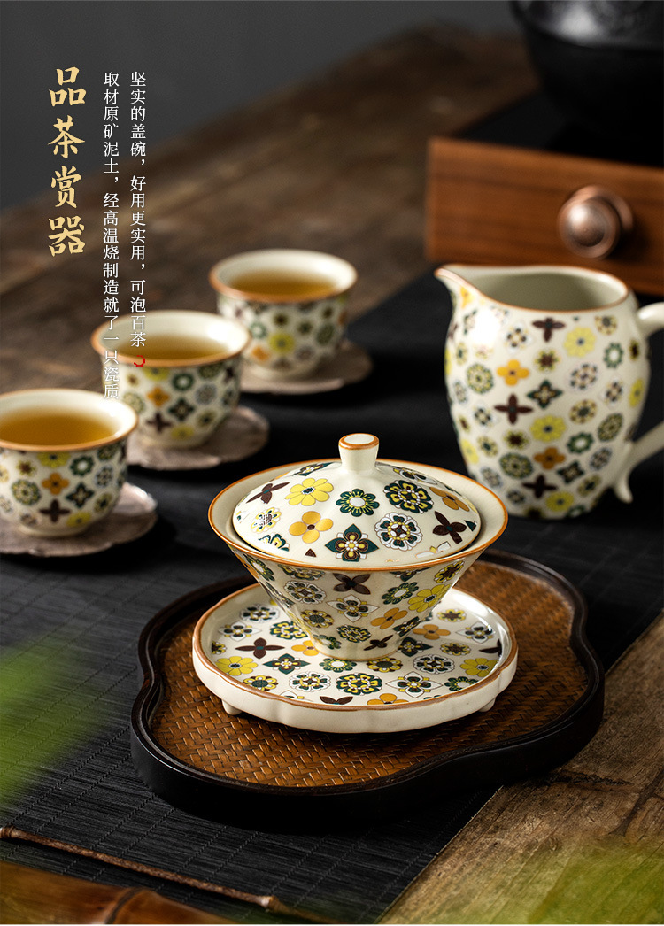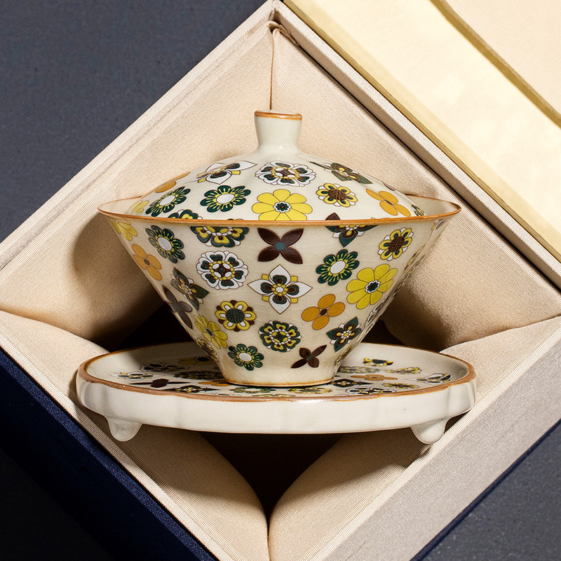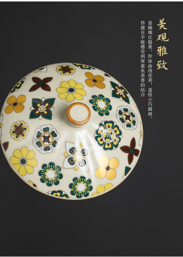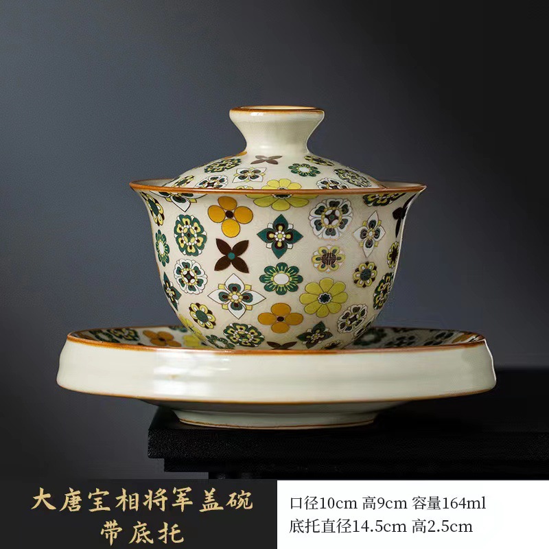 米黄汝窑大唐宝相三才盖碗高端中式陶瓷带盖泡茶碗家用功夫茶具
