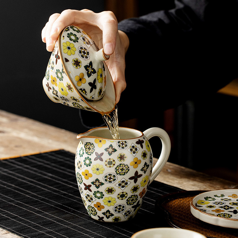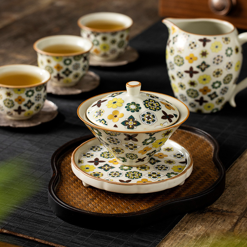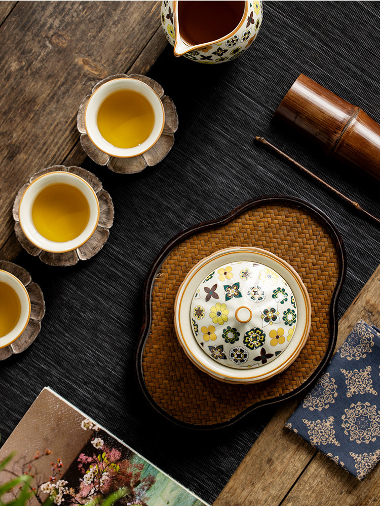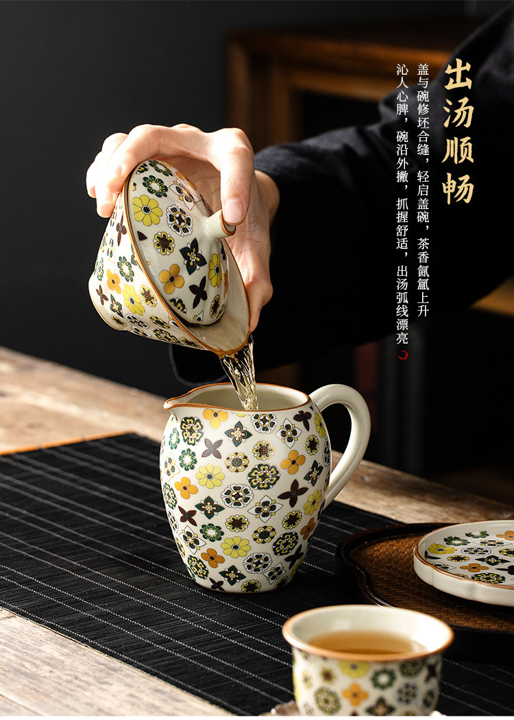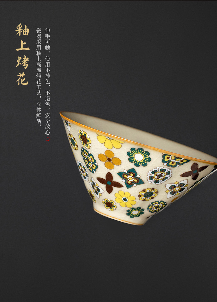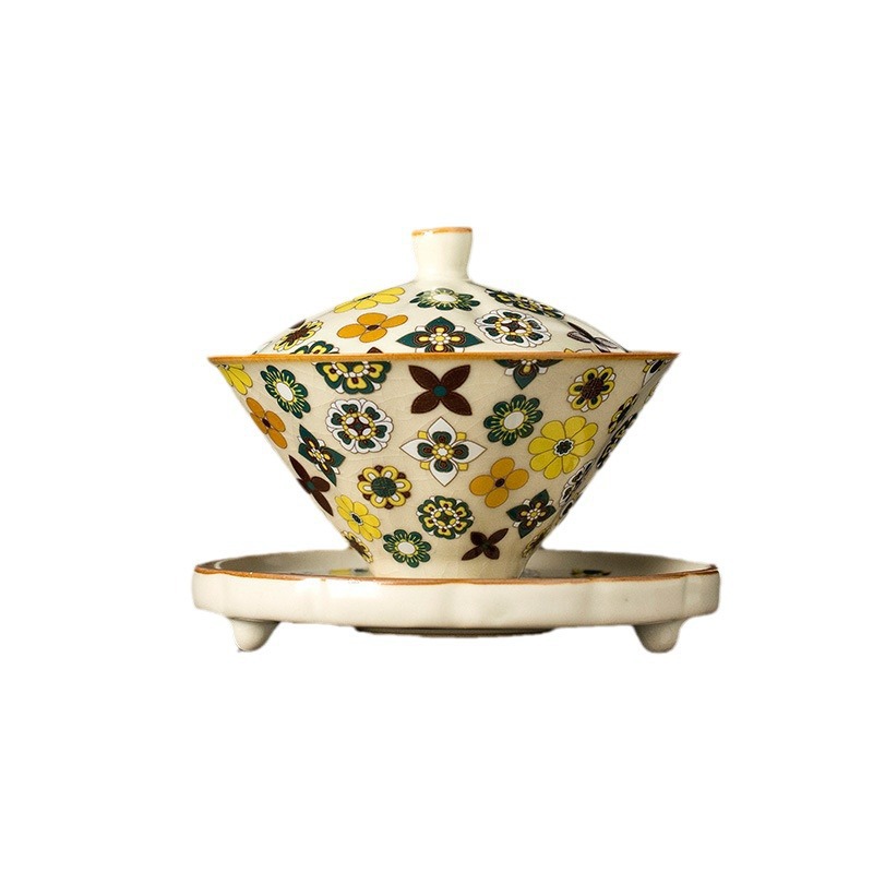 米黄汝窑大唐宝相三才盖碗高端中式陶瓷带盖泡茶碗家用功夫茶具