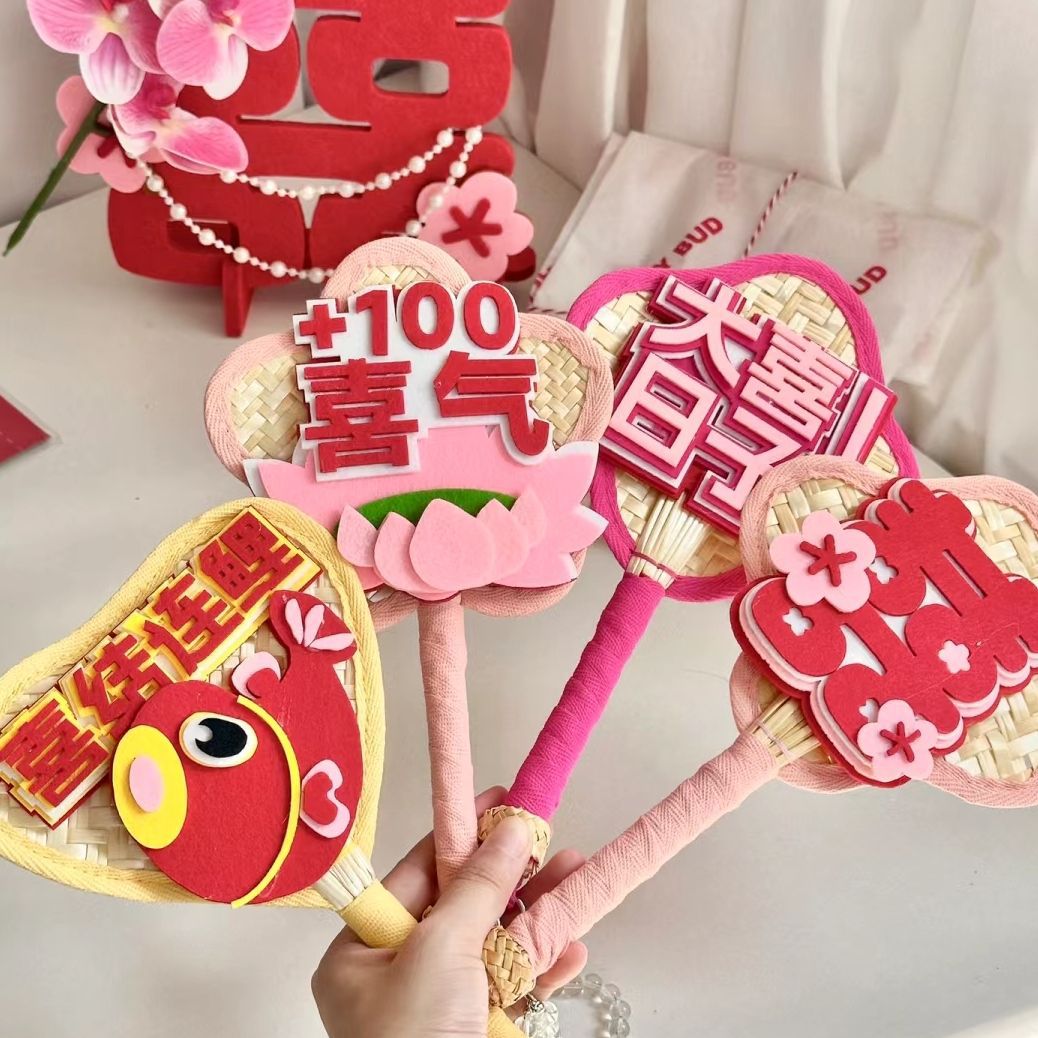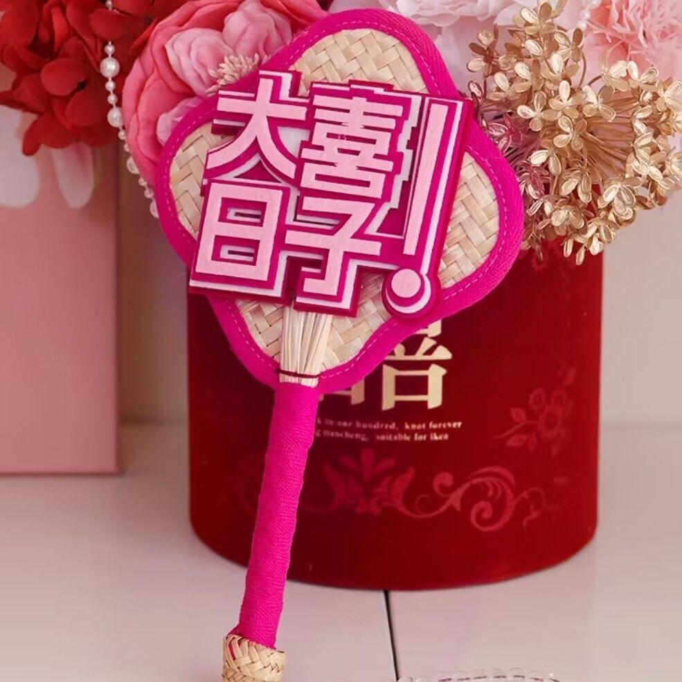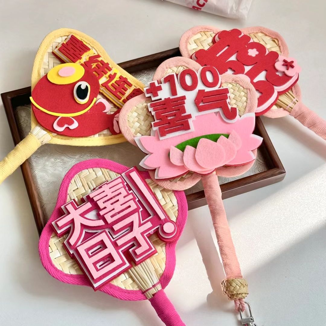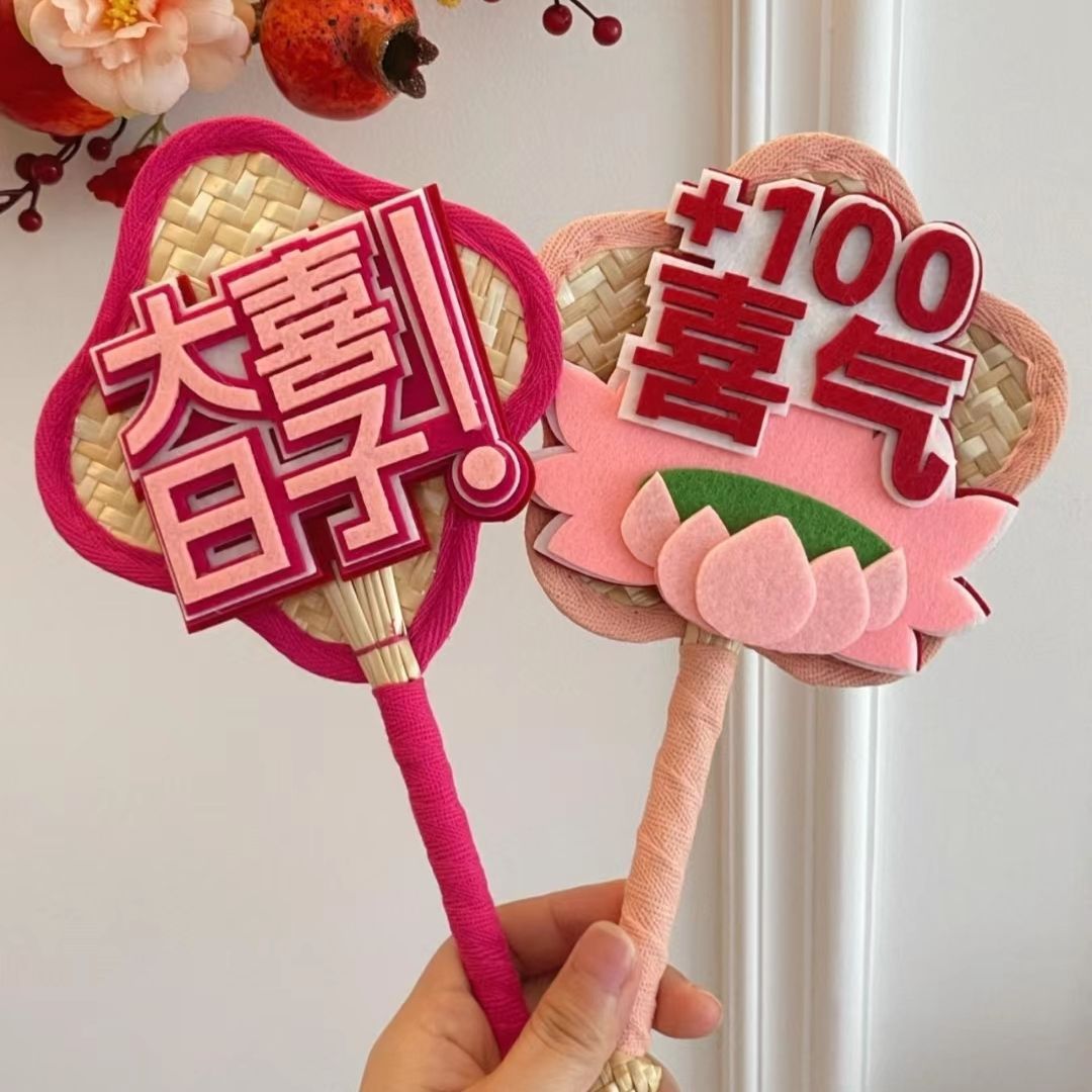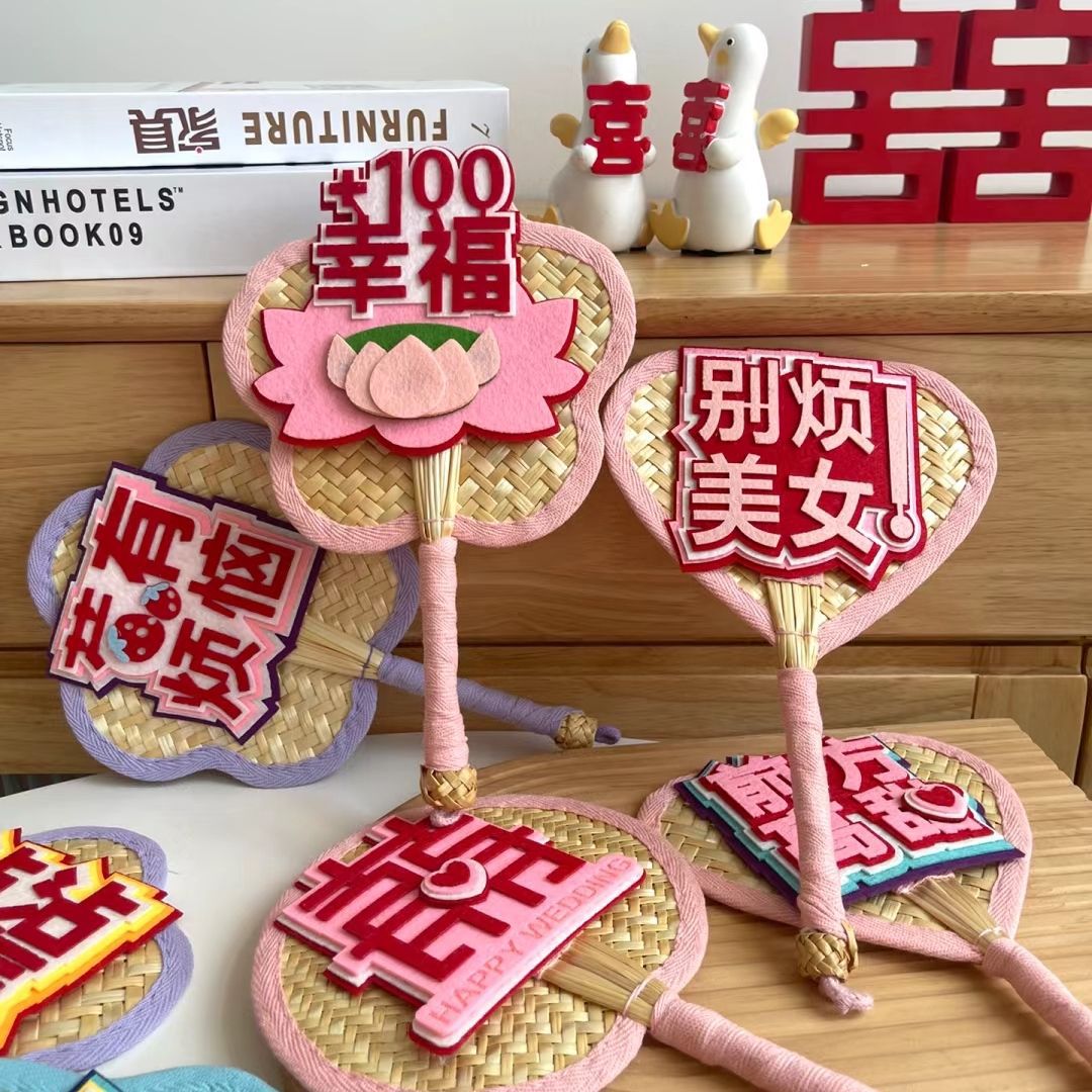 网红多巴胺蒲扇小红书同款不织布文字高颜值伴娘接亲团拍照道具