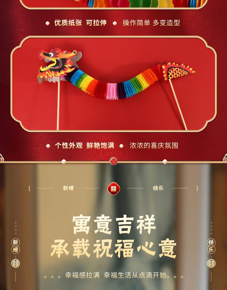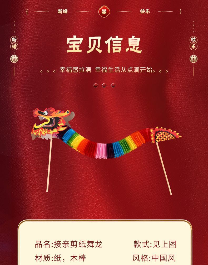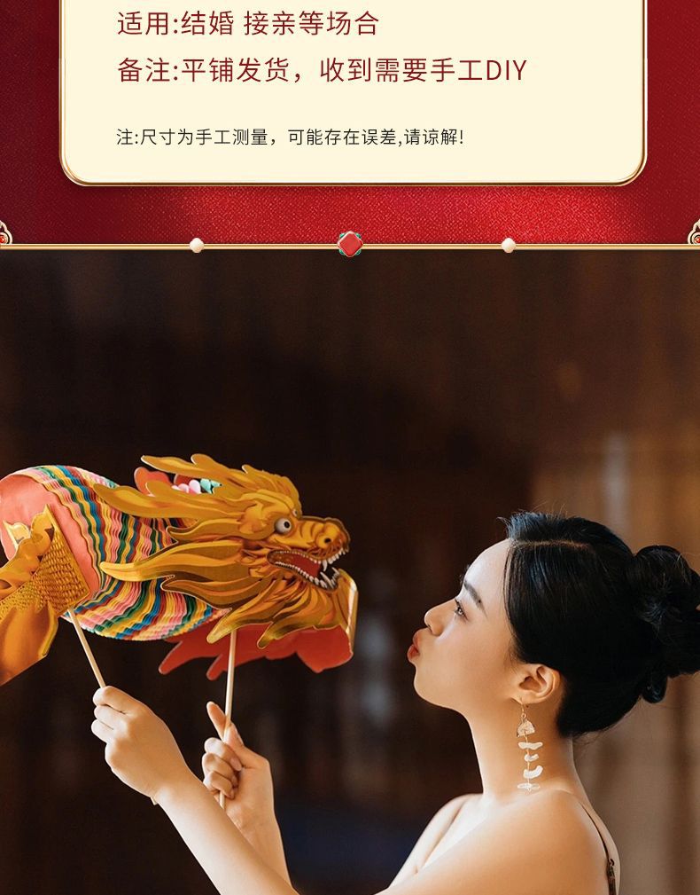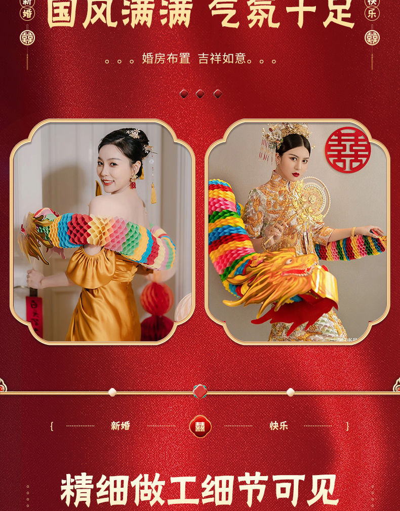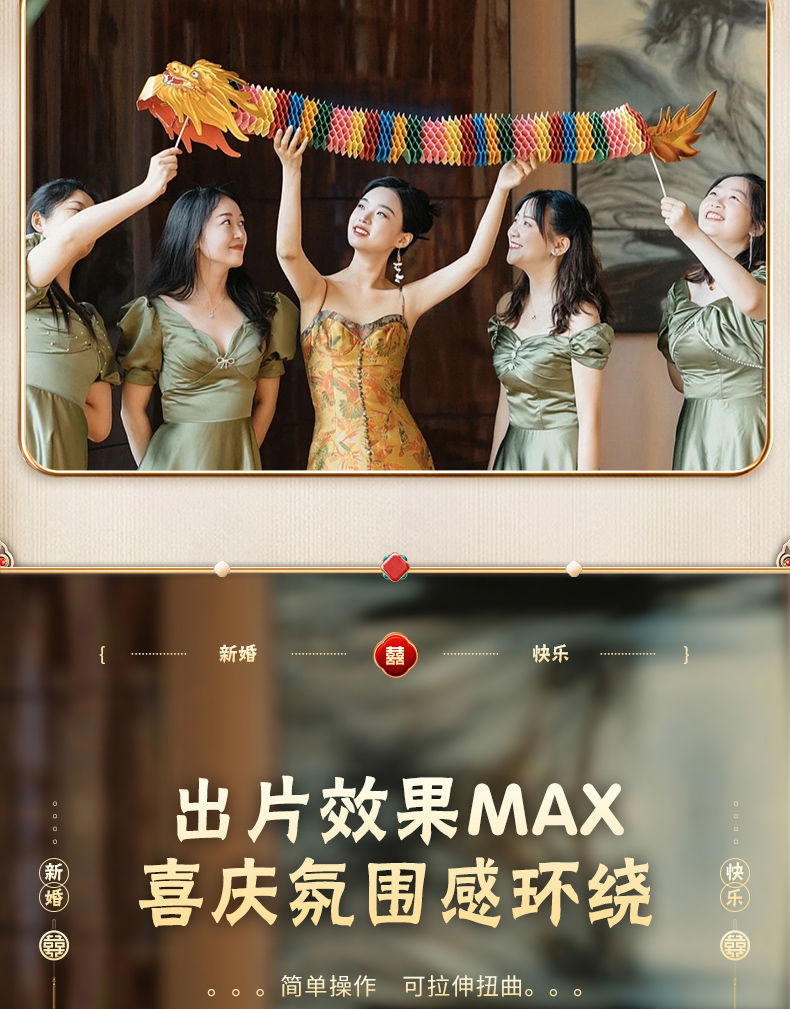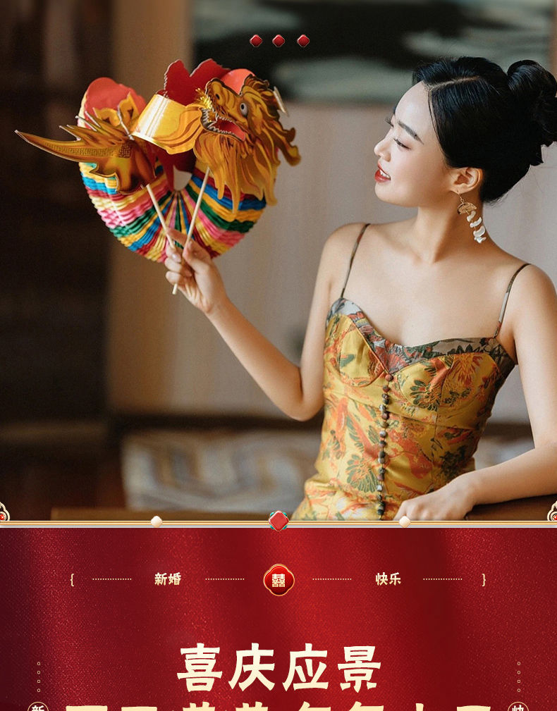 小红书同款节庆结婚礼剪纸舞龙新娘晨袍拍照道具拉花接亲游戏伴娘