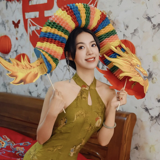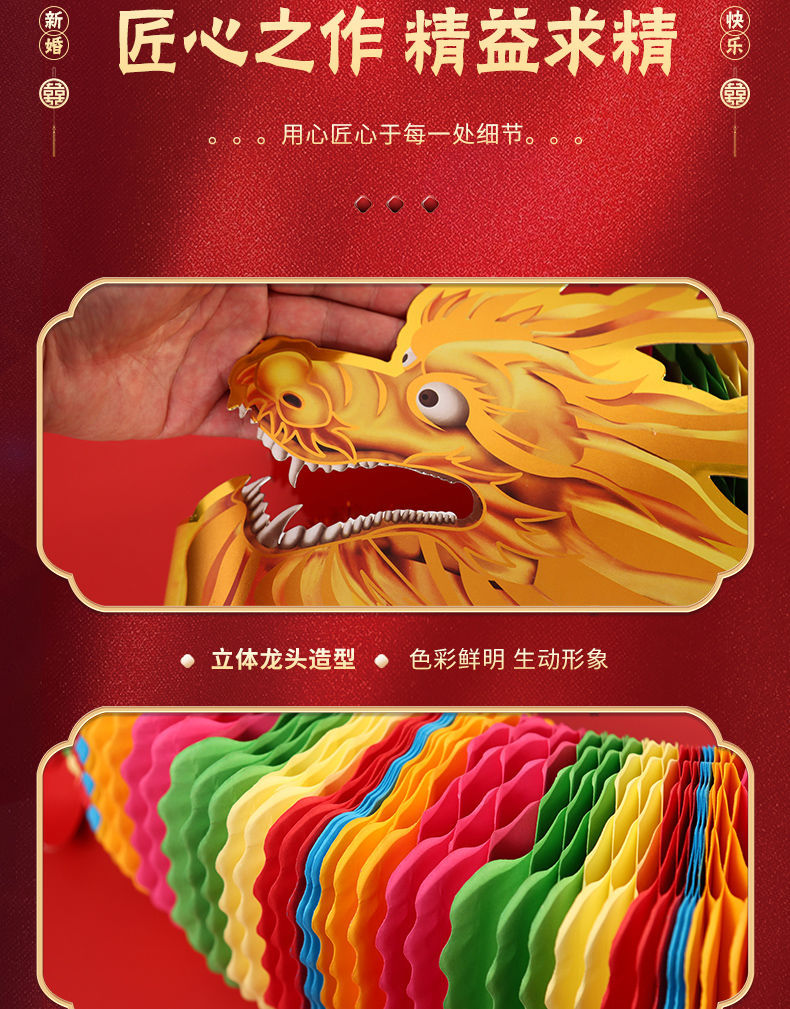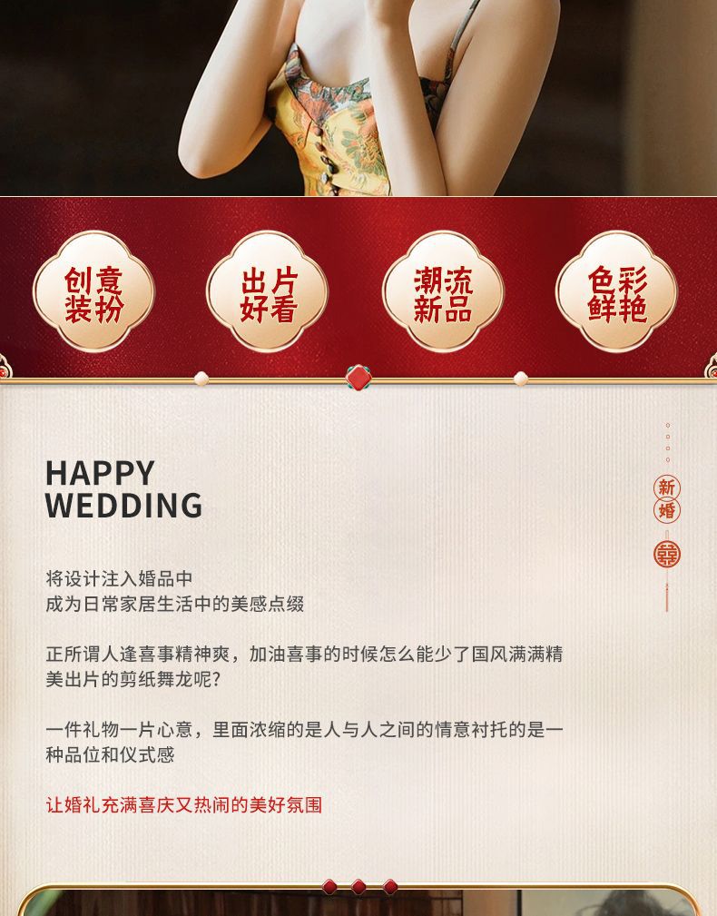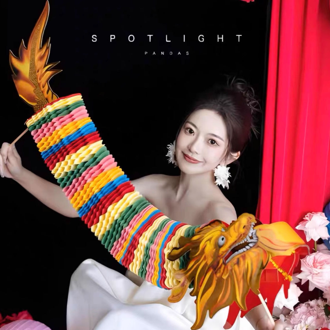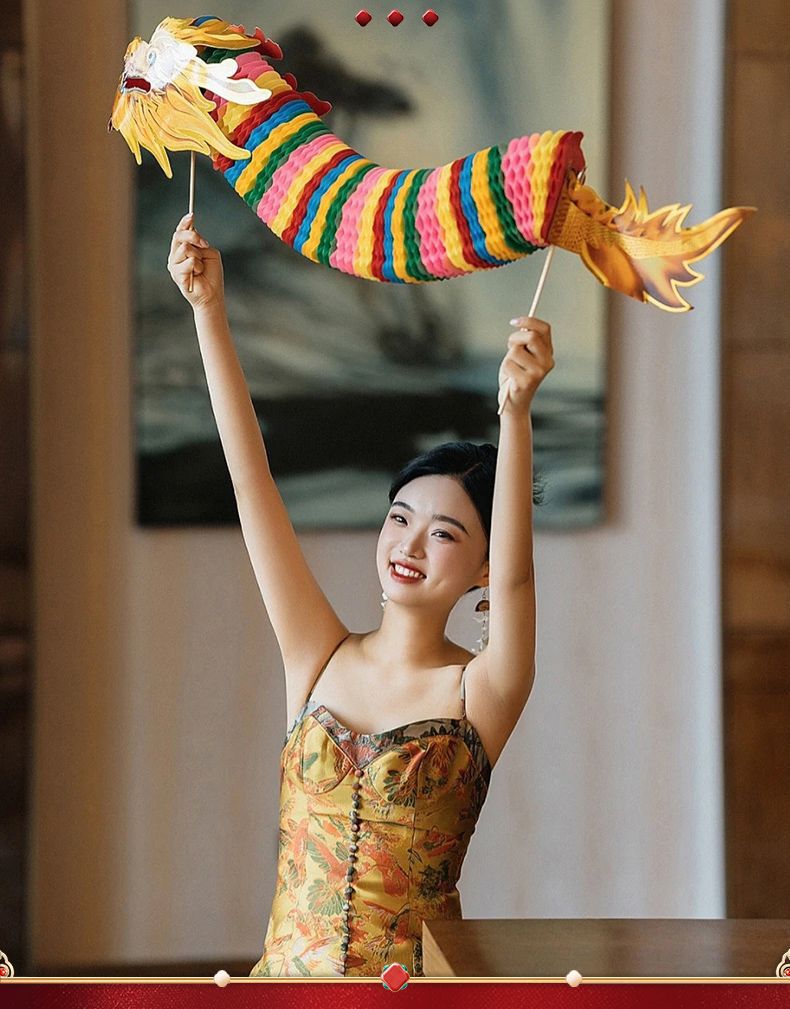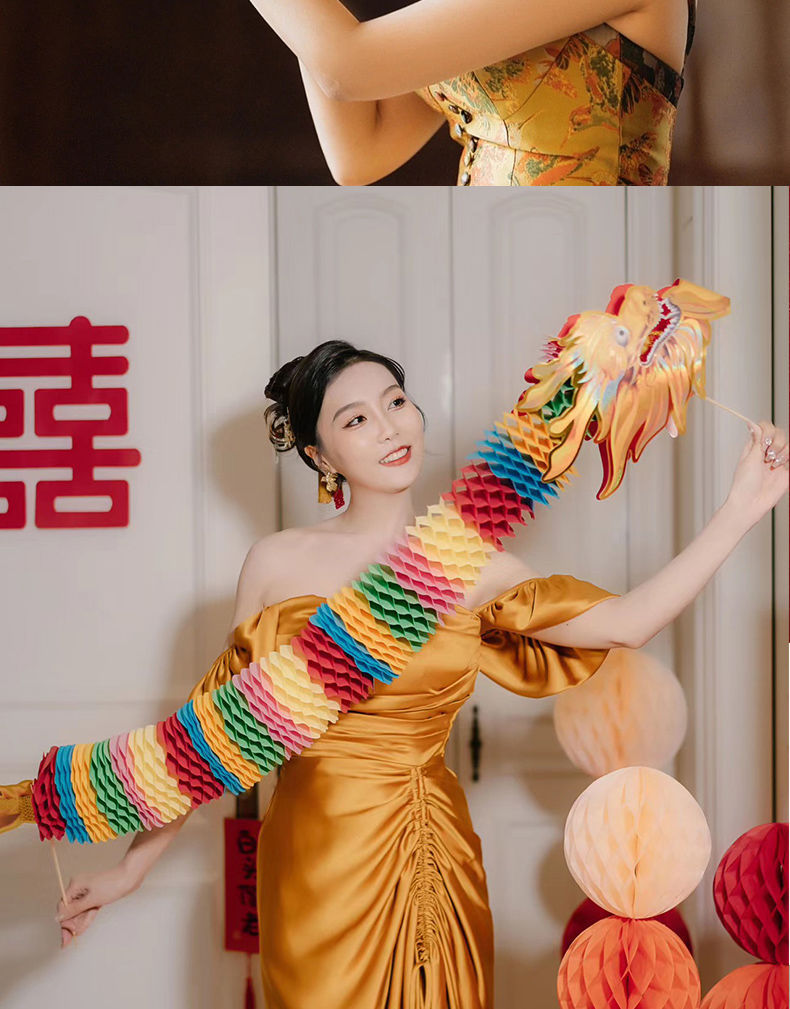 小红书同款节庆结婚礼剪纸舞龙新娘晨袍拍照道具拉花接亲游戏伴娘