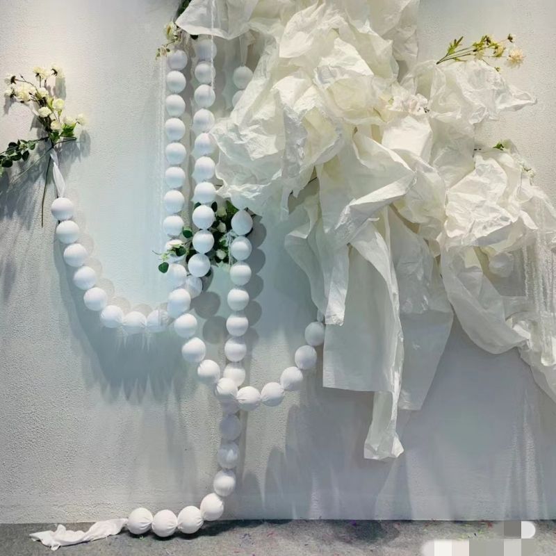 婚房布置婚庆道具彩色布艺球串装饰背景墙蝴蝶拉花圆球挂件长条喜