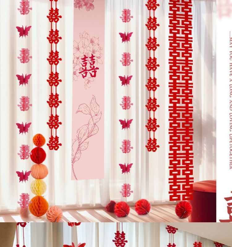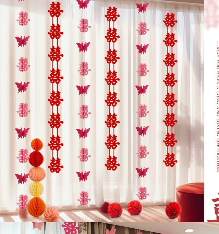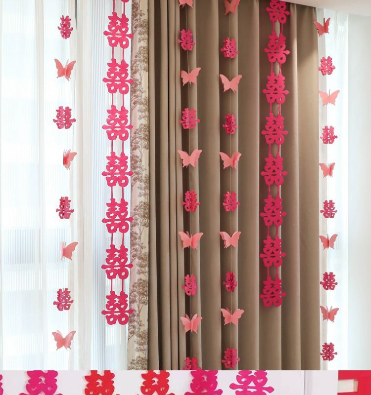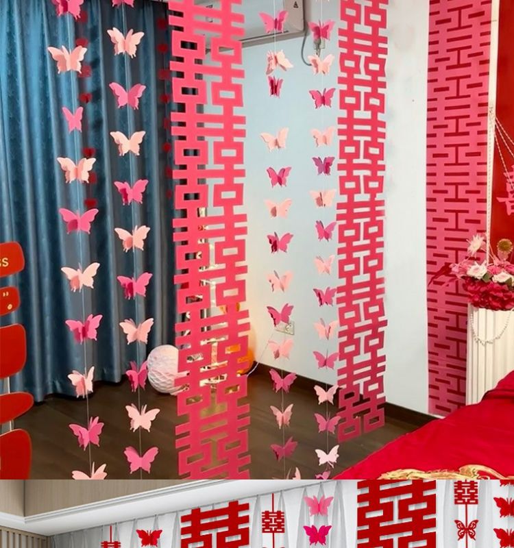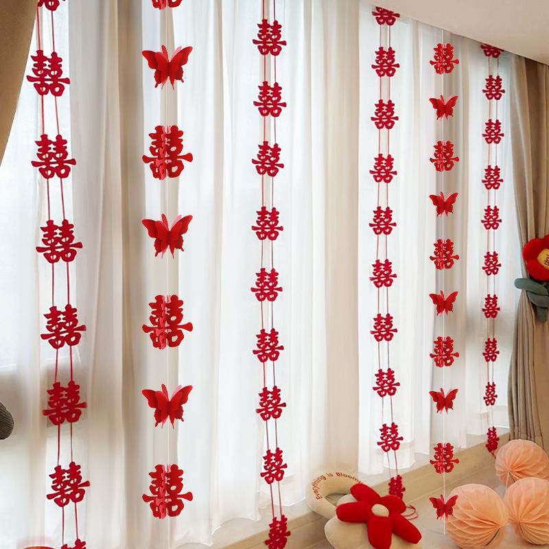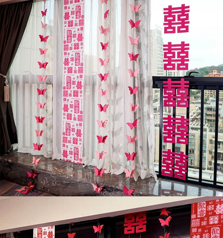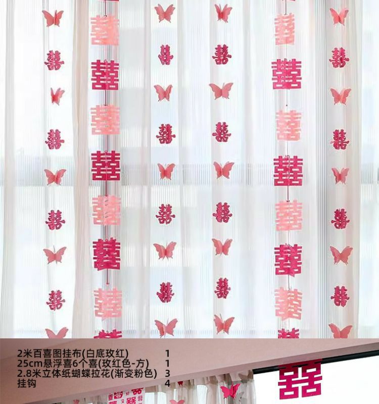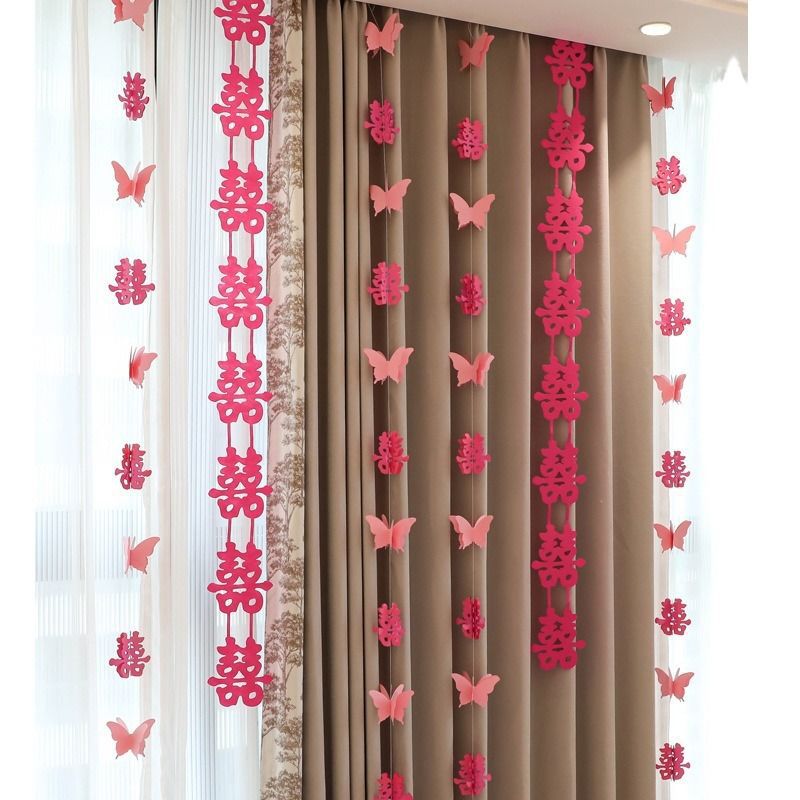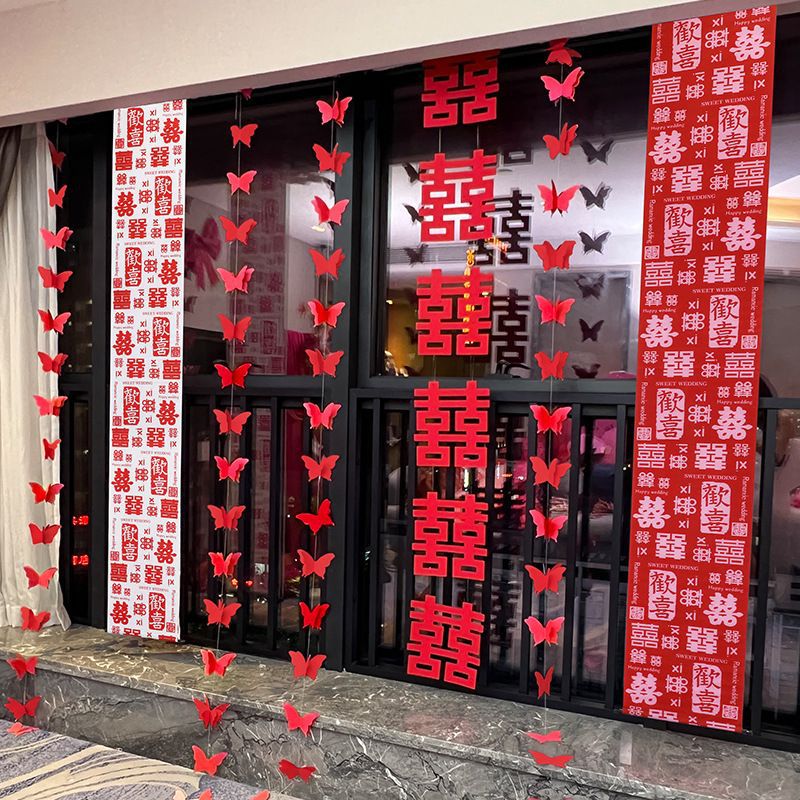 婚房布置套装结婚长条喜字贴窗帘挂件新房卧室装饰立体蝴蝶喜拉花