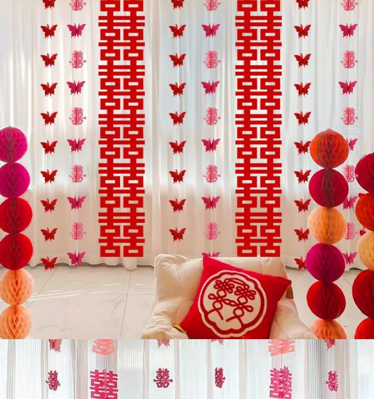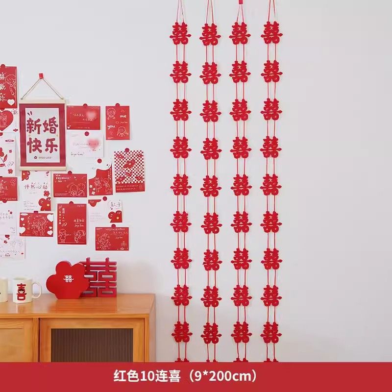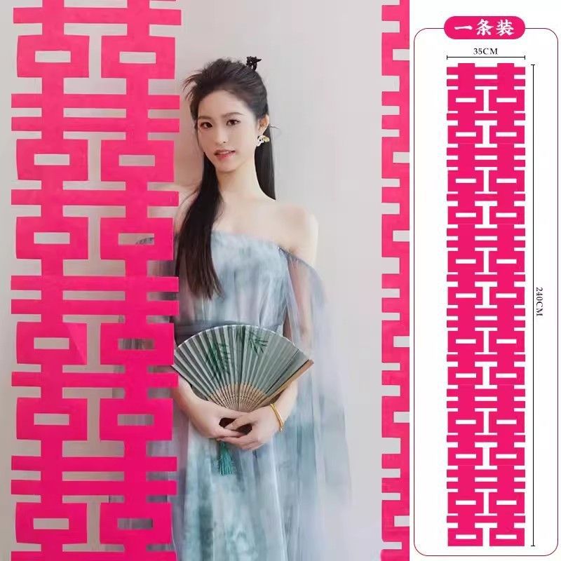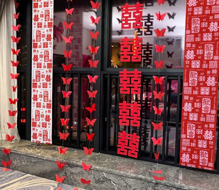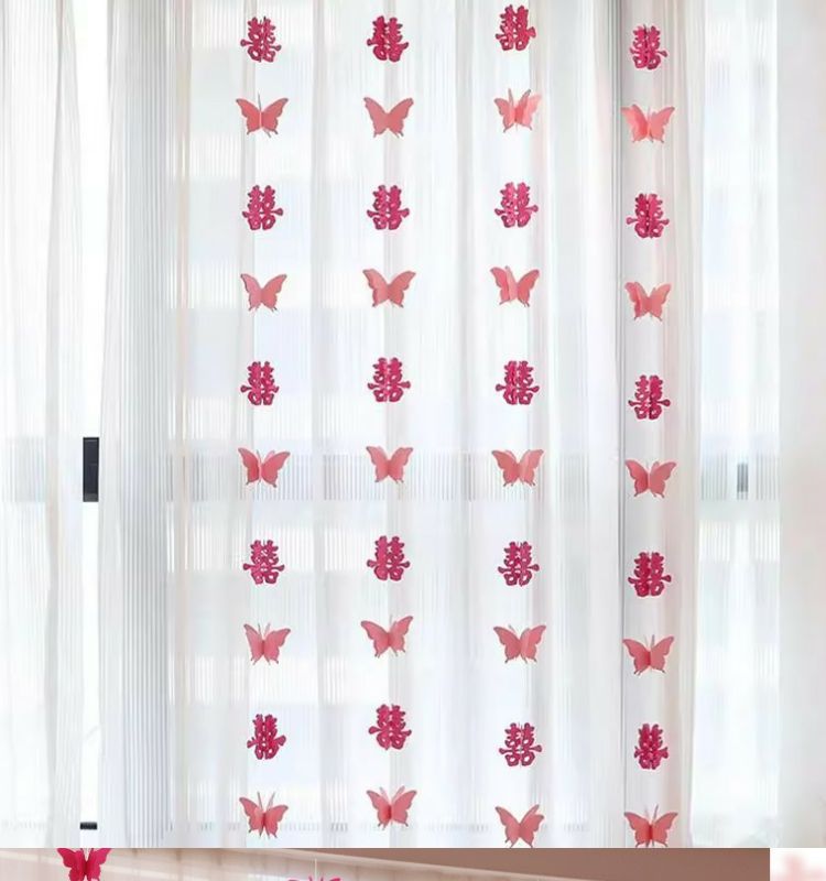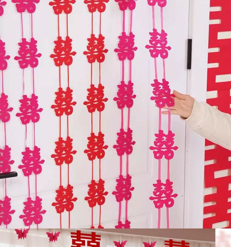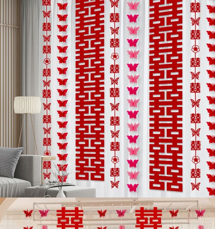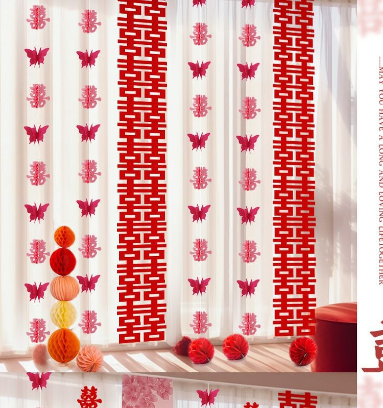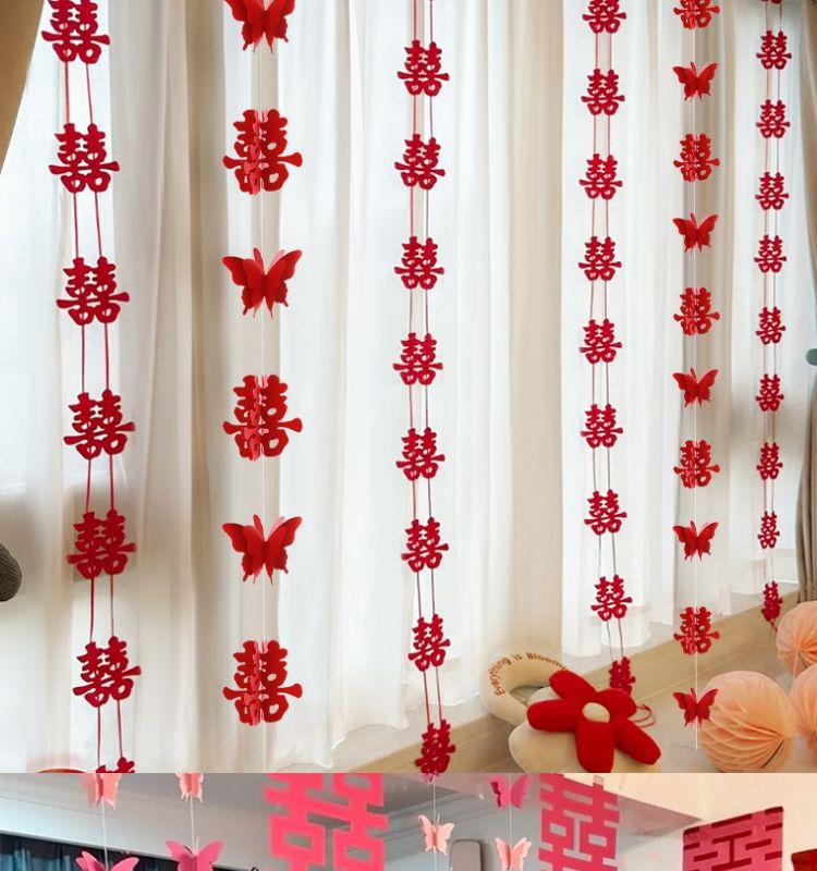 婚房布置套装结婚长条喜字贴窗帘挂件新房卧室装饰立体蝴蝶喜拉花