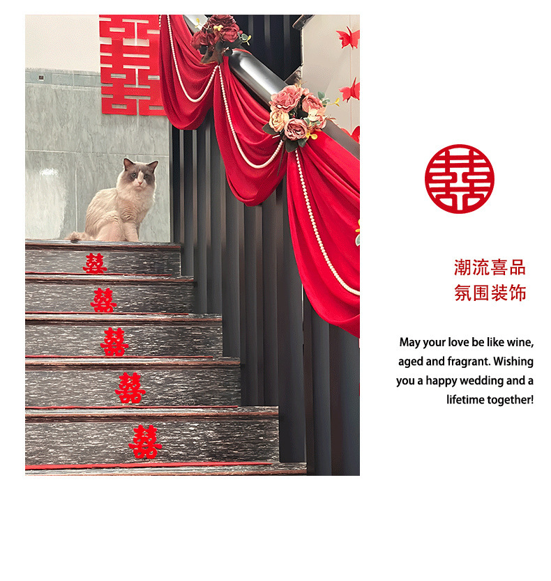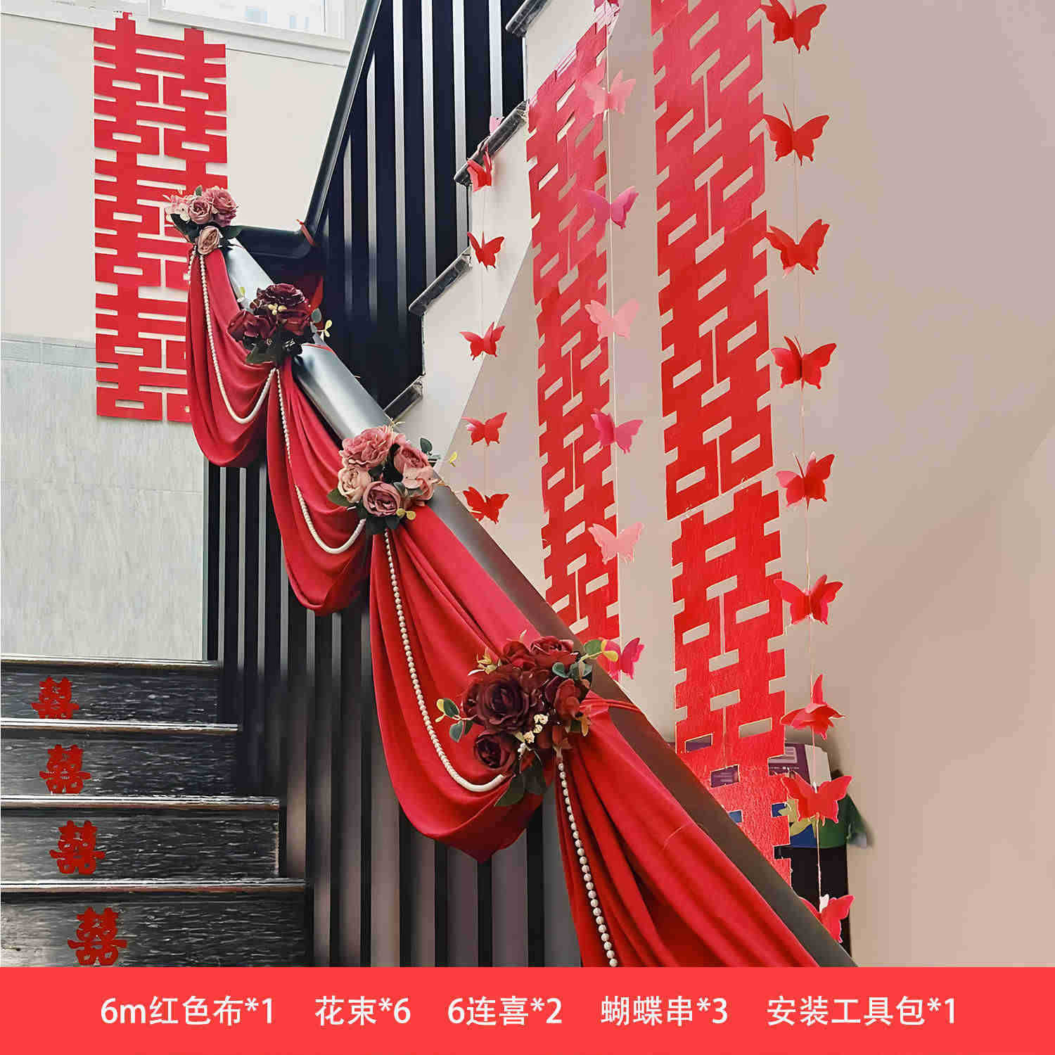 结婚楼梯结婚自建房楼梯装饰婚房布置套装新房台阶拉花布置用品