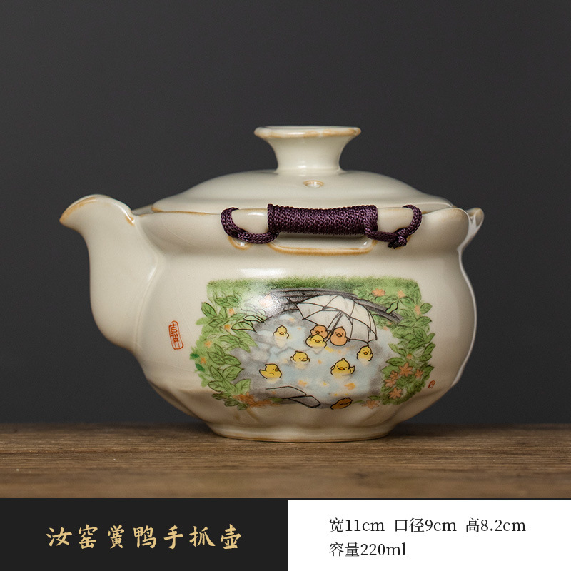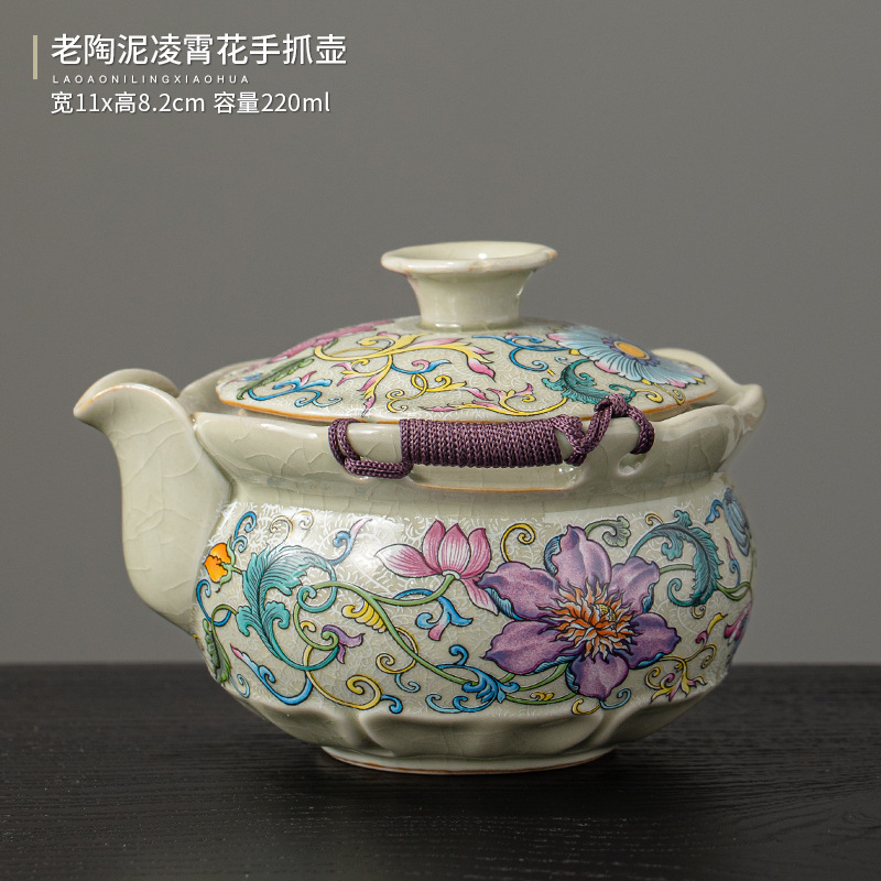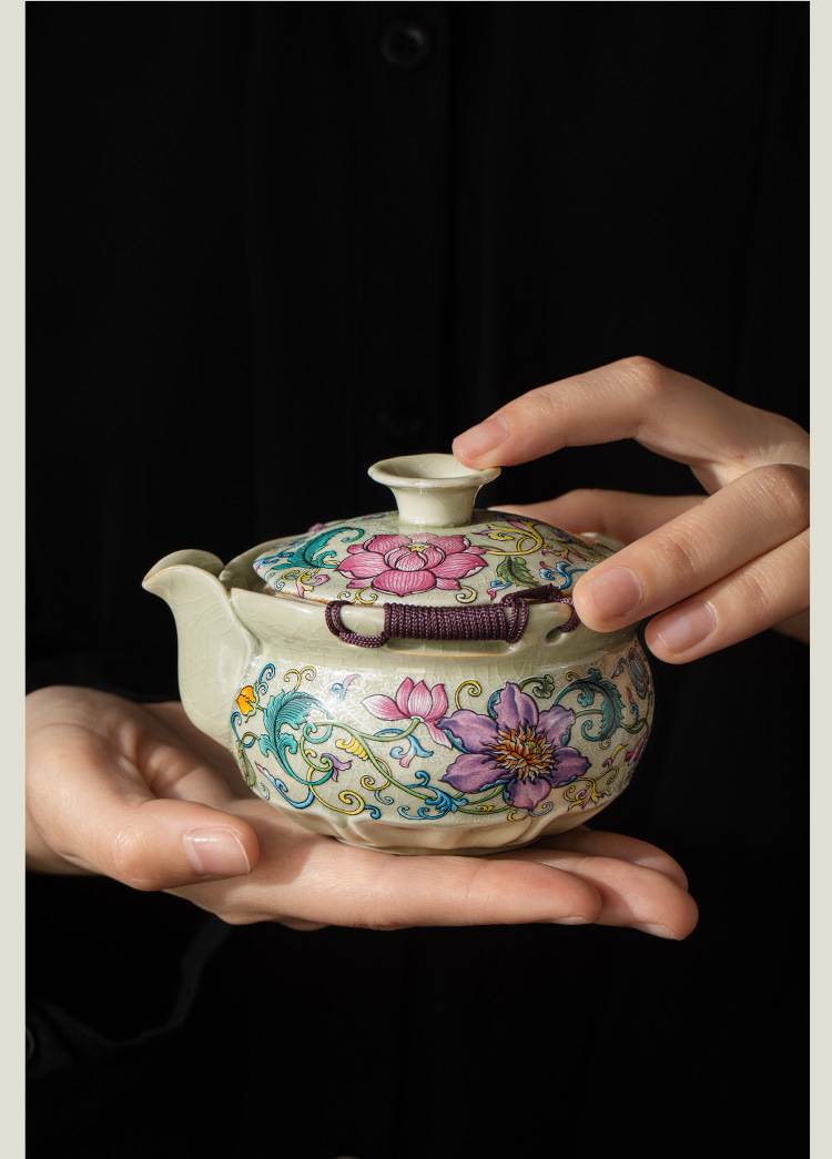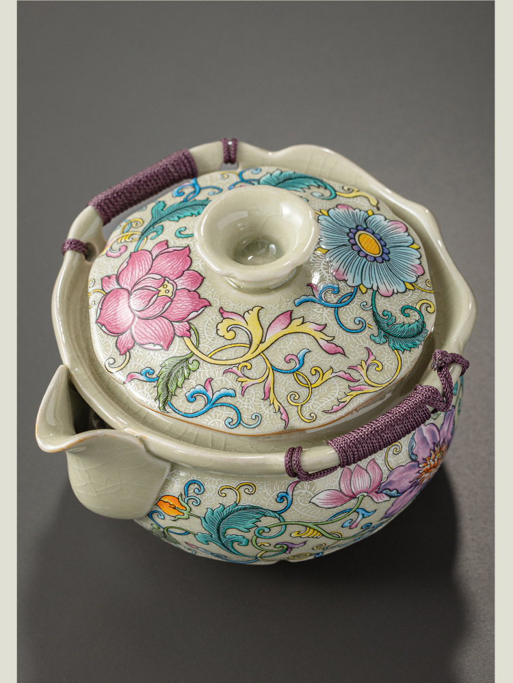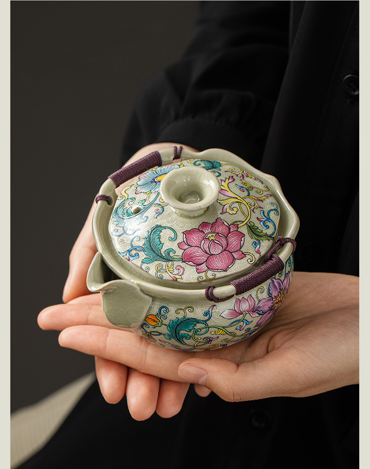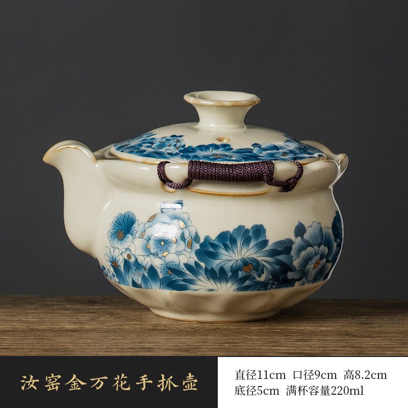 汝瓷万花盖碗茶杯单个手抓壶不烫手家用开片凌霄花茶碗功夫茶具