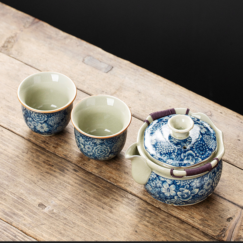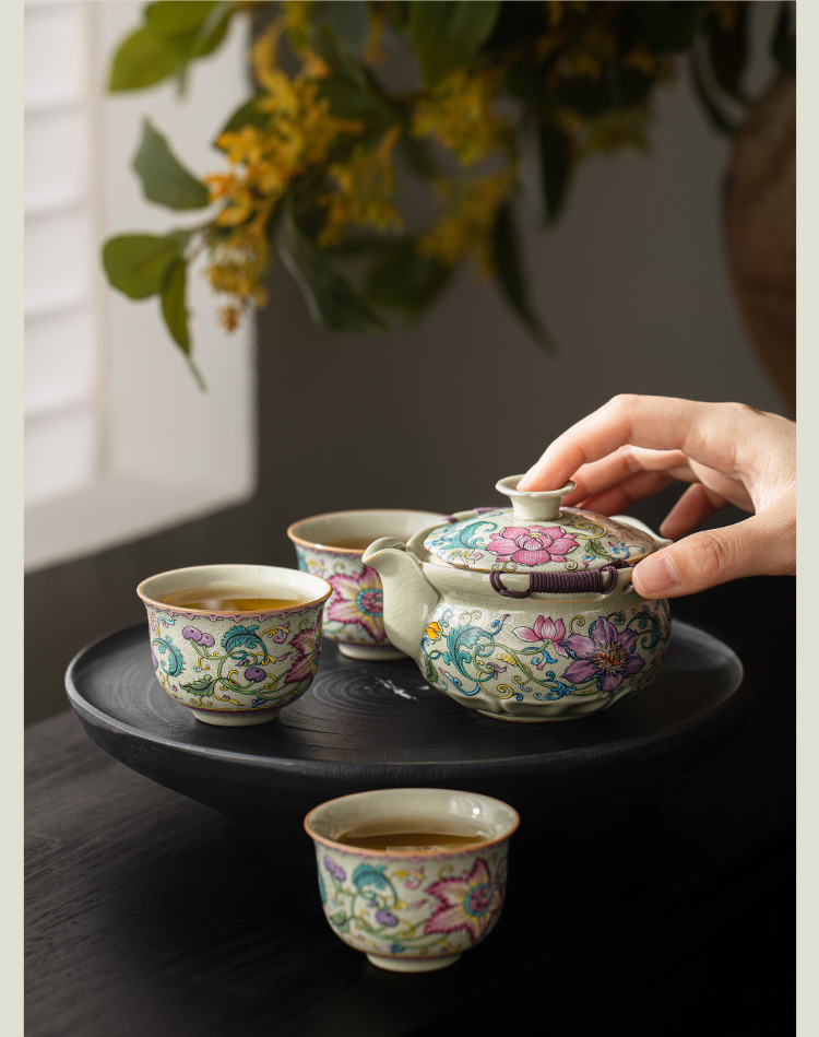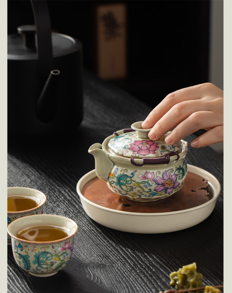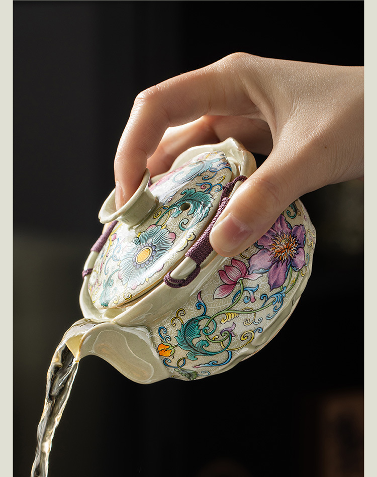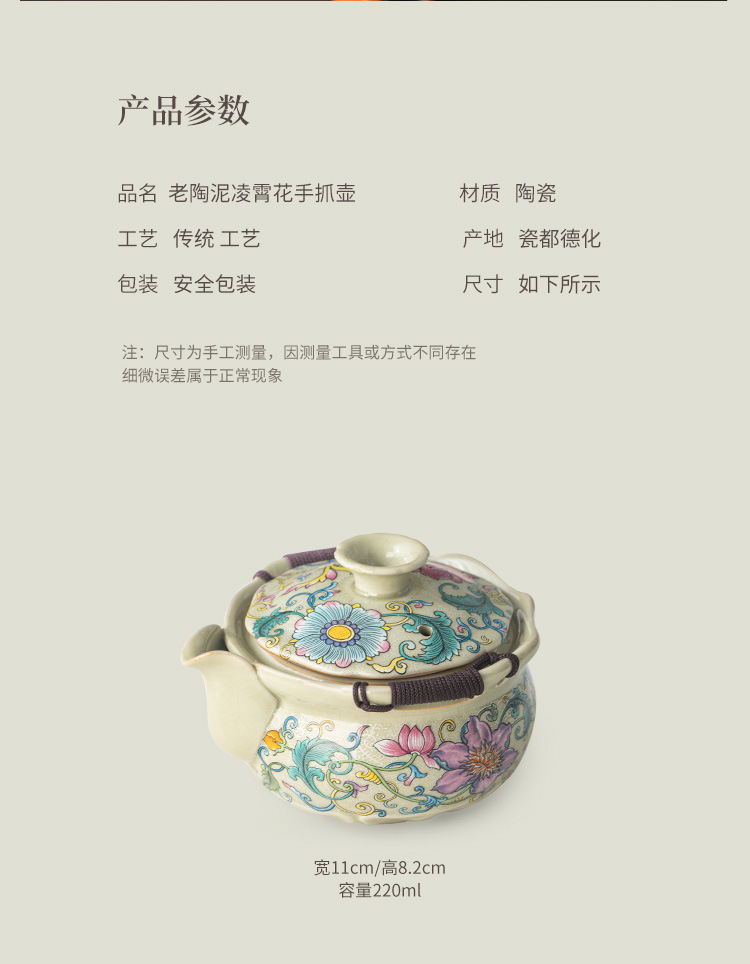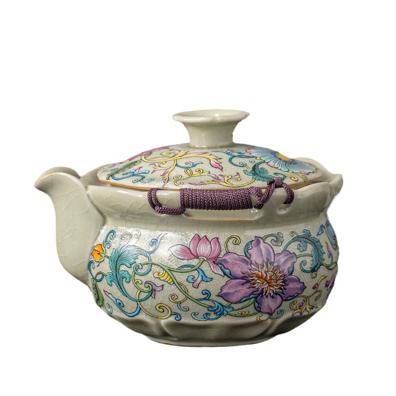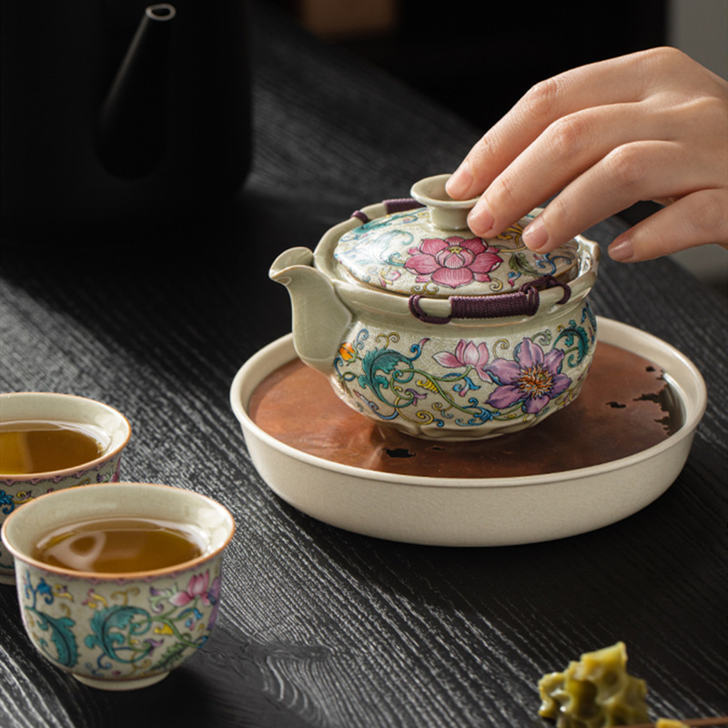 汝瓷万花盖碗茶杯单个手抓壶不烫手家用开片凌霄花茶碗功夫茶具