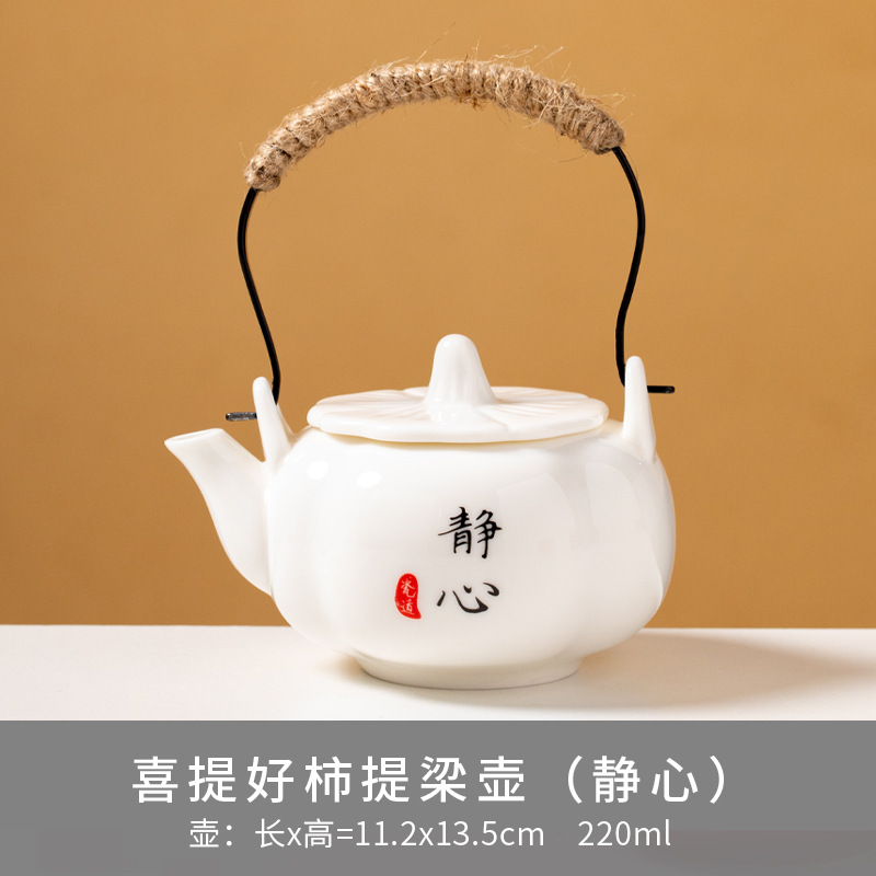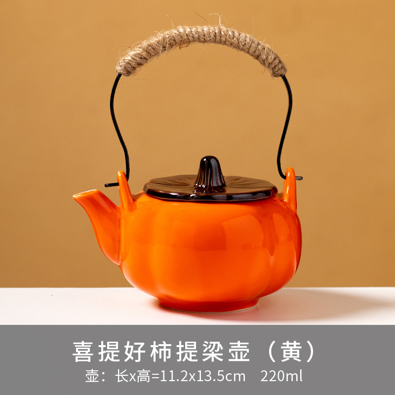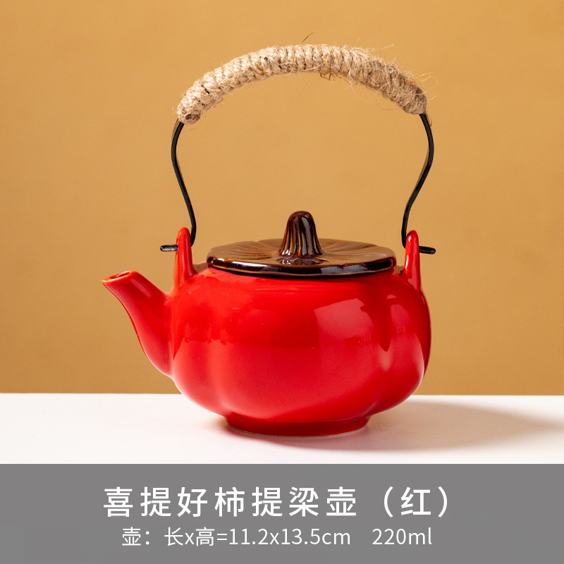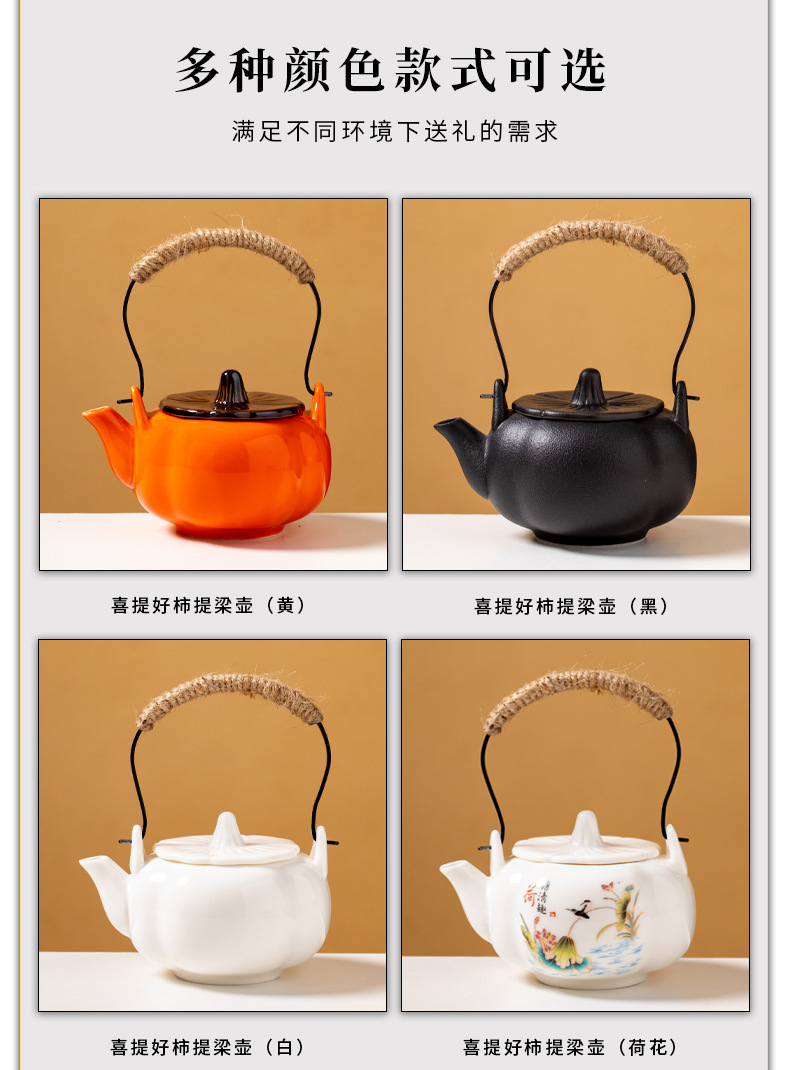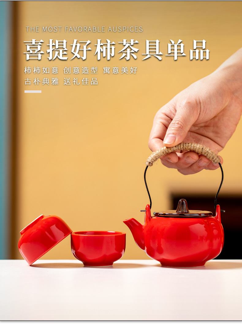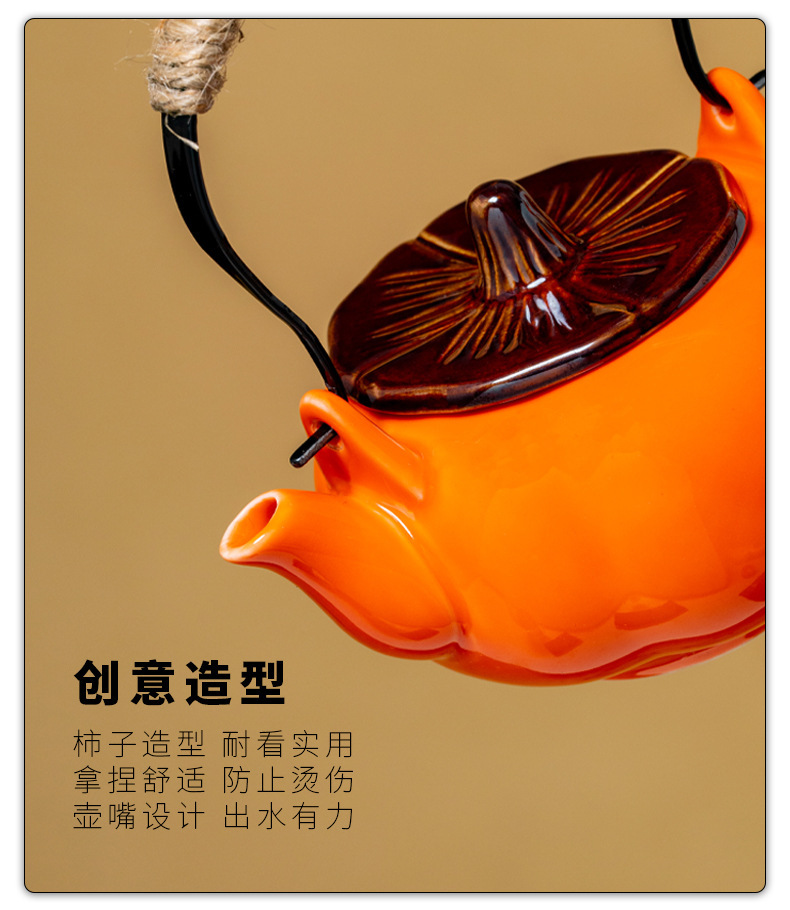 柿柿如意单壶 泡茶壶 小容量提梁壶小手柄茶壶功夫茶具家用过滤孔